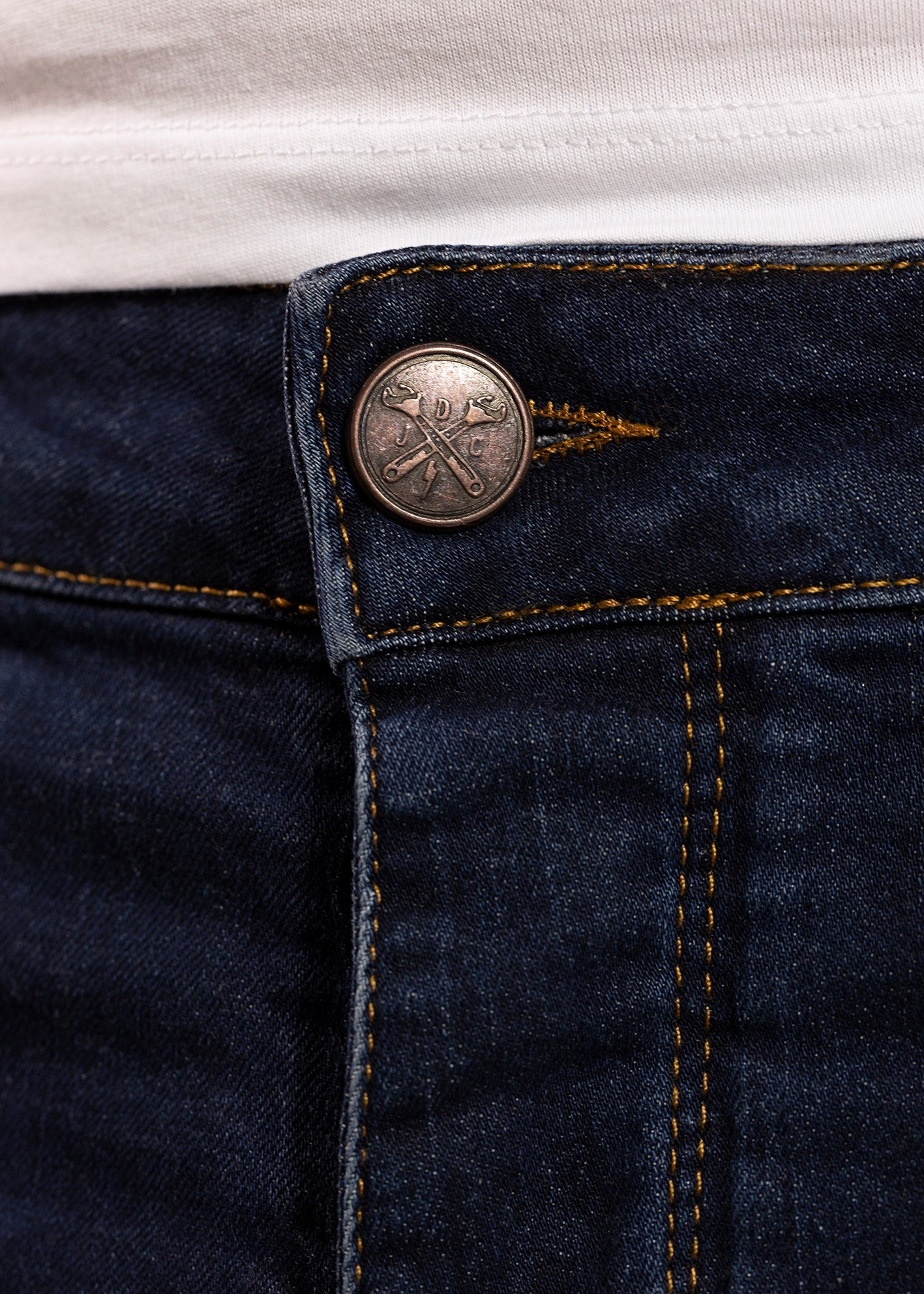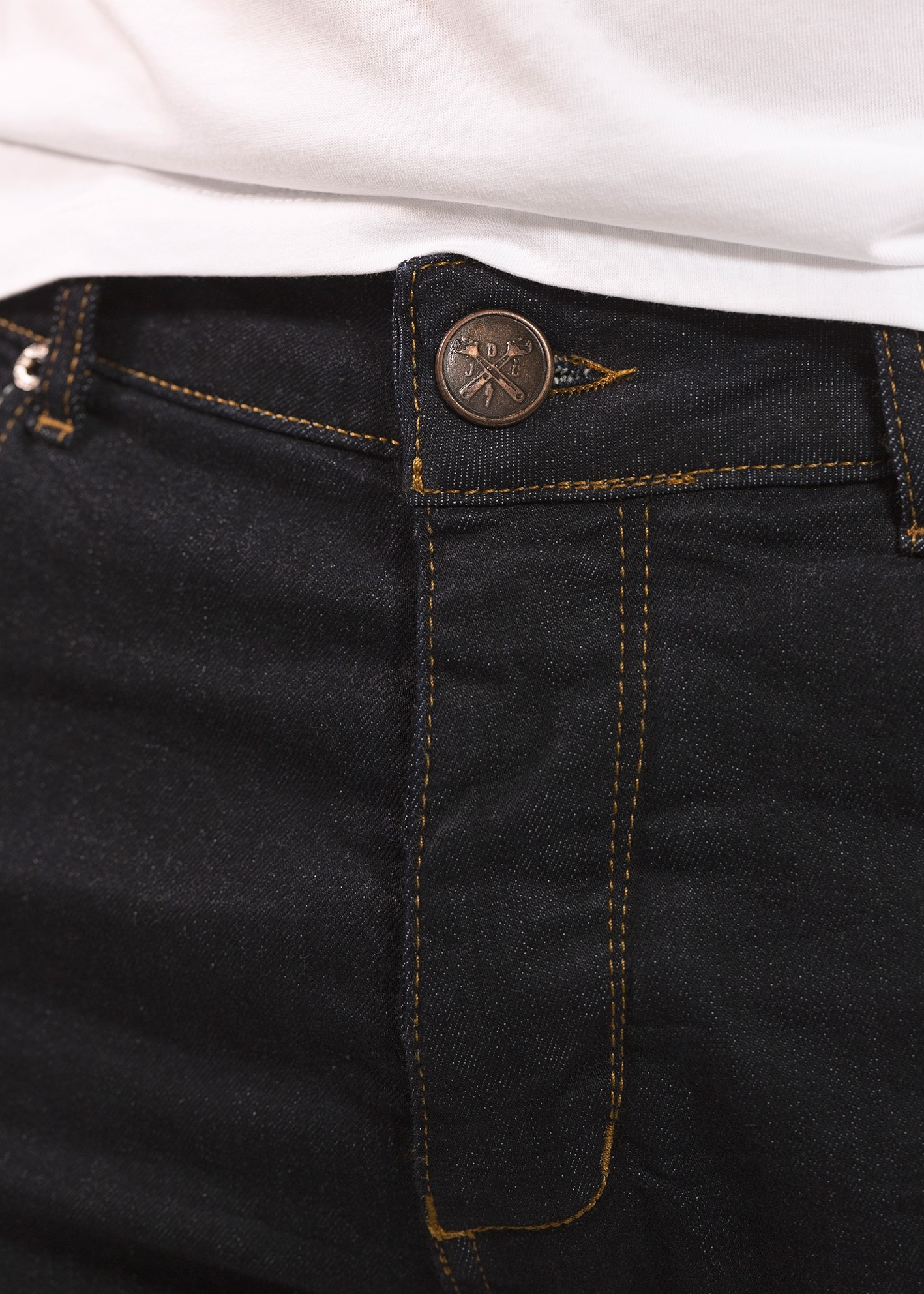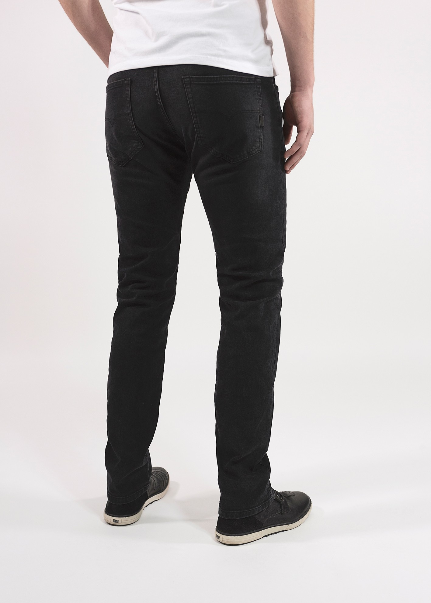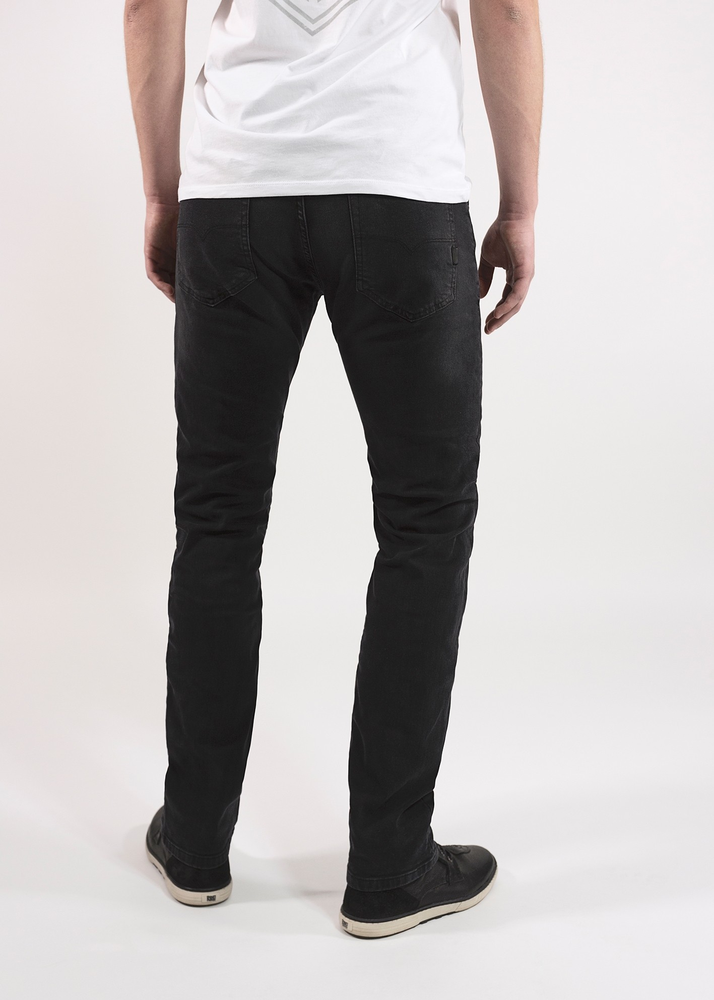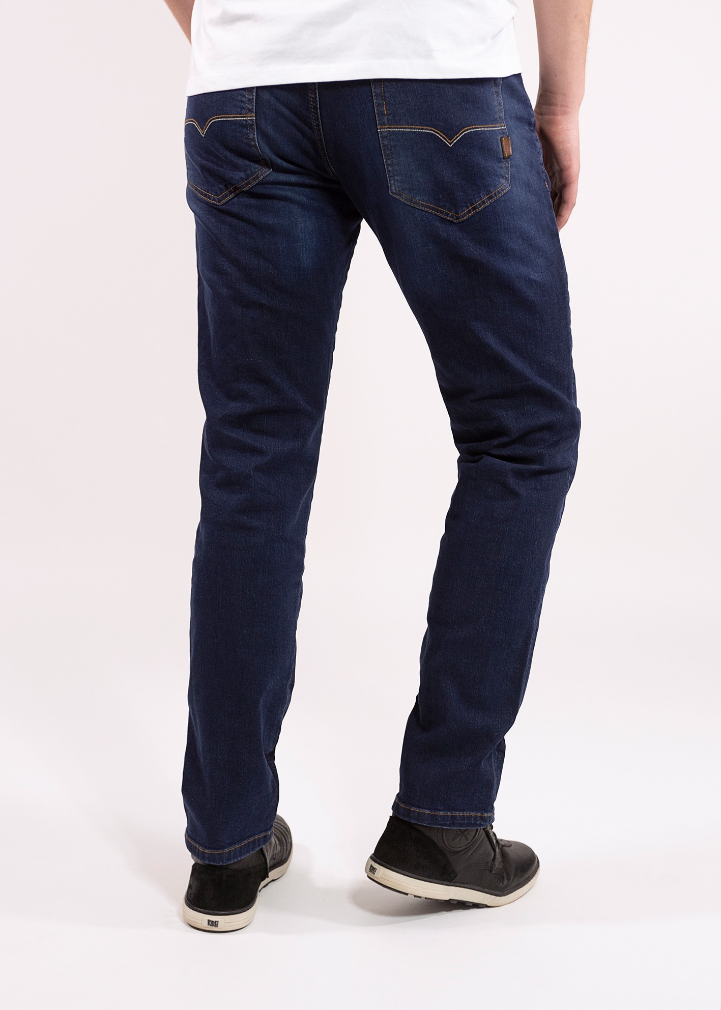 Kevlarové jeansy úzkého střihu (úplé jeansy - elasťáky) speciálně vyvinuté pro jízdu na motocyklu. Úplý střih se výborně hodí k jízdě na motocyklu, minulostí je štípání, škubání a plácání ve větru při vyšších rychlostech. Náš speciální střih kombinovaný s klasickým 5ti kapesním jeansovým střihem je nejen velmi pohodlný, ale také funkční.