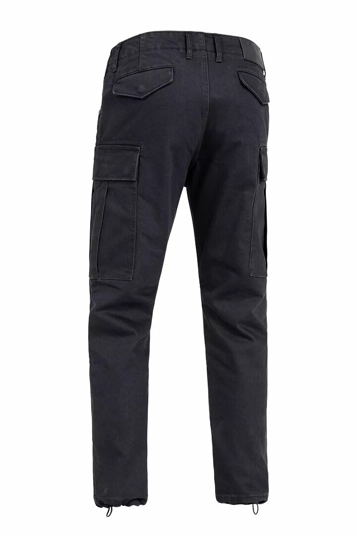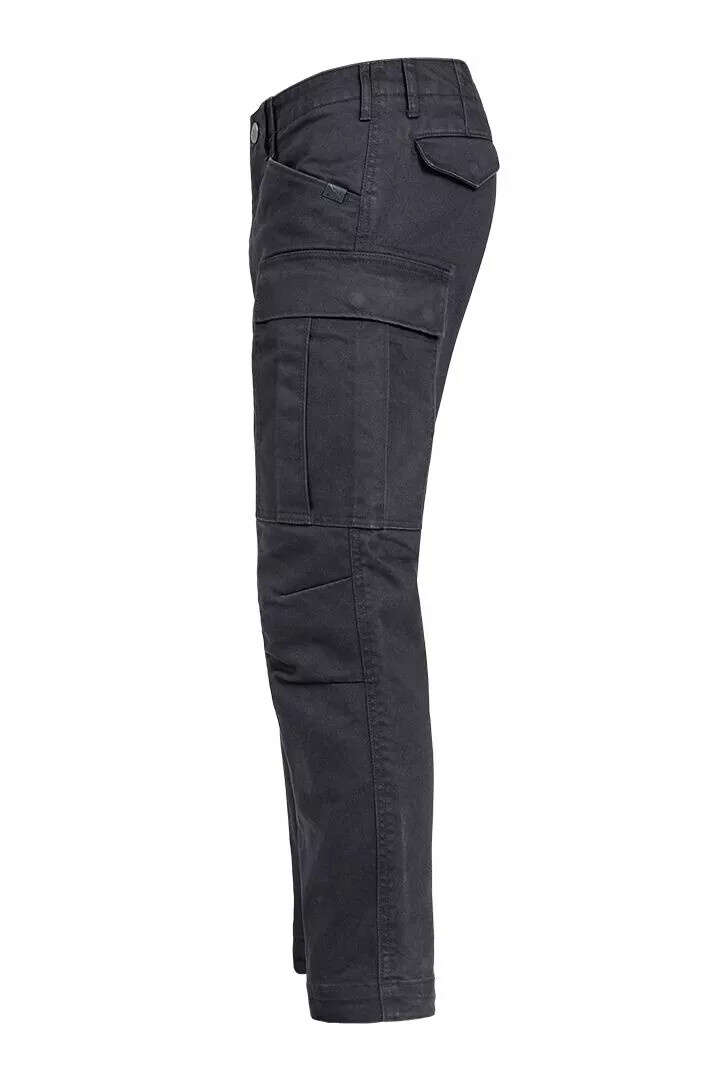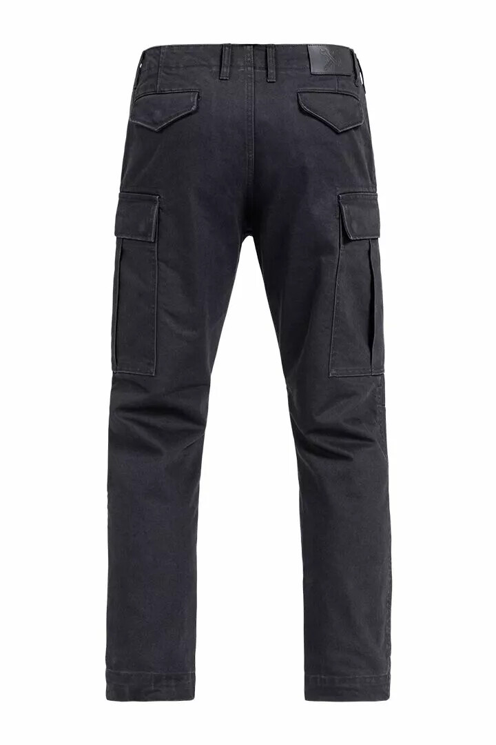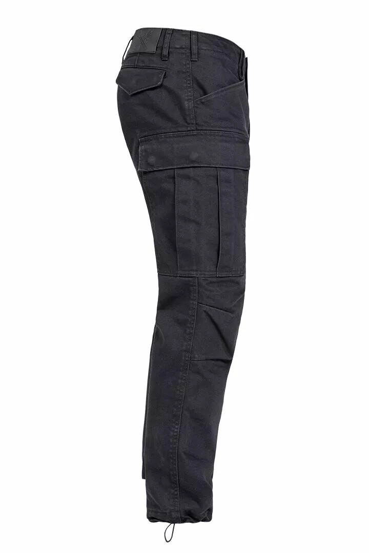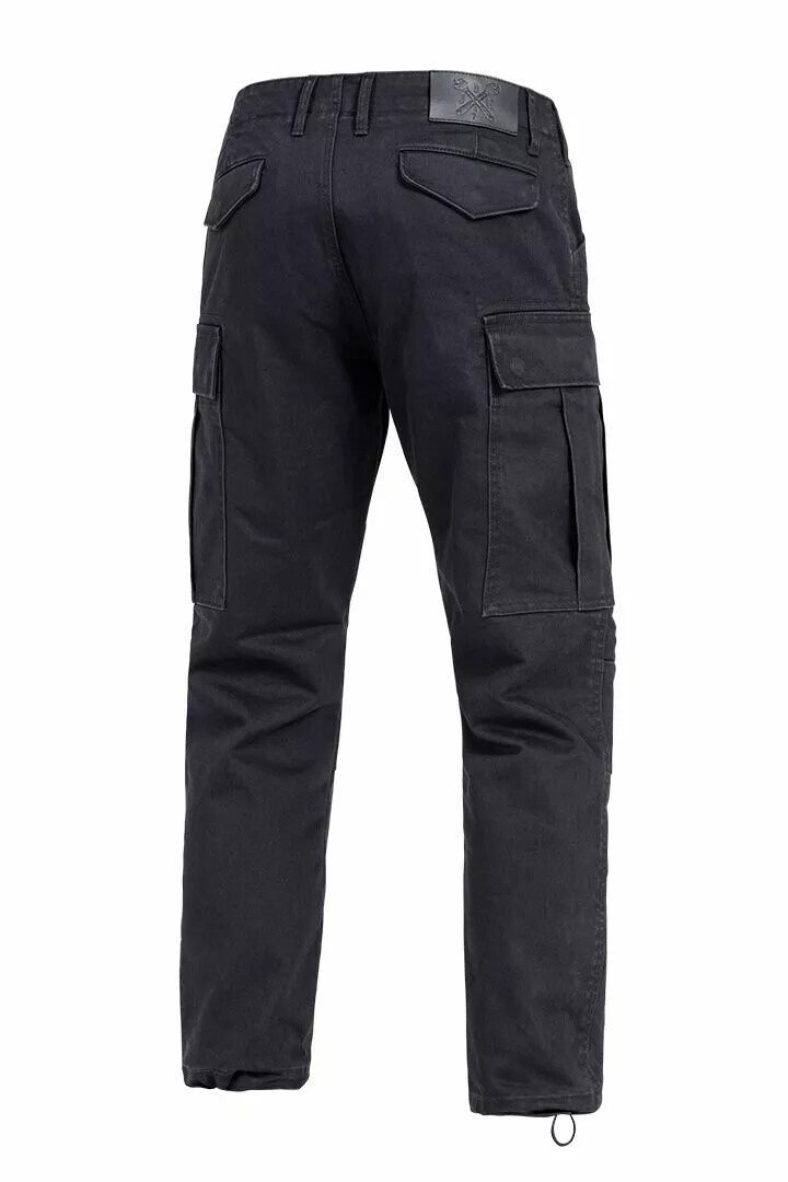 Kalhoty Regular cargo od výrobce John Doe jsou jednovrstvé klasické kapsáče upraveny (navrženy) speciálně pro jízdu na motocyklech. Na spodním konci nohavic jsou opatřeny provázkem, kterým lze nohavice stáhnout a zajistit tak, aby se za jízdy nevyhrnovaly. Díky patentovanému XTM vláknu promění klasické kalhoty v robustní, oděruvzdorné a nárazuvzdorné motocyklové kalhoty, které zůstávají extrémně lehké díky jediné vrstvě látky, a stále pohodlné díky strečové složce v materiálu. Mají klasický rovný střih s klasickými cargo kapsami na stehnech, které poskytují spoustu úložného prostoru při jízdě. Pro zvýšení bezpečnosti jsou v kalhotách vložené výškově nastavitelné kapsy pro chrániče na kolenou a kyčlích.