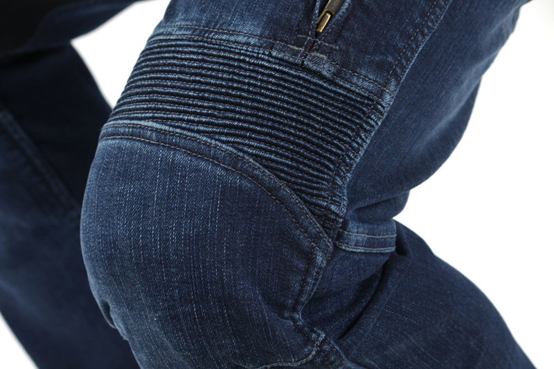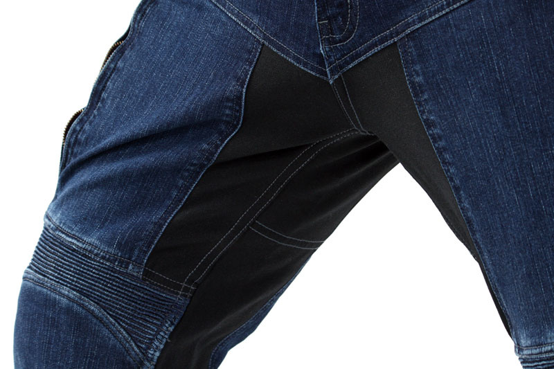 - pružný materiál v rozkroku zajišťuje dvoudimenzní elasticitu a zaručuje komfort pohybu při jízdě na motocyklu