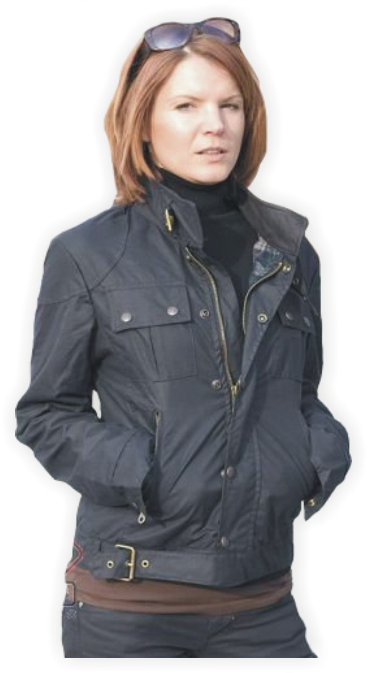 Proti zafukování větru je bunda vybavená kvalitním zipem YKK, který je ukrytý pod légou. Má krátký stojatý límec z impregnované kůže. Zapínání spodní části bundy a límce je řešeno přezkou.