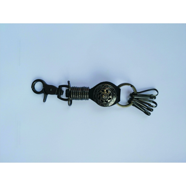 Popis produktu klíčenka 06Stylová moto/metal/rock klíčenka. Emblém z obou stran. Materiál: kůže + kov Barva: černá kůže, tmavě zinkový kov Velikost: cca 35 mm šířka, 170 mm délka (včetně poutek na klíče)