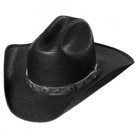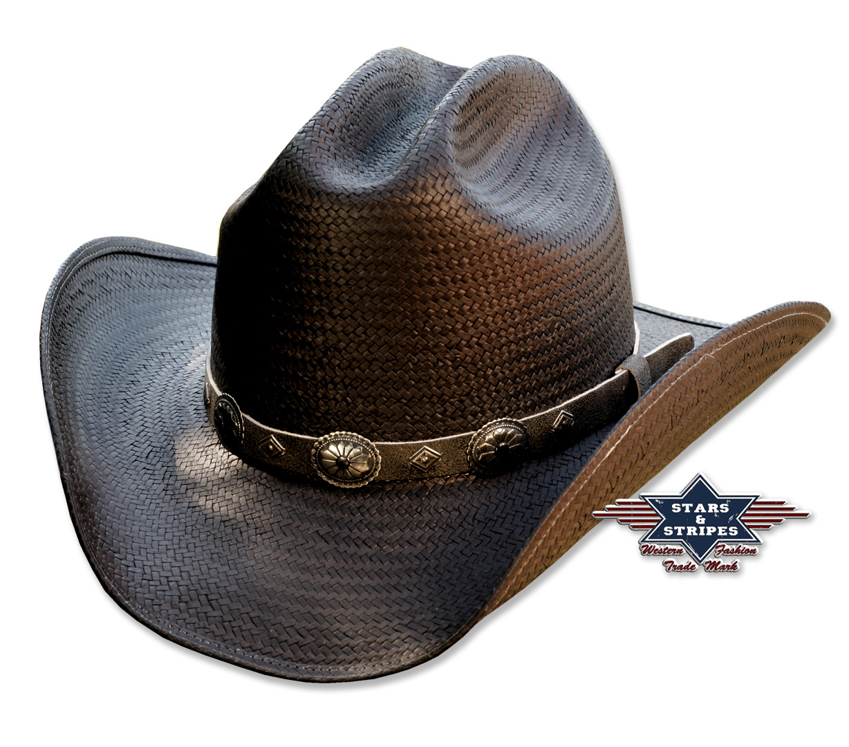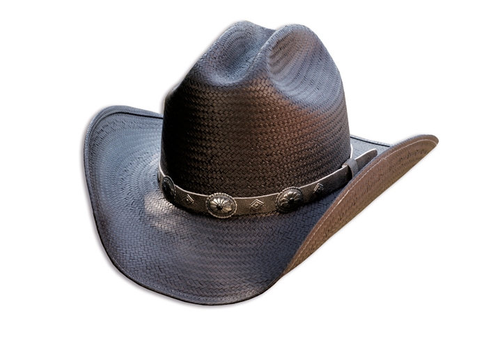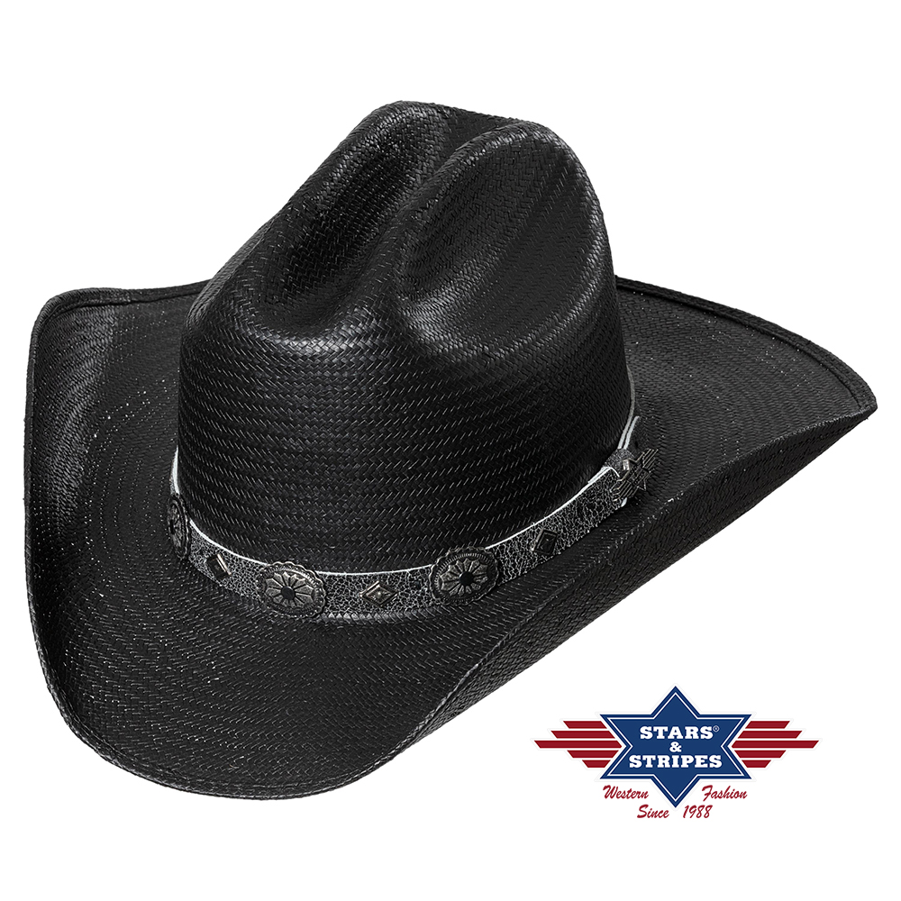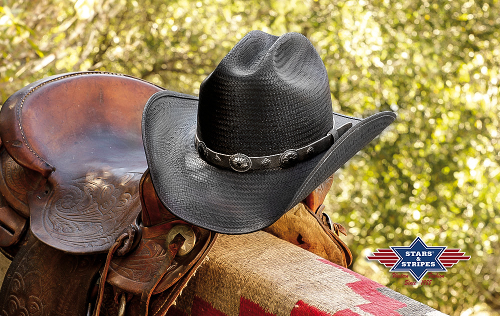 Lehký slaměný klobouk s černým koženým ozdobným páskem a vnitřním měkkým páskem pro pohodlné nošení.