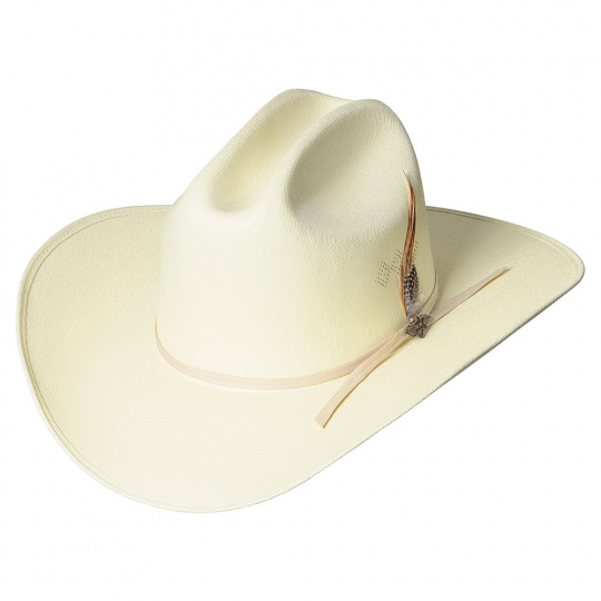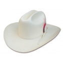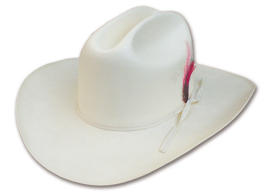 Klasický mexický lamino klobouk ozdobený stužkou a pírkem. Klobouk je pevný, drží tvar.