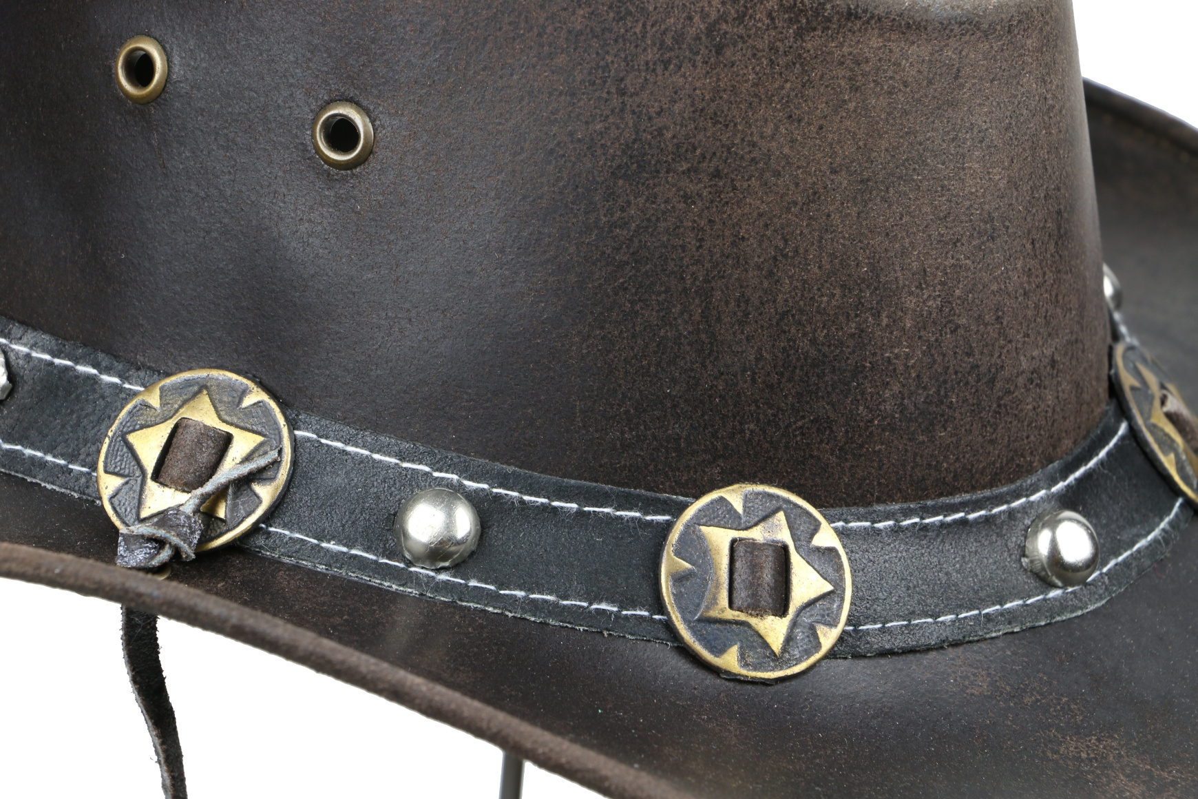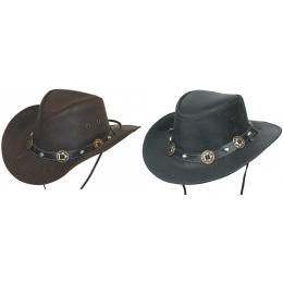 Concho je robustní klobouk od RUGGED EARTH s flexibilním okrajem v němž je vložený drát pro individuální tvarování krempy. Ozdobná Conchos a pásek z pravé kůže posiluje u klobouku originální Western styl a dodává pocit svobody.