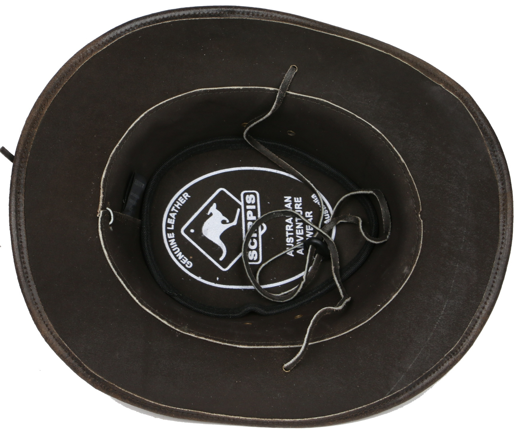 Hovězí impregnovaná kůže je odolná vůči počasí. Součást klobouku je praktický kožený řemínek s velmi snadným ovládáním, který lze lehce odejmout . Je vybaven větracími očky pro snadné odvětrání v horkých dnech.