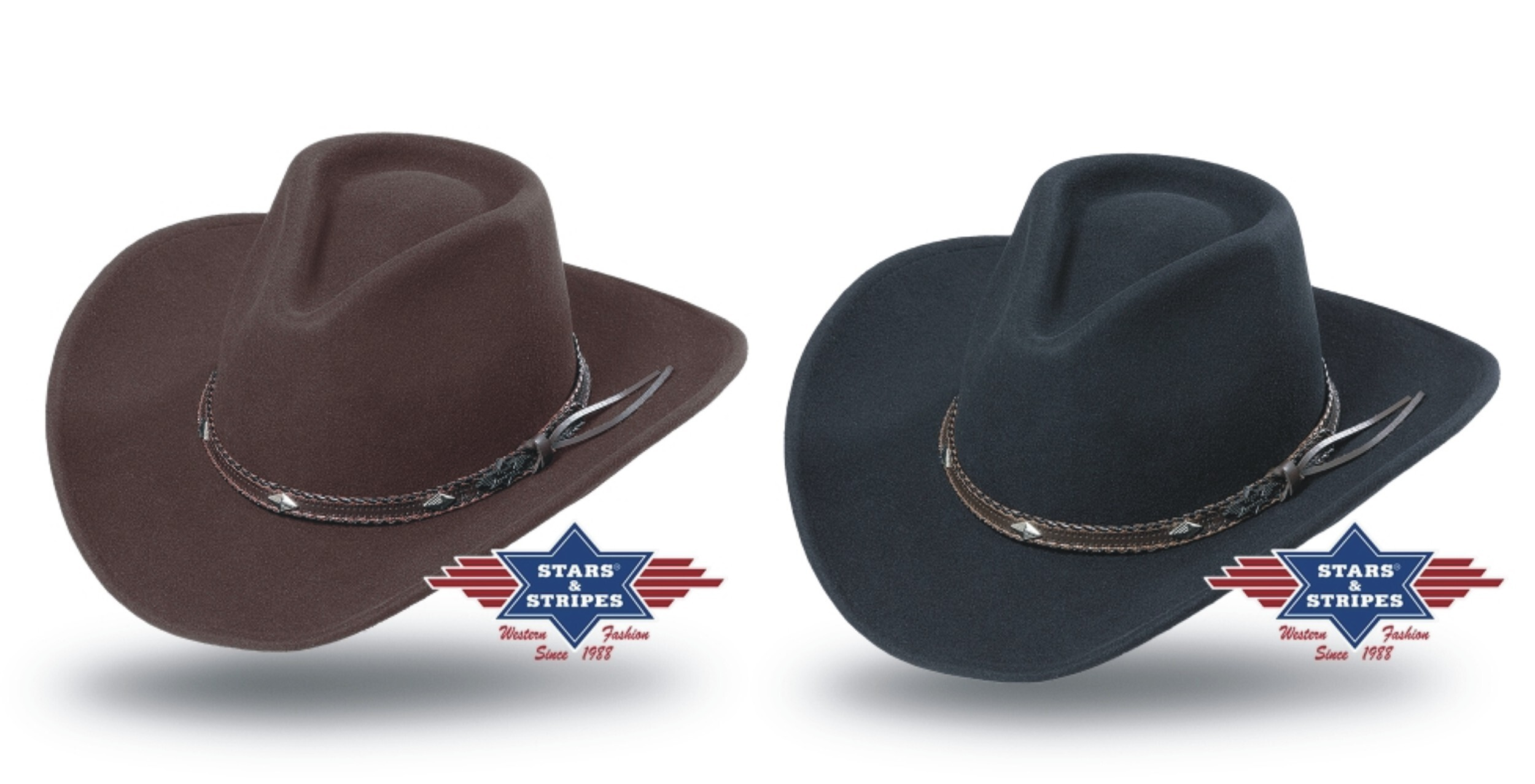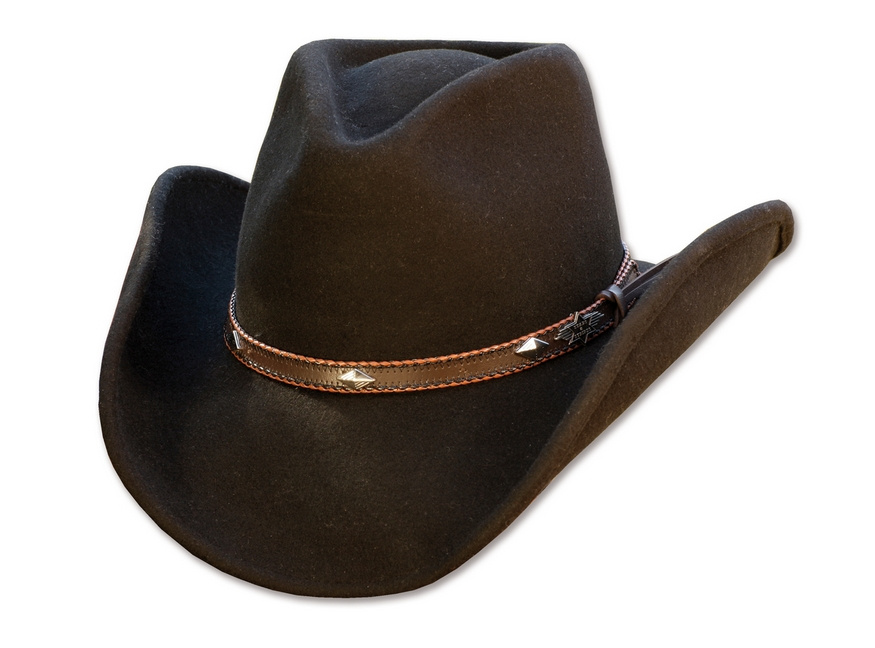 Tvarovatelný vlněný westernový klobouk s kvalitním koženým ozdobným páskem.