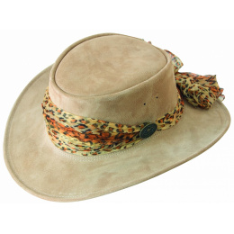 Dorre je velice elegantní klobouk pro dámy z broušené kůže (nubuk) se stabilním tvarem. Pro dokonalý Look je doplněn ozdobným šátkem. Impregnovaná kůže splňuje požadavky na odolnost nepřízně počasí. Je vybaven praktickými větracími očky pro snadné odvětrání v horkých dnech.