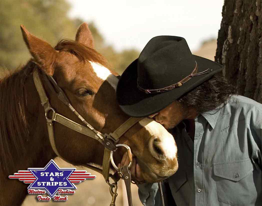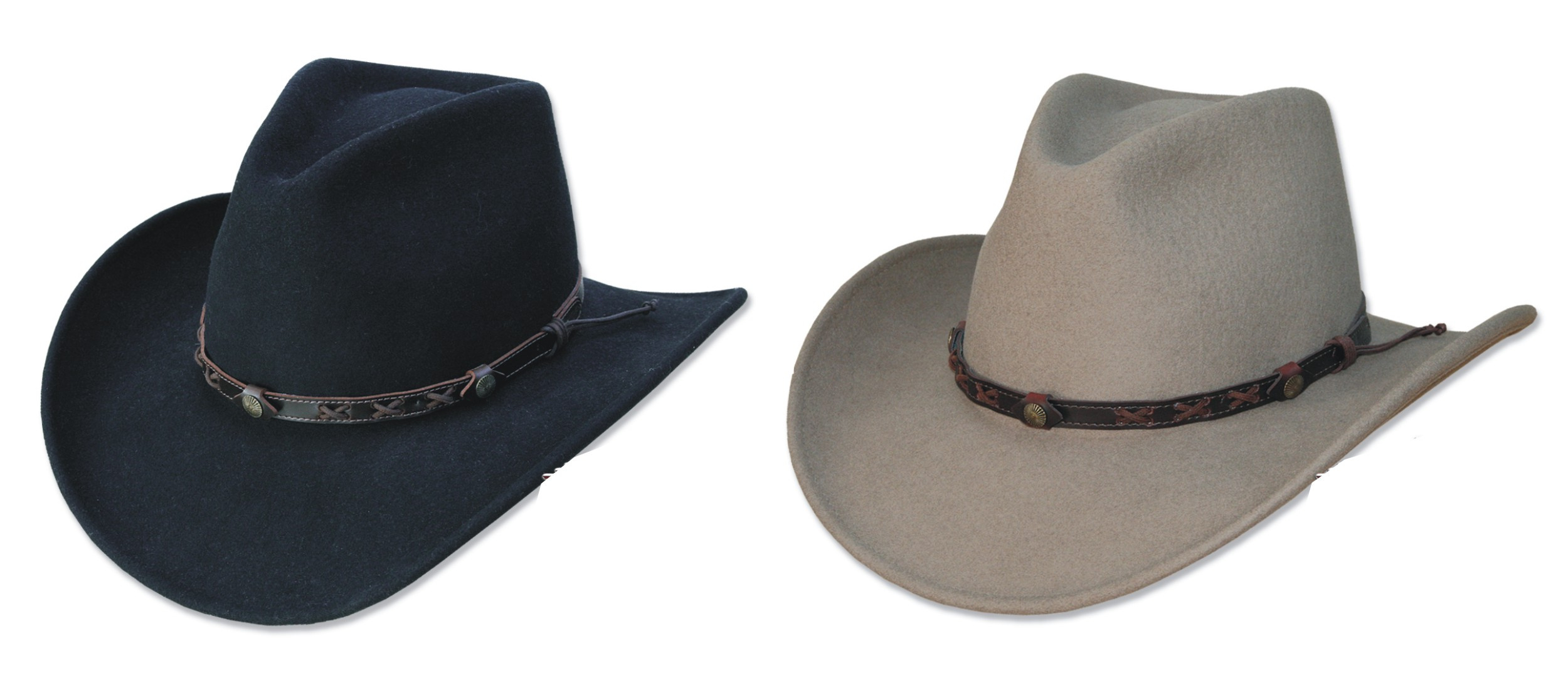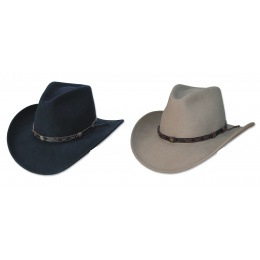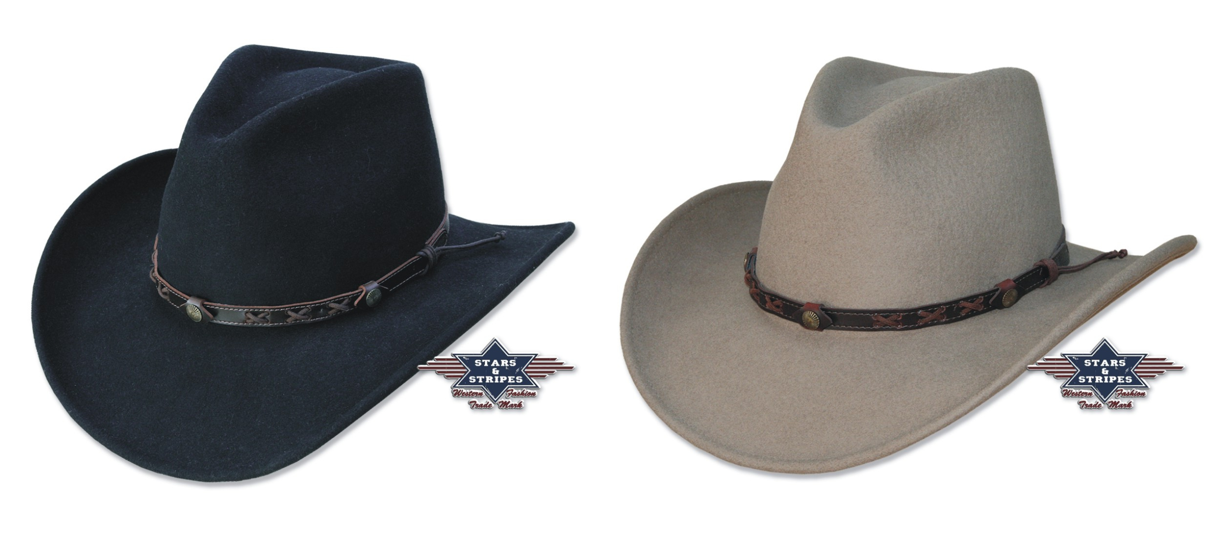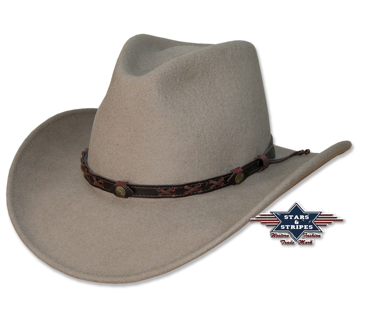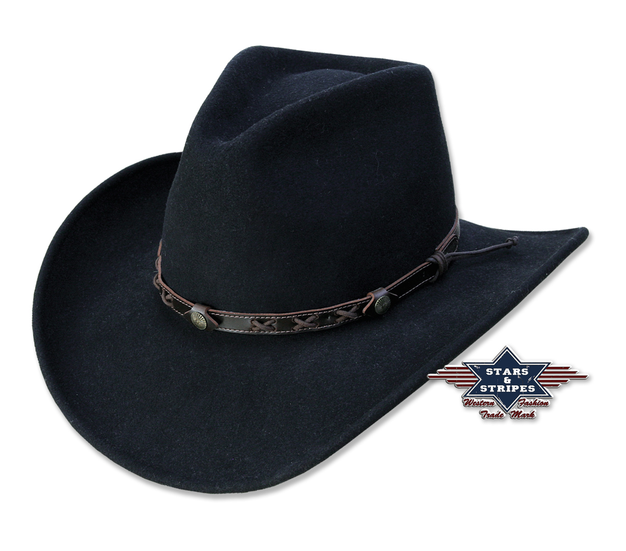 Stylový robustní westernový klobouk z přírodní vlny (plstěný, filcový), s vodoodpudivou úpravou, nastavitelná velikost.