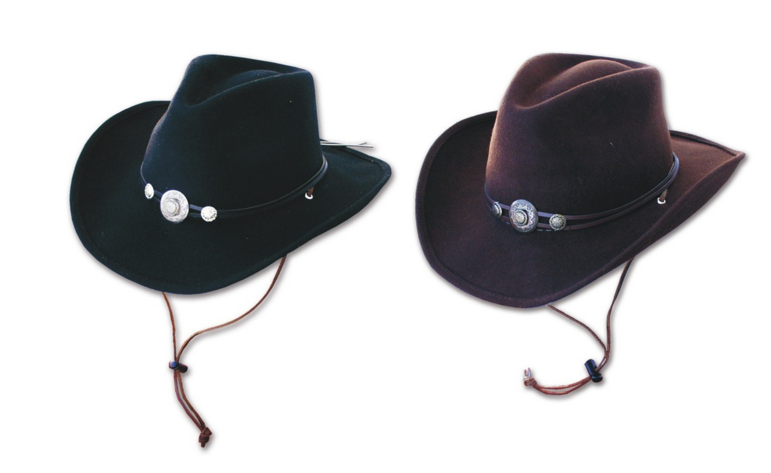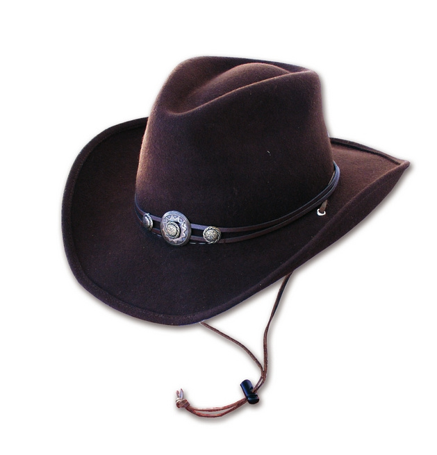 Filcový klobouk s conchas a se šňůrkou na uvázání ke krku.