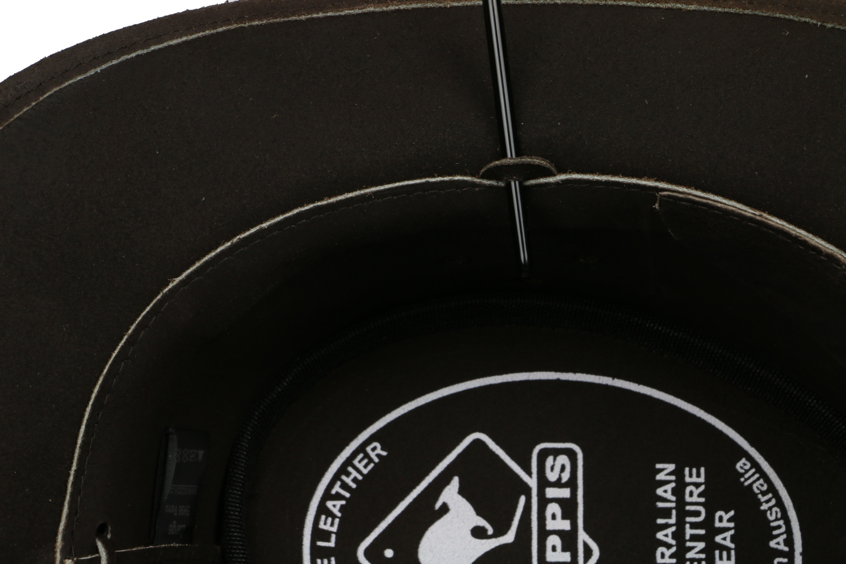 Klobouk od RUGGED EARTH pro ty nejmenší. Dětská velikost je obdoba klobouku RENO, jen v menší velikosti. Klobouk je z impregnované hovězí kůže, pro lepší odolnost nepřízni počasí. Praktická větrací očka pro snadné odvětrání v horkých dnech. Uvnitř klobouku jsou malé otvory, které umožňují snadnou montáž řemínku pod bradu.