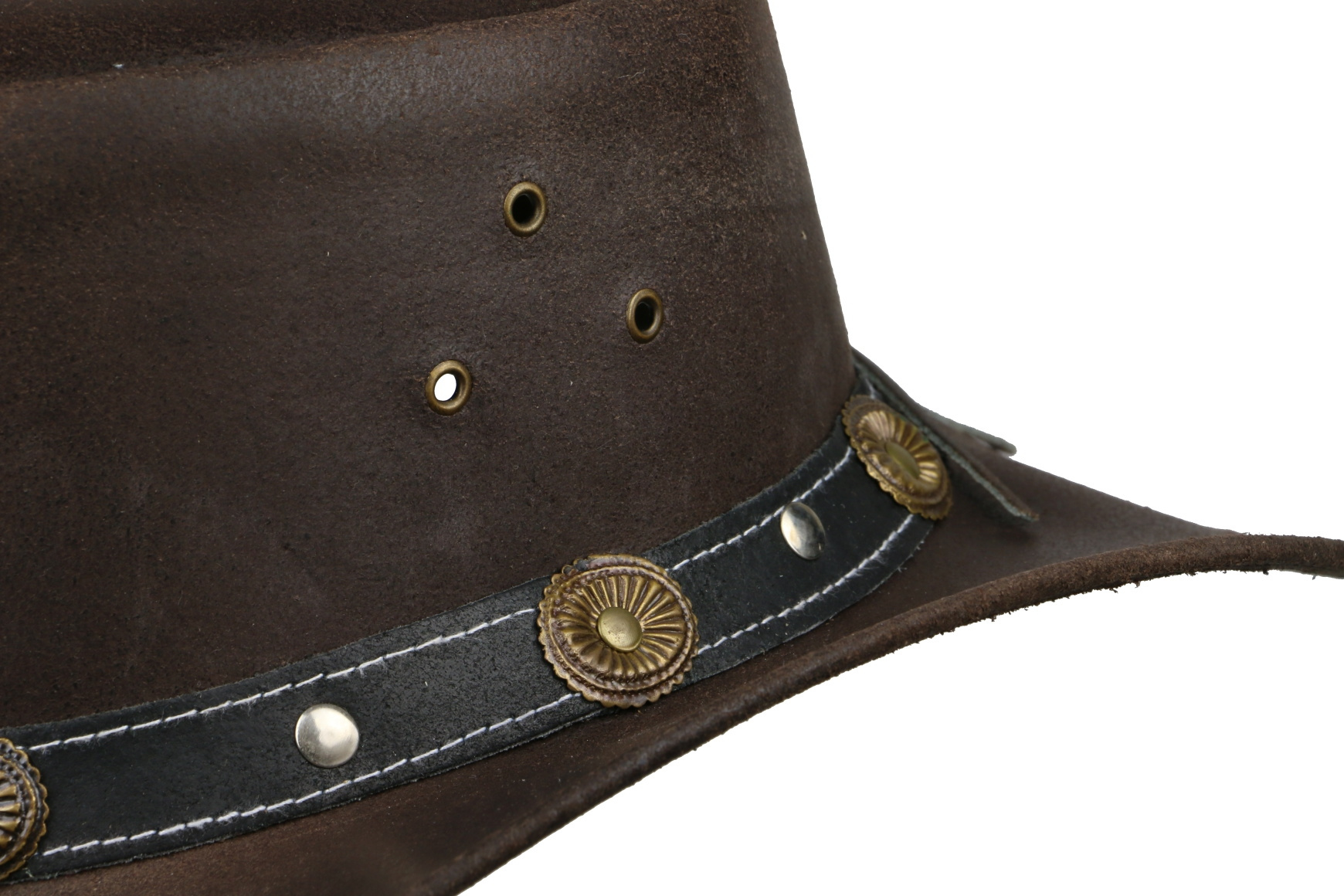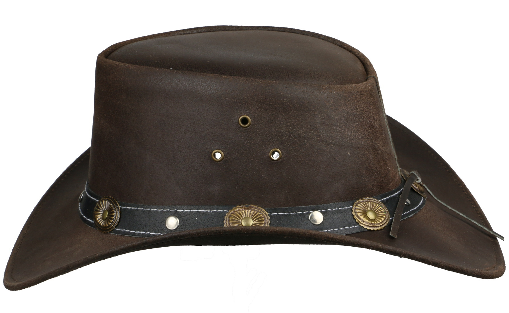 Reno od Rugged Earth je další cenově výhodný model, který splní všechny požadavky na kvalitu a vzhled. Je ozdoben conchos  a  páskem z pravé kůže. Má praktická očka pro snadné odvětrání v horkých dnech. Uvnitř klobouku jsou malé otvory, které umožňují snadnou montáž řemínku pod bradu. Hovězí impregnovaná kůže je odolná vůči počasí.