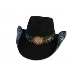 Popis produktu klobouk SALLYBarvačernáHlavní materiálpřírodní kůžeHlavní vzorbez vzorůDruhkovbojDámský plstěný klobouk s vyšívaným koženým páskem a vkusným konchem. Nově moderní aplikovaná výšivka na spodní straně. 100% rouno