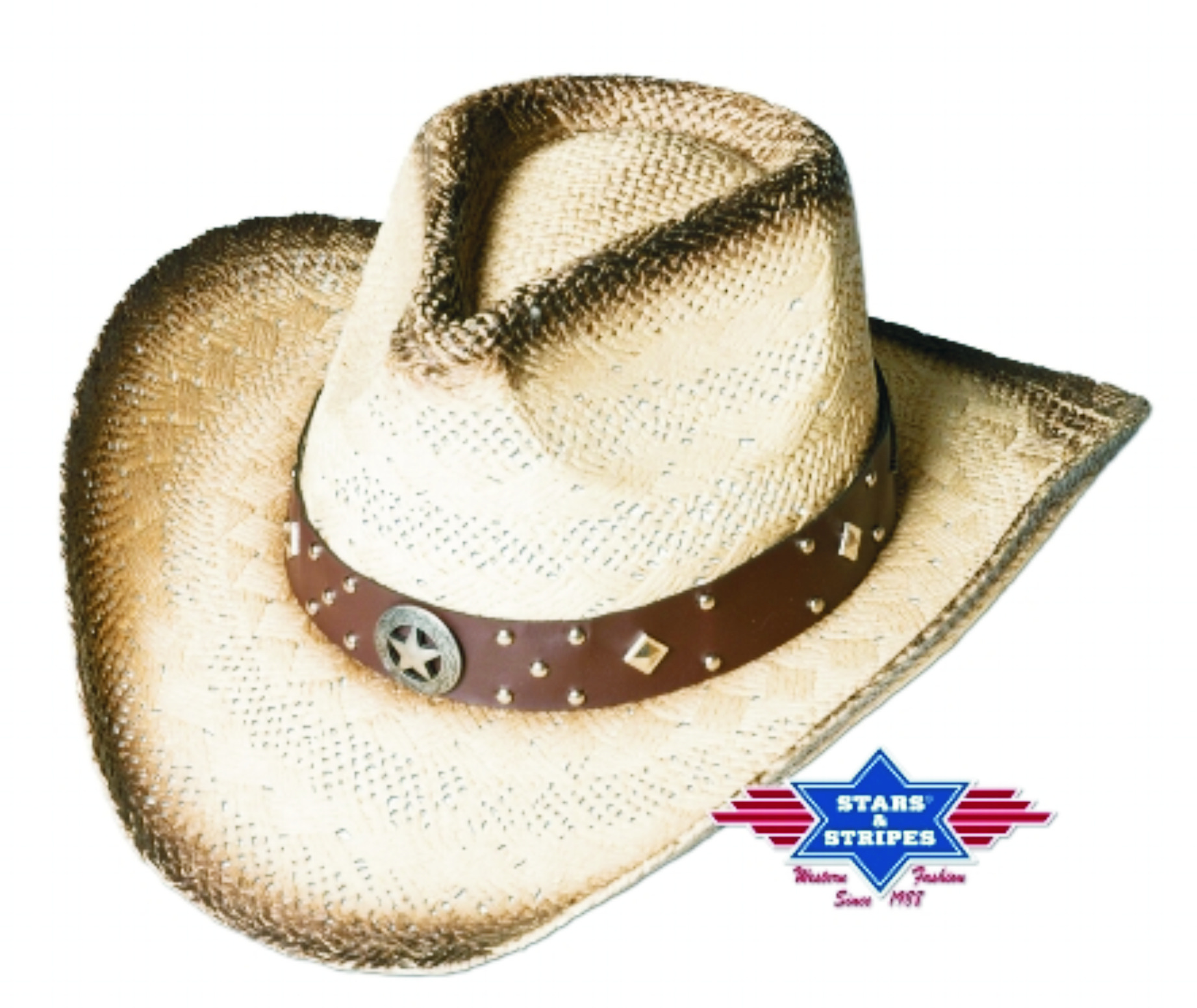 Tvarovaný slaměný westernový klobouk se zajímavým dekorem a pružným vnitřním páskem pro pohodlnější nošení.