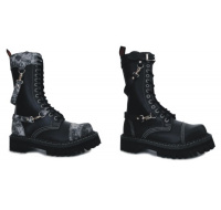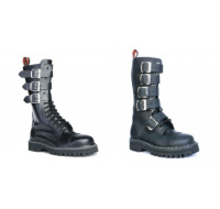 boty kožené KMM 14 dírkové crazy černé se 2 přezkama