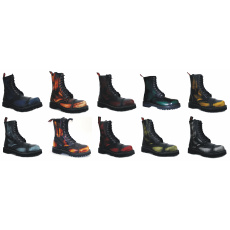 boty kožené KMM 14 dírkové černé/oranžová kombinované