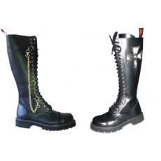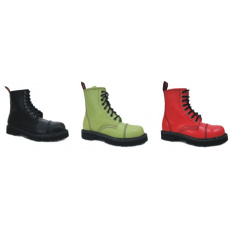 boty kožené KMM 8 dírkové černé/zelená/bílá