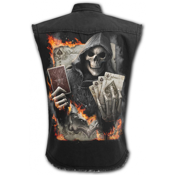 Popis produktu Košile bez rukávů s motivem ACE REAPERČerná bavlněná košile bez rukávů s velice kvalitním potiskem, patina a otrhané rukávy. Velikost (ramena - pas - délka): M - 48 - 104 - 63 cm L - 51 - 108 - 65 cm XL - 53 - 112 - 67 cm XXL - 58 122 72 cm