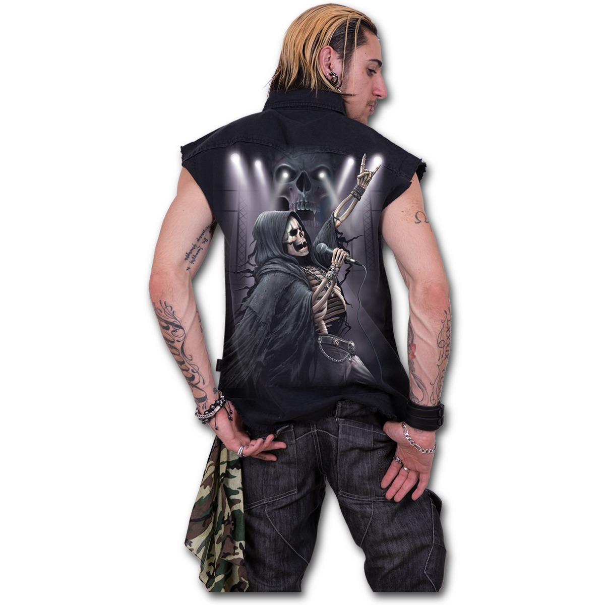 Popis produktu Košile bez rukávů s motivem ROCK 4EVERČerná bavlněná košile bez rukávů s velice kvalitním potiskem, patina a otrhané rukávy. Velikost (ramena - pas - délka): M - 48 - 104 - 63 cm L - 51 - 108 - 65 cm XL - 53 - 112 - 67 cm XXL - 58 122 72 cm