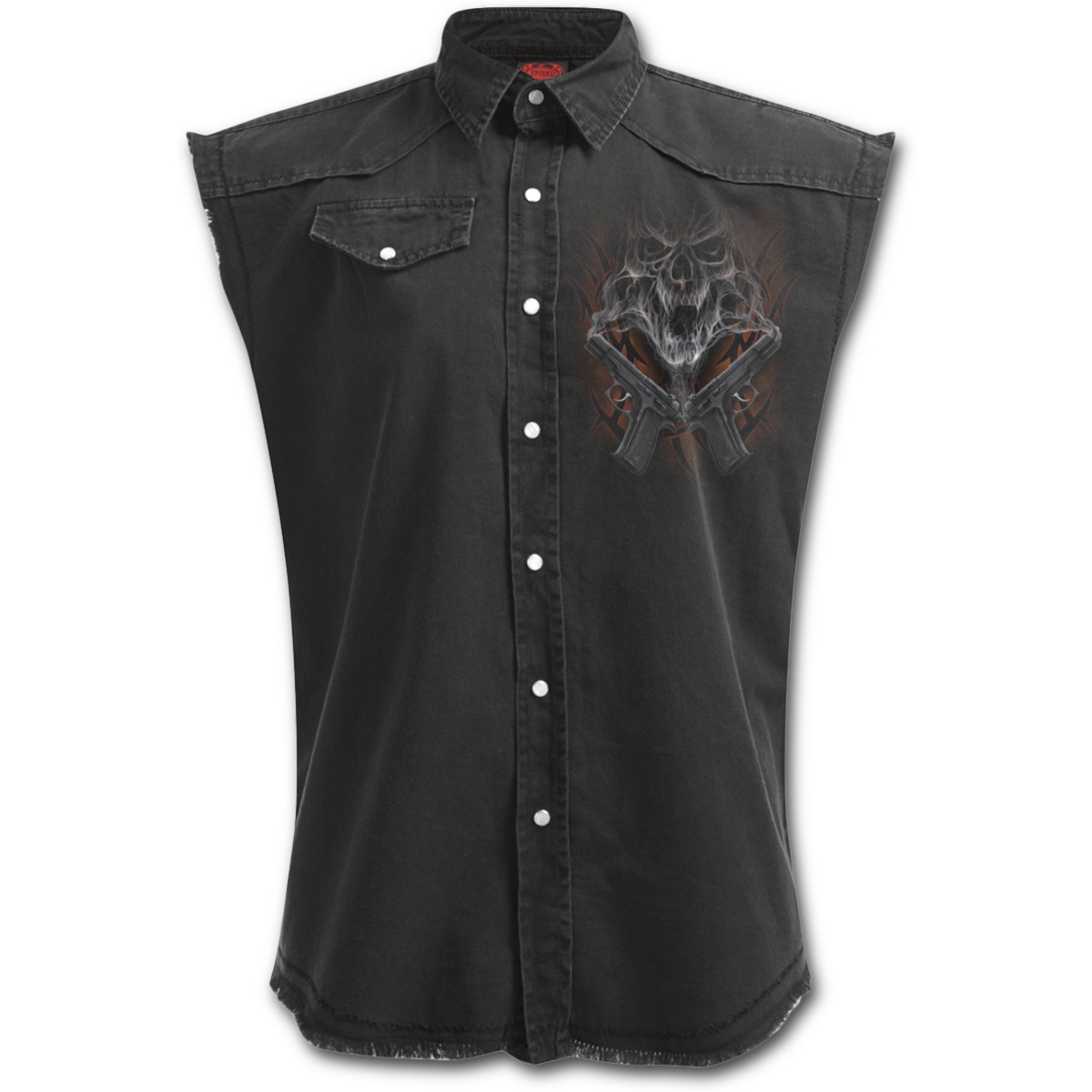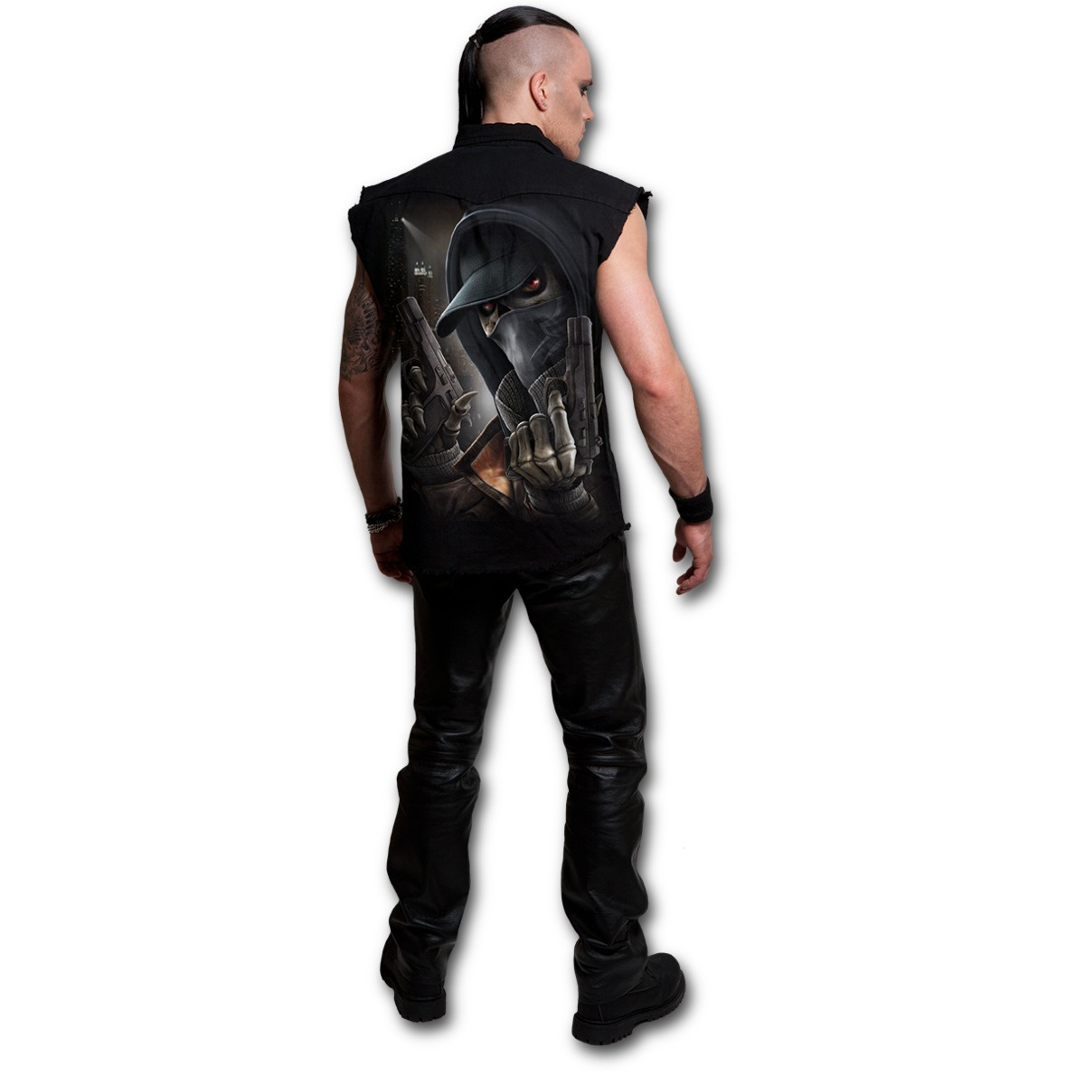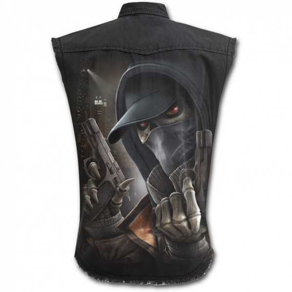 Popis produktu Košile bez rukávů s motivem STREET REAPERČerná bavlněná košile bez rukávů s velice kvalitním potiskem, patina a otrhané rukávy. Velikost (ramena - pas - délka): M - 48 - 104 - 63 cm L - 51 - 108 - 65 cm XL - 53 - 112 - 67 cm XXL - 58 122 72 cm