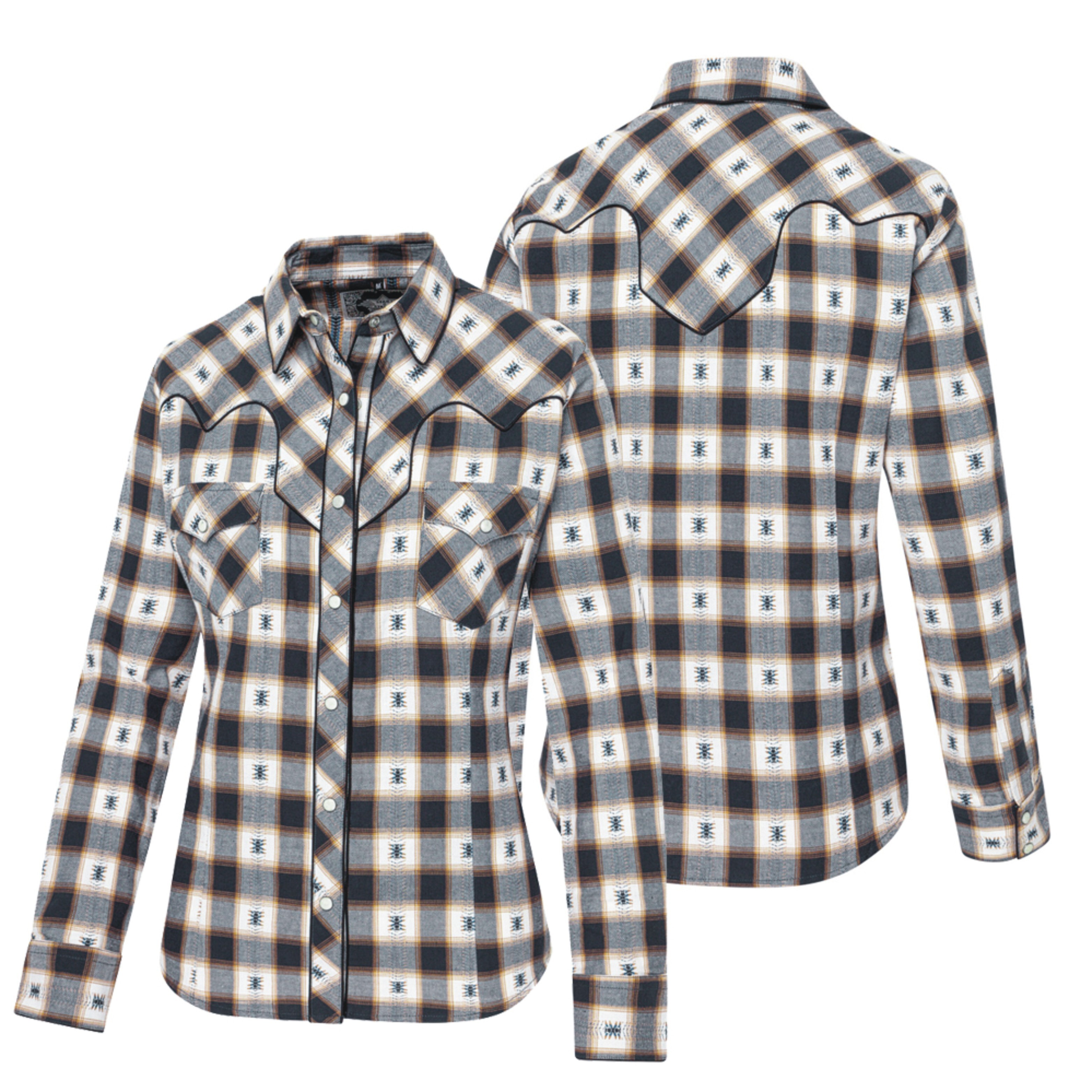 Dámská westernová halenka s výrazným kostkovaným vzorem v tlumených tónech s malými tkanými detaily. Typické westernové sedlo, nakládané náprsní kapsy a westernové manžety s 6 mramorovanými druky dodávají košili autentické kovbojské kouzlo. Všestranná košile, která se perfektně hodí k ležérnímu, ale zároveň stylovému oblečení. Do páru a perfektně se hodí ke košili GUS.