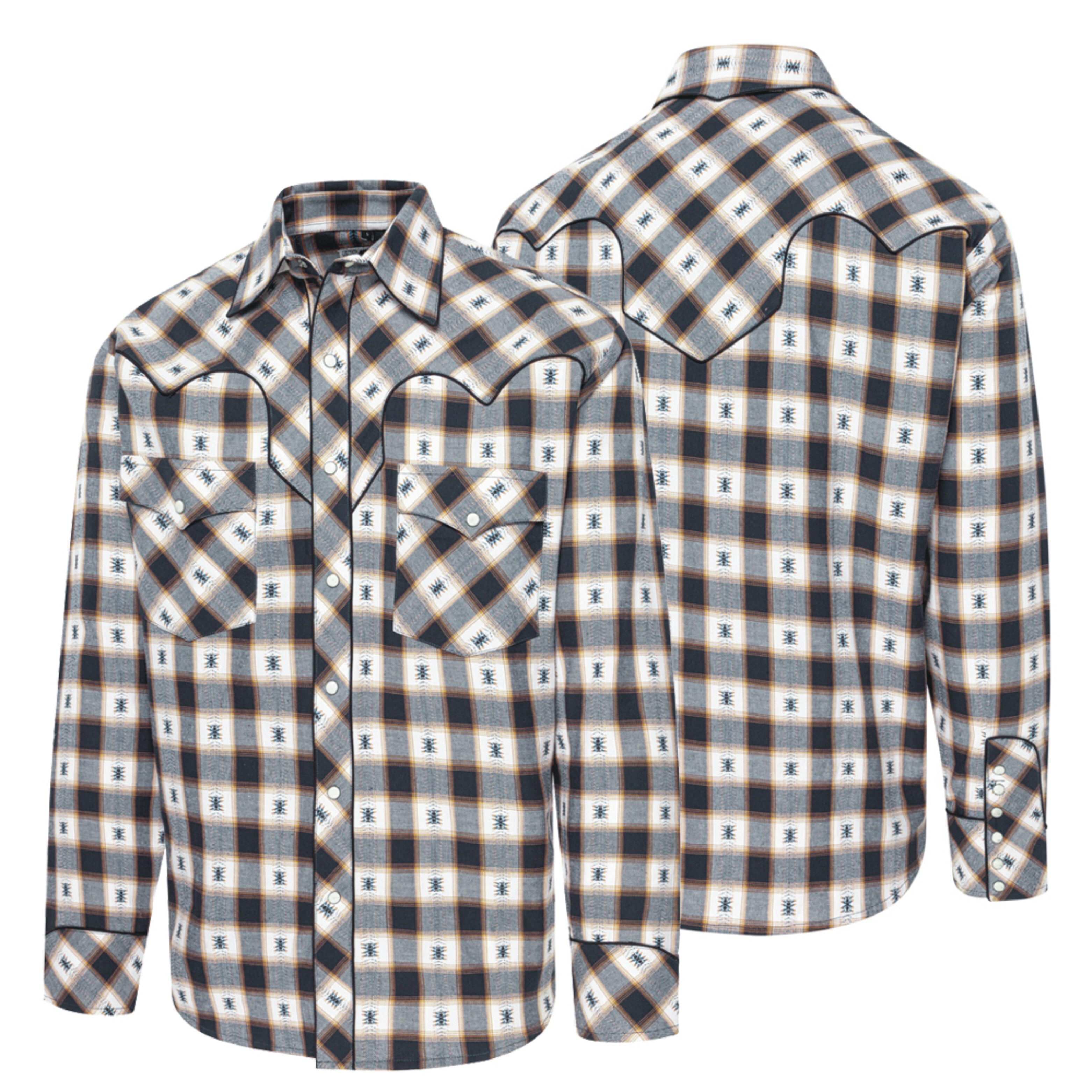 Westernová košile s výrazným kostkovaným vzorem v tlumených tónech s malými tkanými detaily. Typické westernové sedlo, nakládané náprsní kapsy a westernové manžety s 6 mramorovanými druky dodávají košili autentické kovbojské kouzlo. Všestranná košile, která se perfektně hodí k ležérnímu, ale zároveň stylovému oblečení. Do páru a perfektně se hodí k halence CASSIDY.