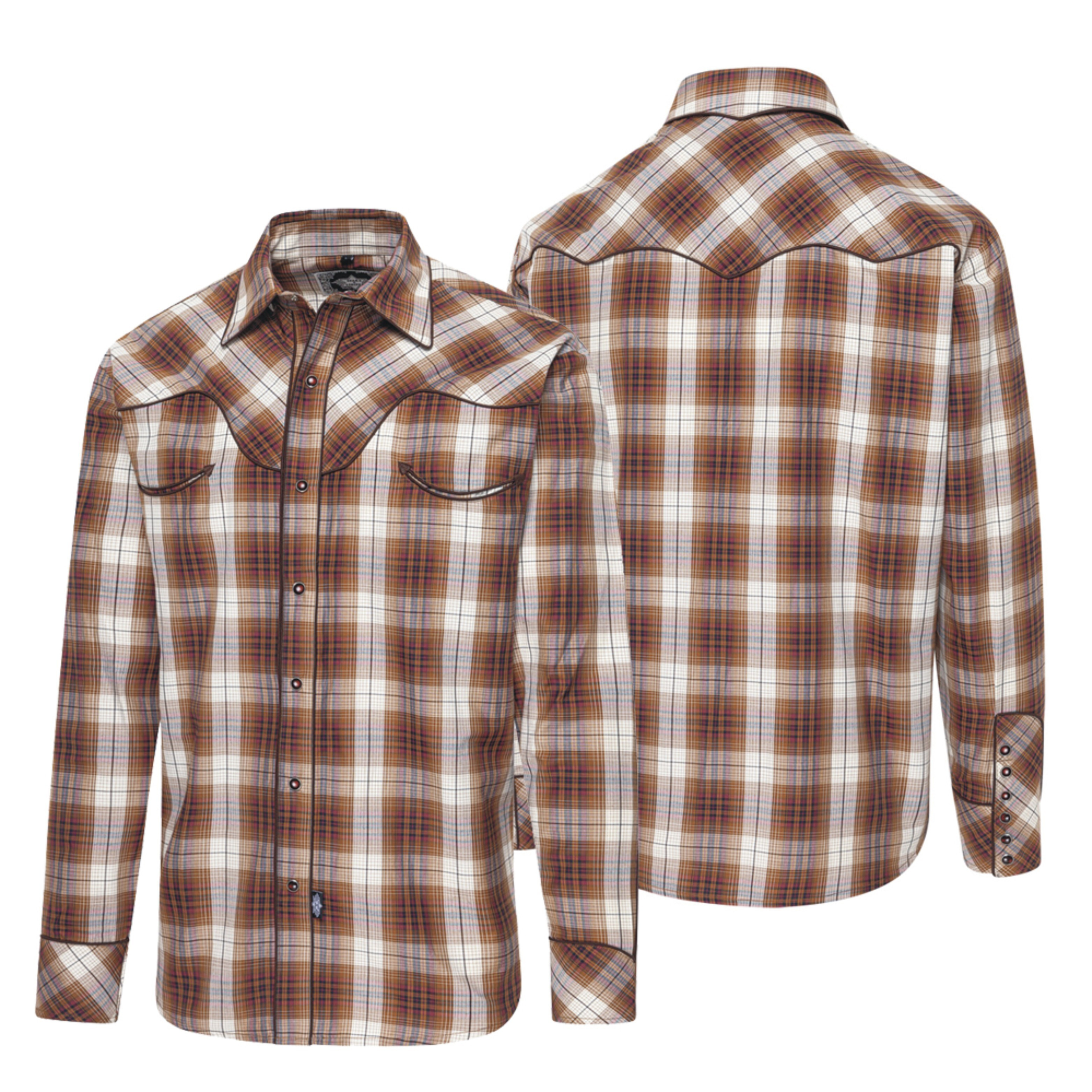 Westernová košile s klasickým kostkovaným vzorem v teplých hnědých a béžových tónech. Typické westernové sedlo, náprsní kapsy, tmavé lemování a westernové manžety se 6 druky dodávají košili autentický kovbojský šarm. Všestranná košile, která se perfektně hodí k ležérnímu, ale zároveň stylovému oblečení.