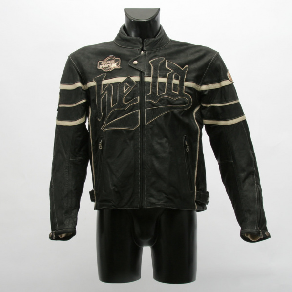 Krátka bunda sportovního střihu (retro styl) z měkké hovězí kůže s jednou vnitřní a dvěma vnějšími kapsami. Vyjímatelné CE chrániče loktů/předloktí, ramen. Měkký chránič zad je možno zaměnit za chránič CE. Vzdušná podšívka. Nízký kožený stojaček. Zapínání dlouhým kovovým zipem s klopou zajištěnou kovovým druckem pod límečkem. Stahování na bocích koženými pásky s kovovou přezkou. Zapínání rukávů kovovým zipem a koženou klopou s kovovým druckem na vnitřní straně.