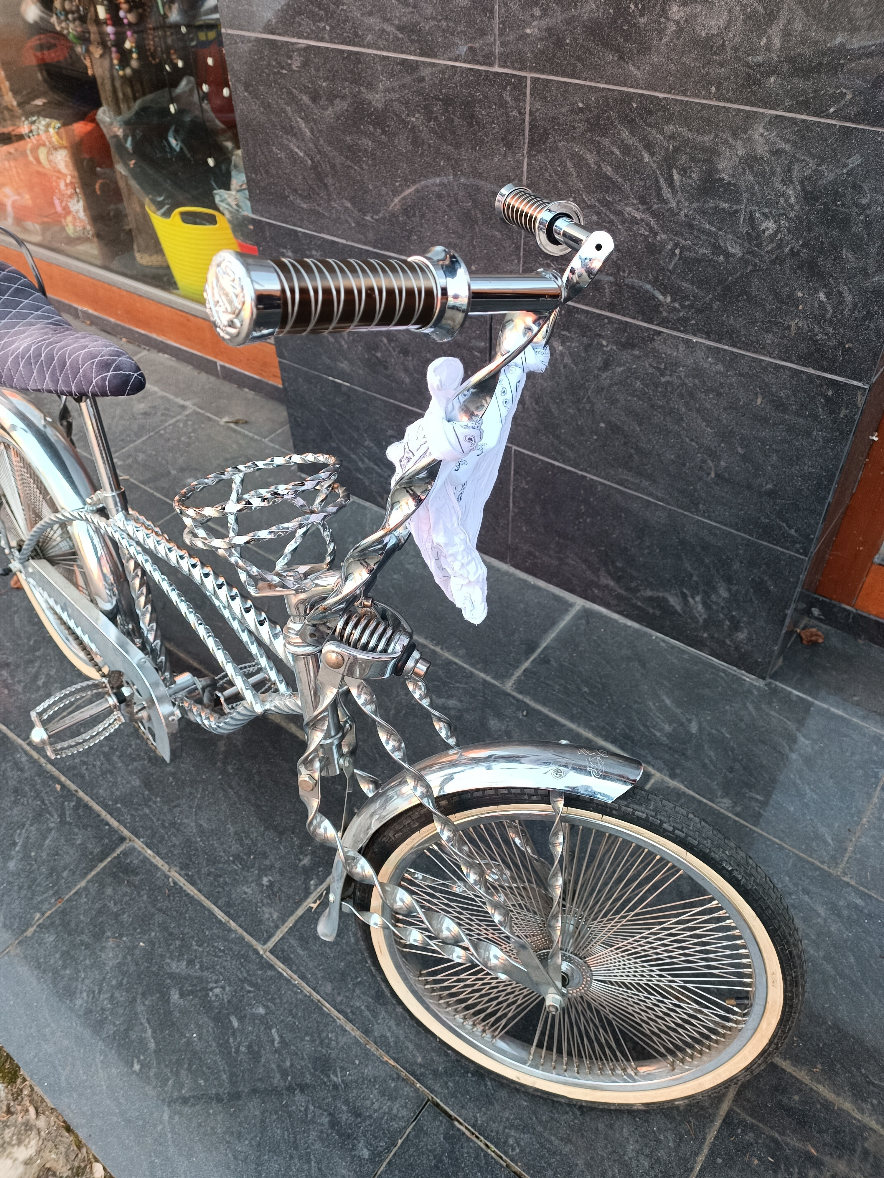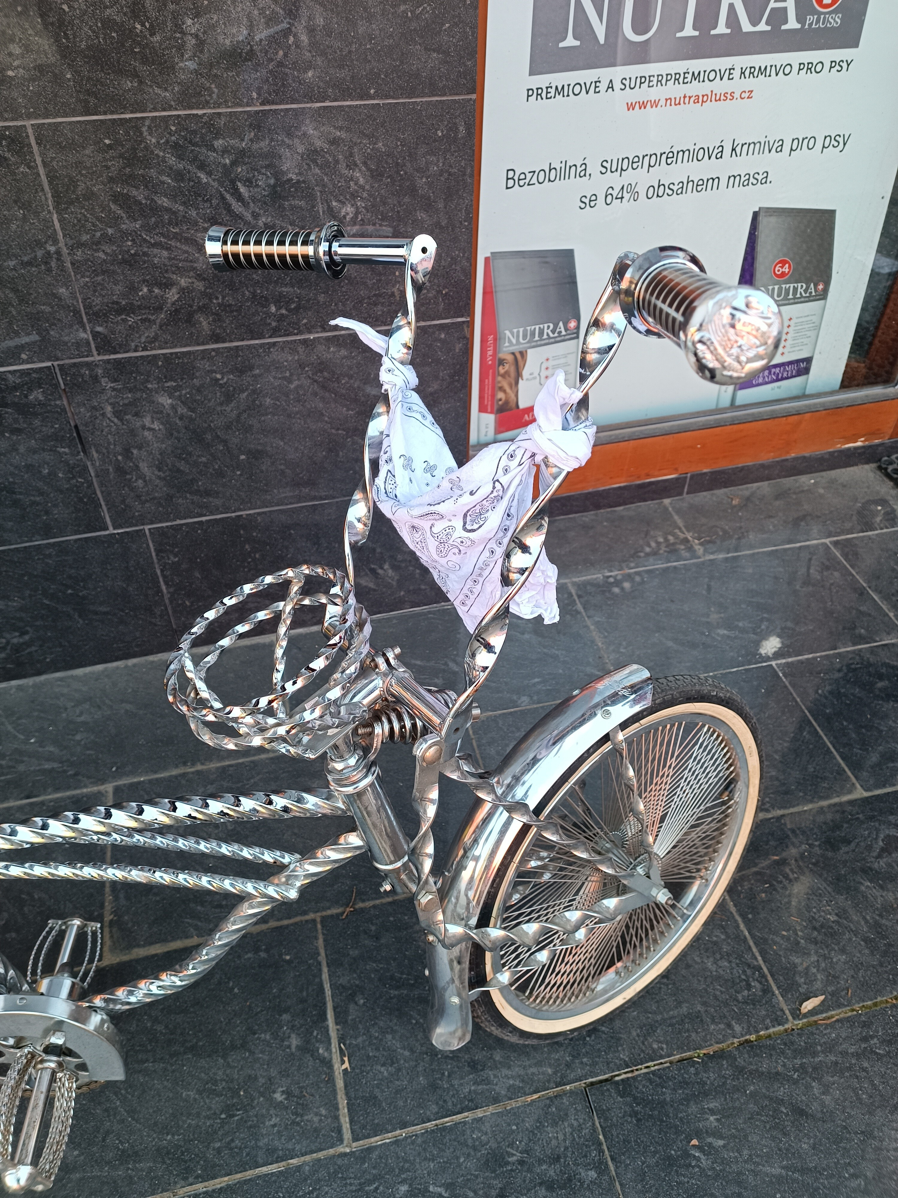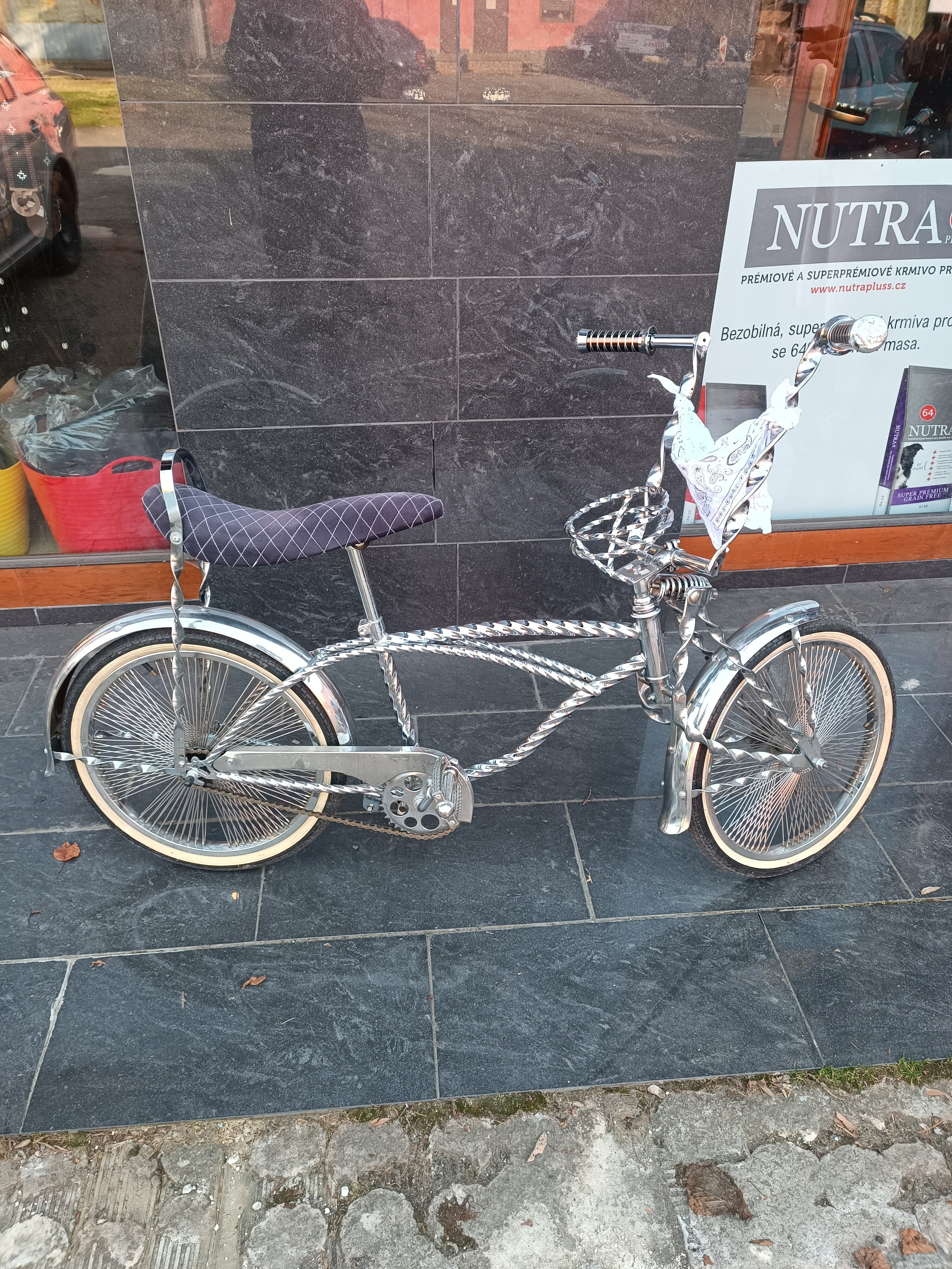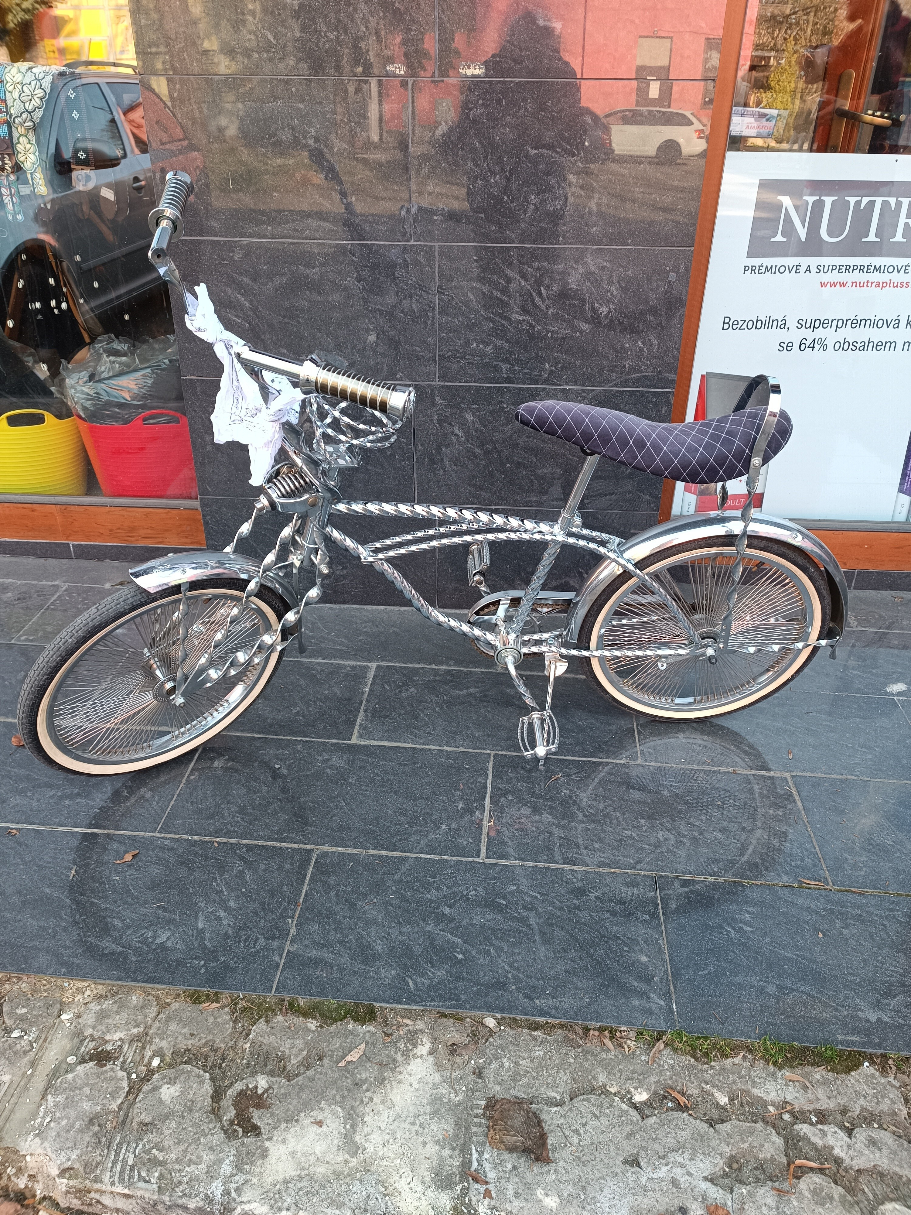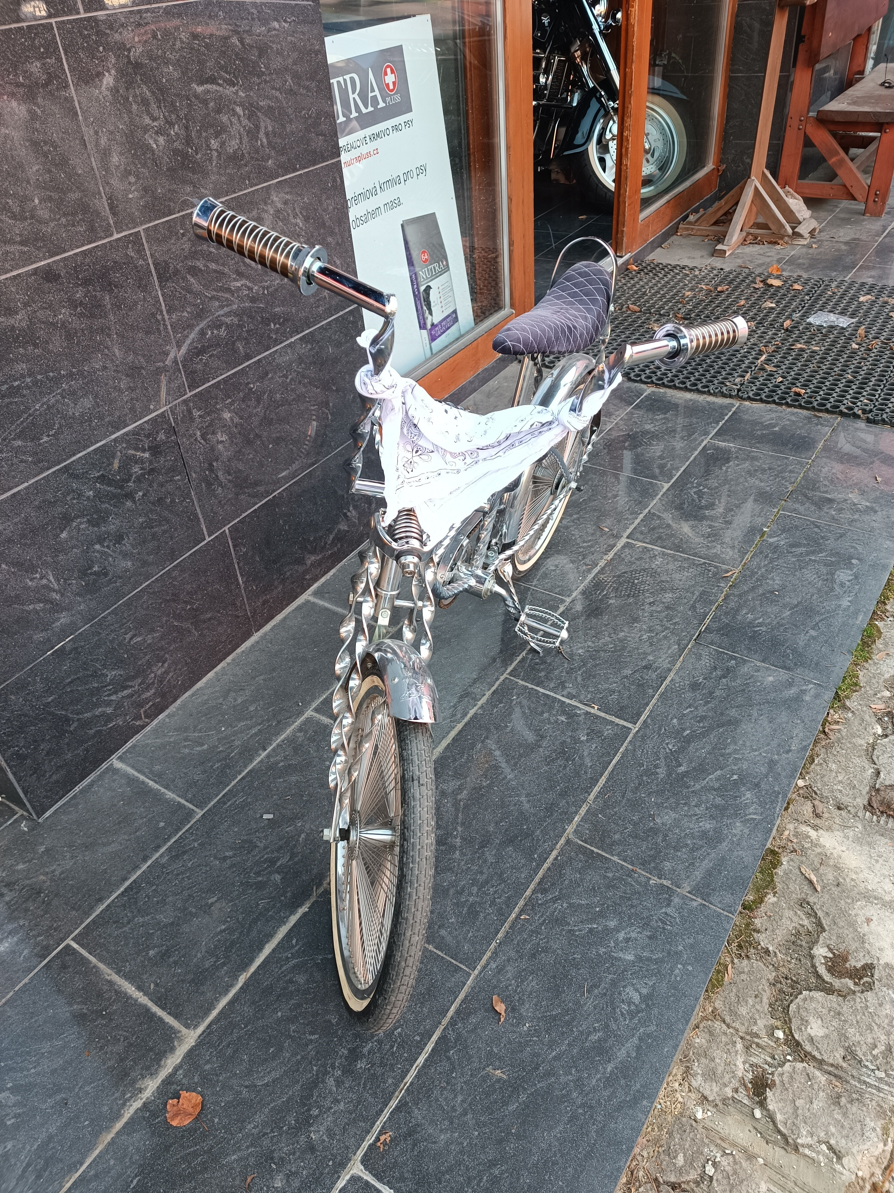 Stylový bicykl Low rider. Použitý, výborný stav, celý v chromu. Kolo nemáme na prodejně, v případě zVíce