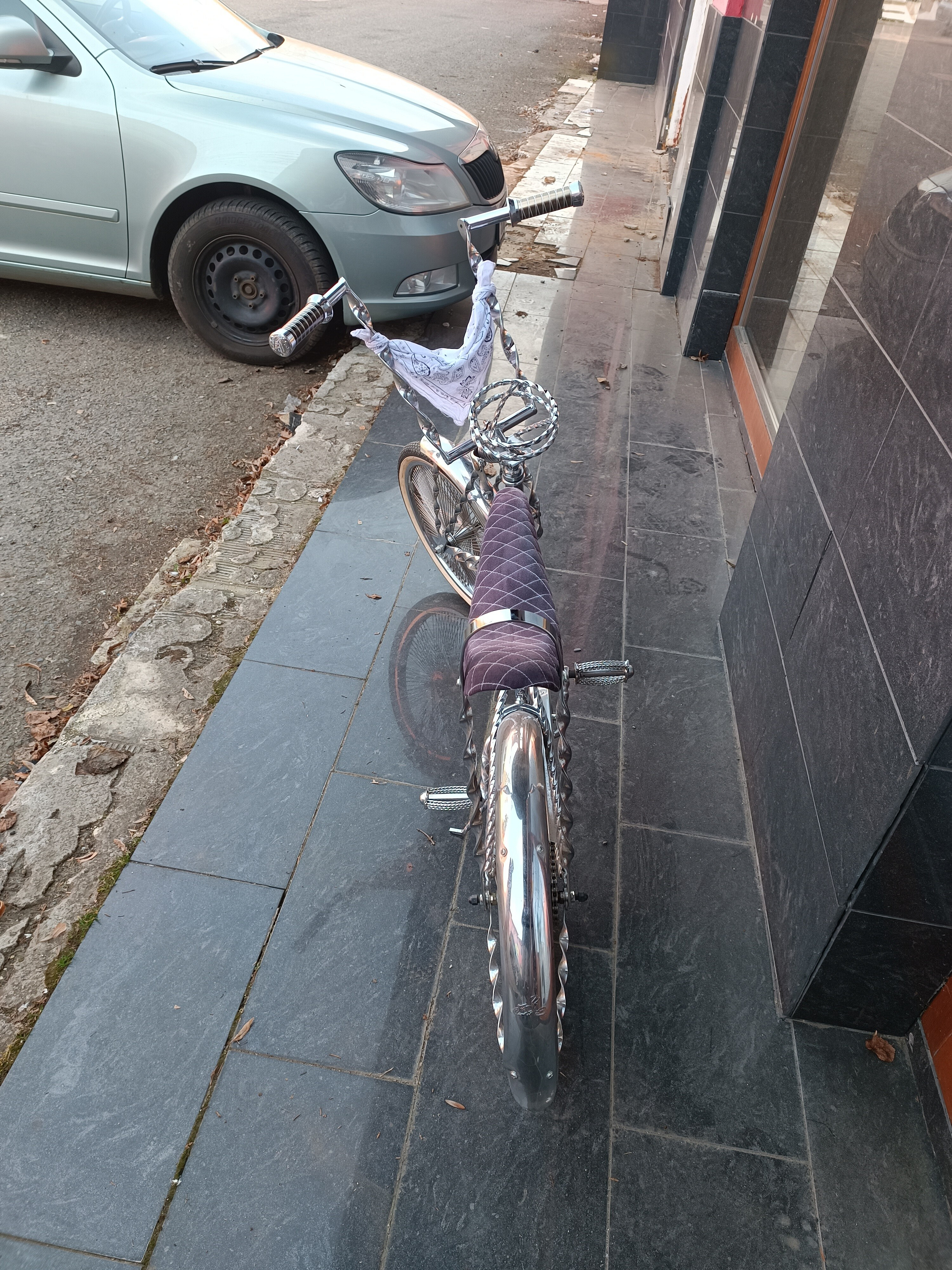 Stylový bicykl Low rider. Použitý, výborný stav, celý v chromu. Kolo nemáme na prodejně, v případě zájmu si prosím domluvte termín, zajistíme dodání majitelem.