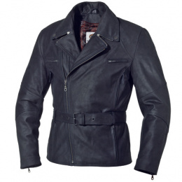 Prodloužená cestovní bunda z velmi jemné hovězí kůže s jednou vnitřní a čtyřmi vnějšími kapsami. Vyjímatelné měkké chrániče loktů/předloktí, ramen a zad, které je možno zaměnit za chrániče CE. Vyjímatelná vložka včetně rukávů. Široký klopový límec. Zapínání dlouhým šikmým kovovým zipem. Větrací otvory uzavíratelné na zip, dva vpředu a dva vzadu. Elastický šev v pase. Stahování v pase koženým páskem s kovovou přezkou. Zapínání rukávů dlouhým kovovým zipem na vnitřní straně.