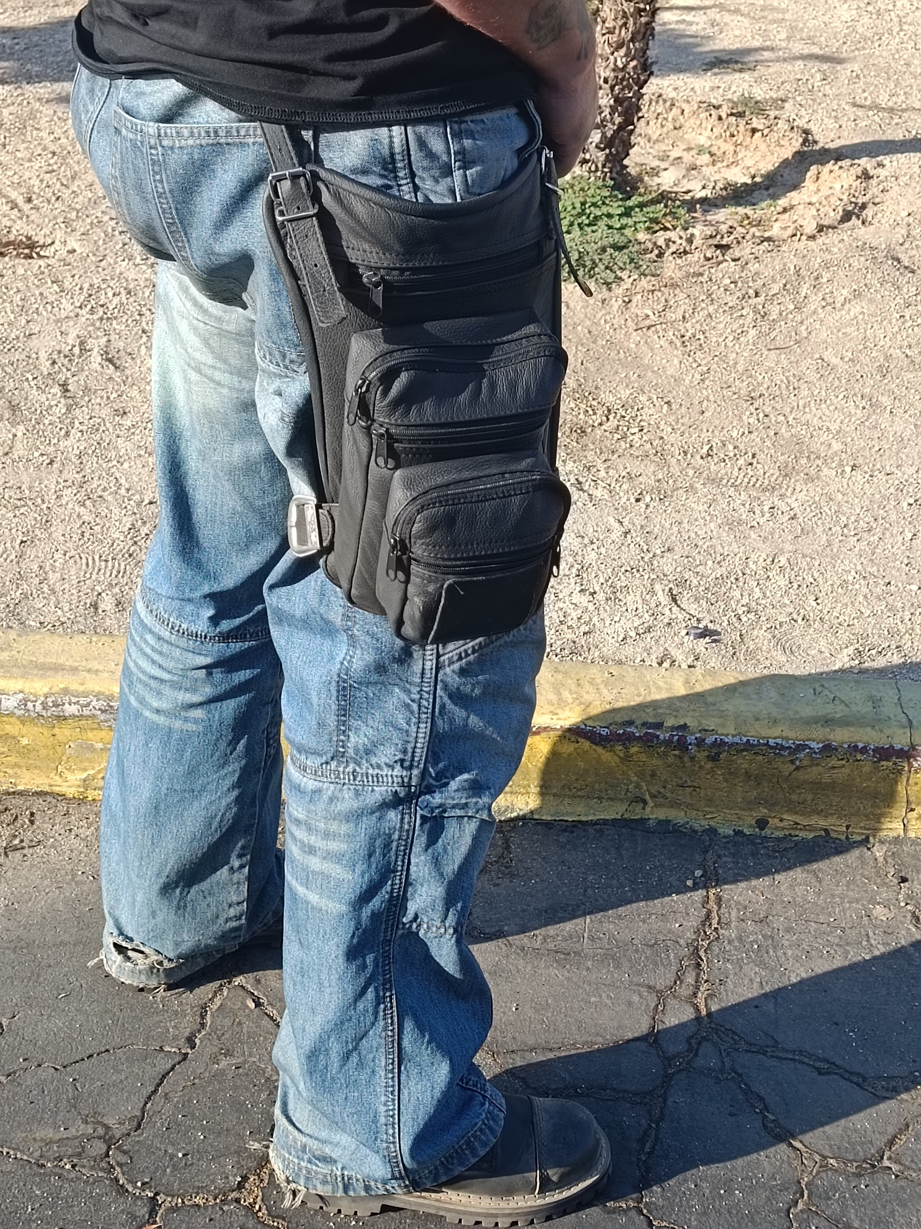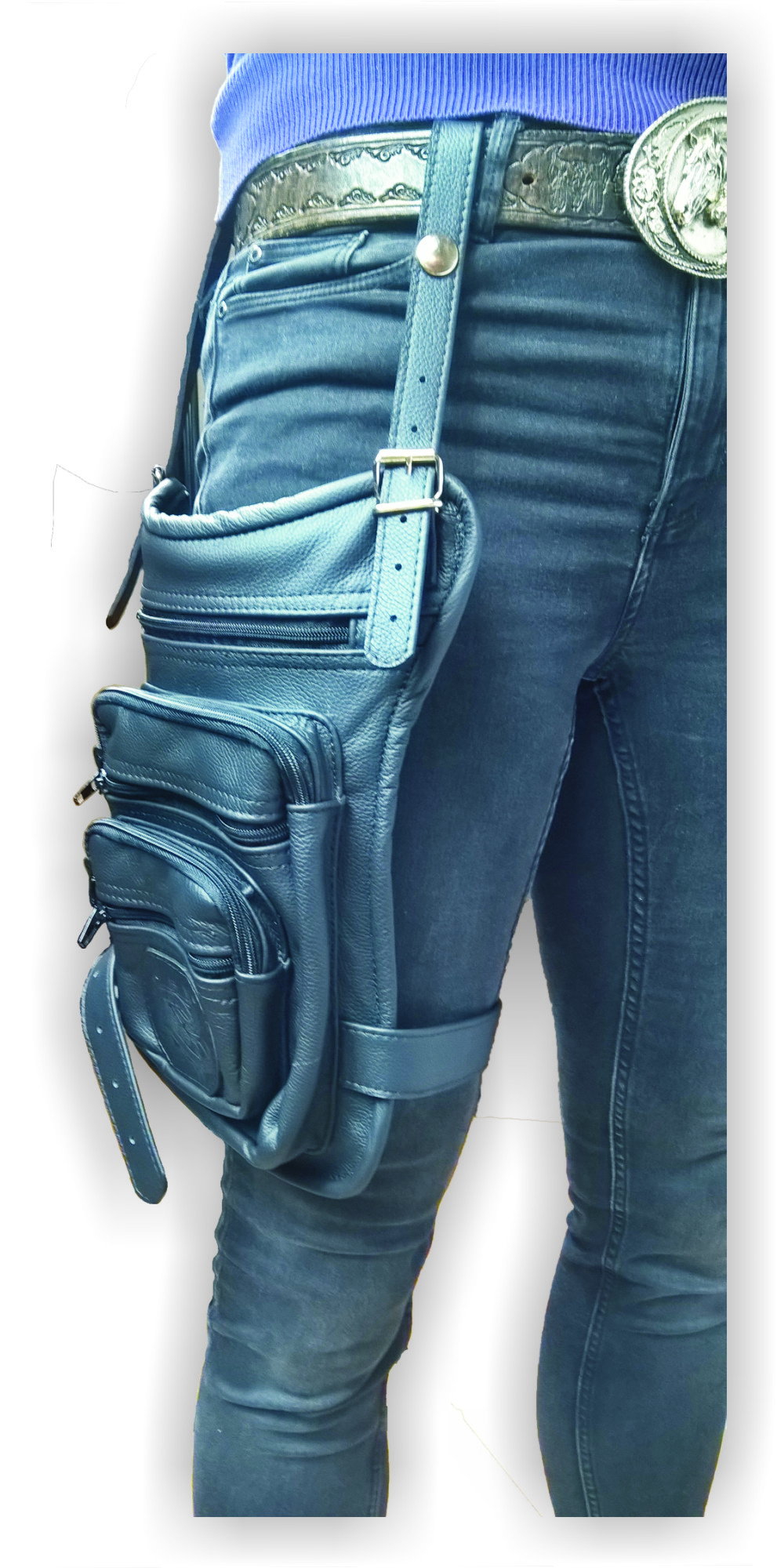 Luxusní kožená kapsa na nohu. Stylová kapsa z kůže a s kovovými přezkami, žádné umělohmotné náhražky a suché zipy.