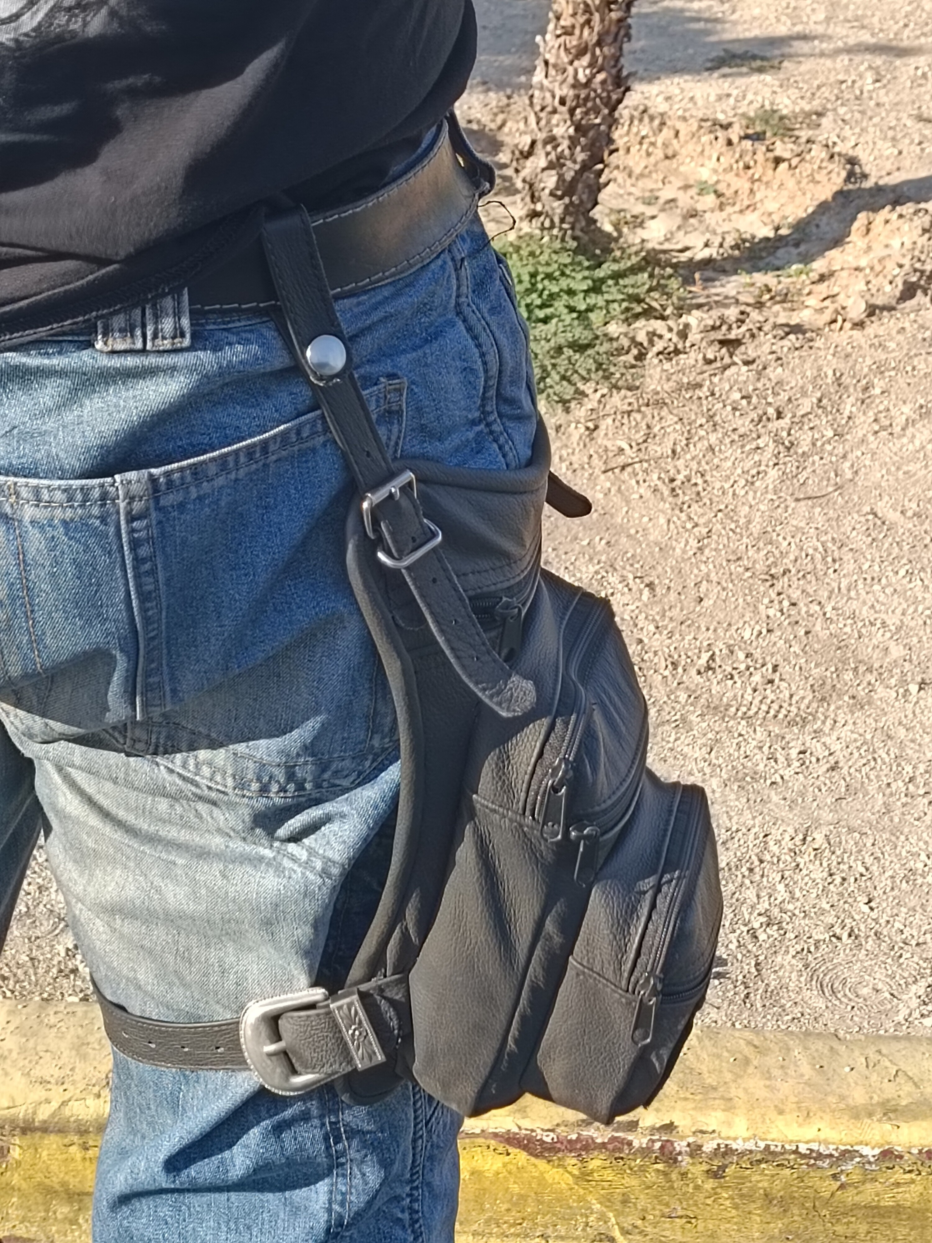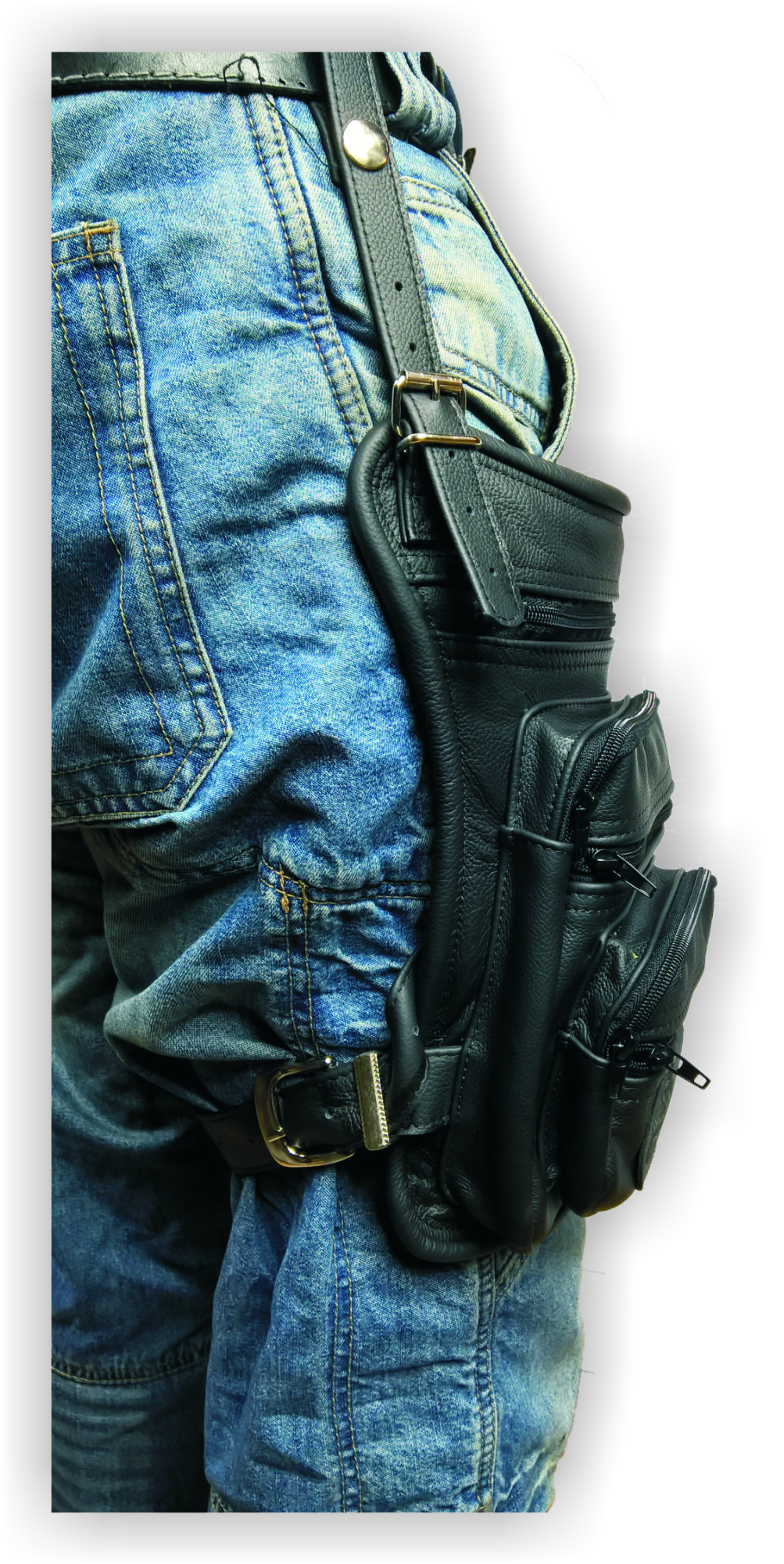 - délkově nastavitelné kožené řemínky ukončené okem pro připnutí k opasku (oko na druk, kapsa se dá lehce z opasku sundat)