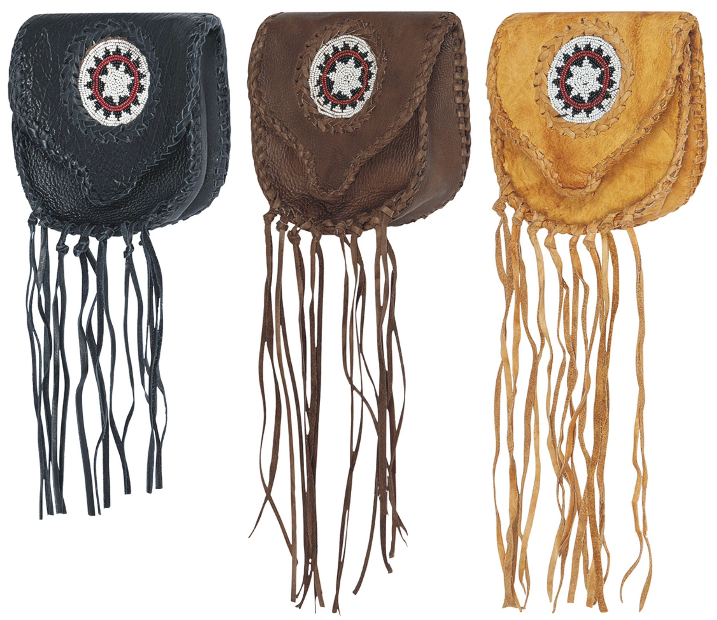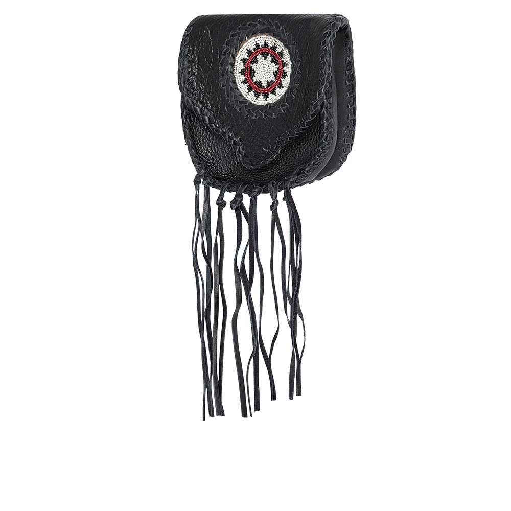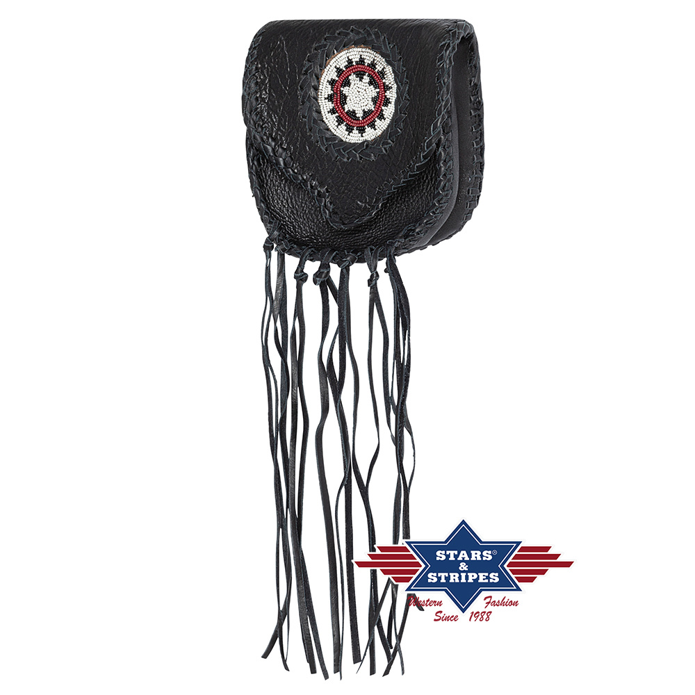 Okouzlující stylová kapsa na opasek zdobená indiánskými motivy, šněrováním a třásněmi. Zajímavý bareVíce