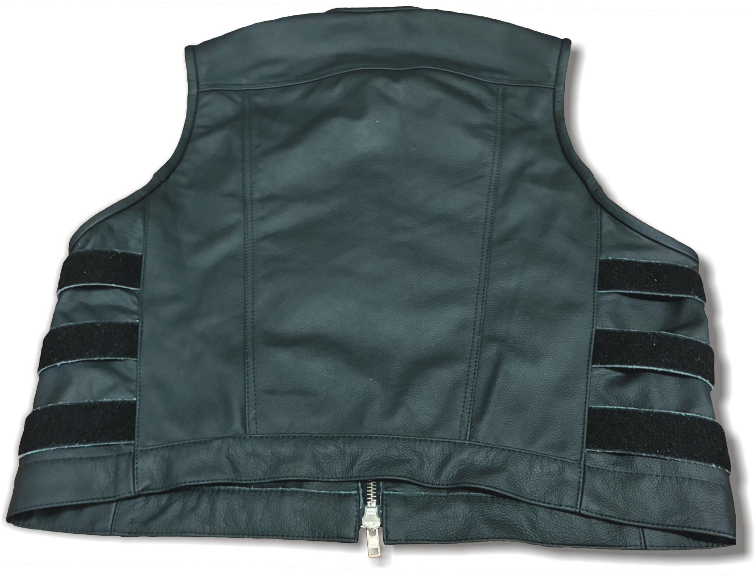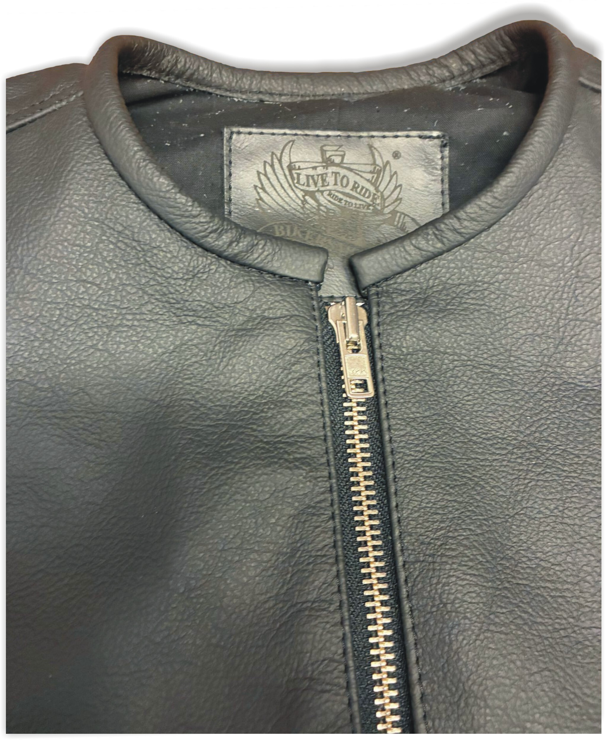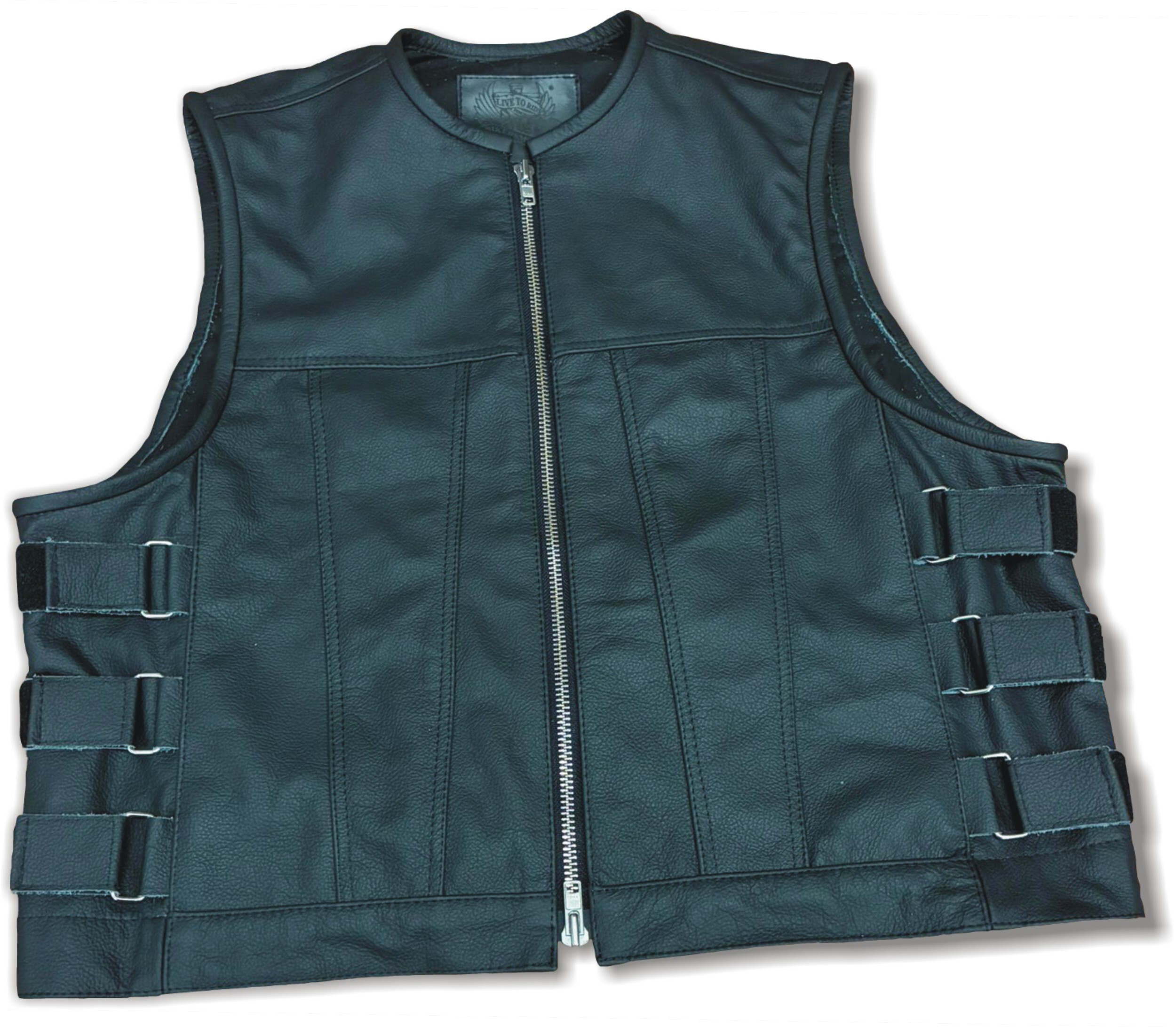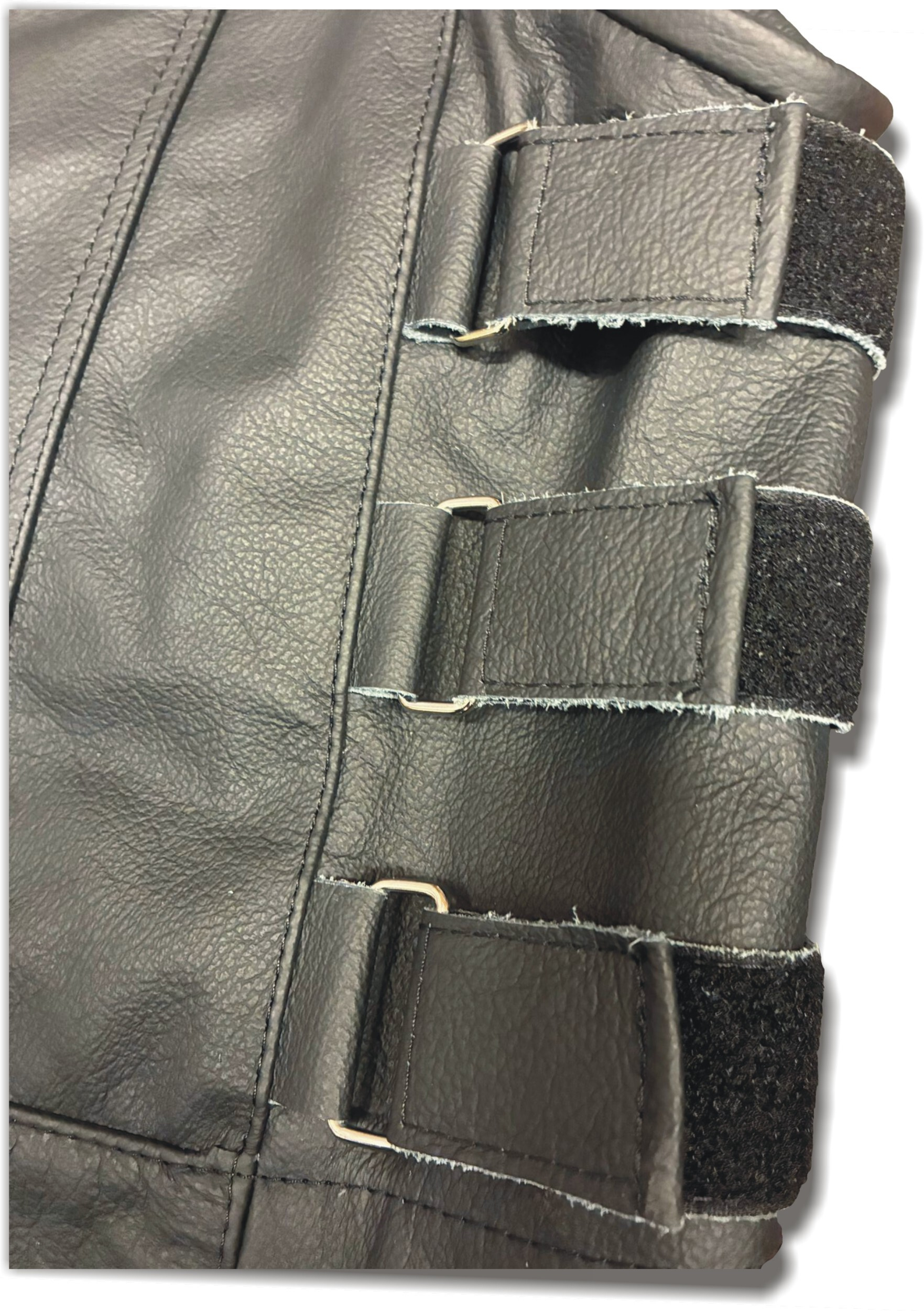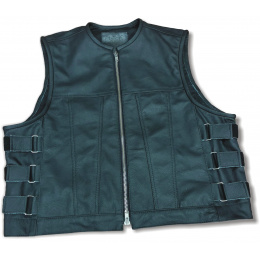 Motorkářská vesta riflového střihu se stahovacími páskami na bocích z nejkvalitnější hovězí kůže BIKERSMODE VP-7A.