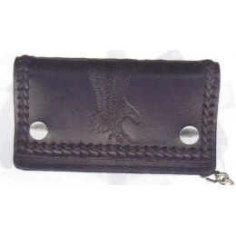 Popis produktu kožená peněženka 879 orelKožená peněženka se dvěmi přihrádkami na bankovky, jednou na mince a jednou na platební karty a se zdobením. Rozměry: cca 16 x 9 cm Barva: černá
