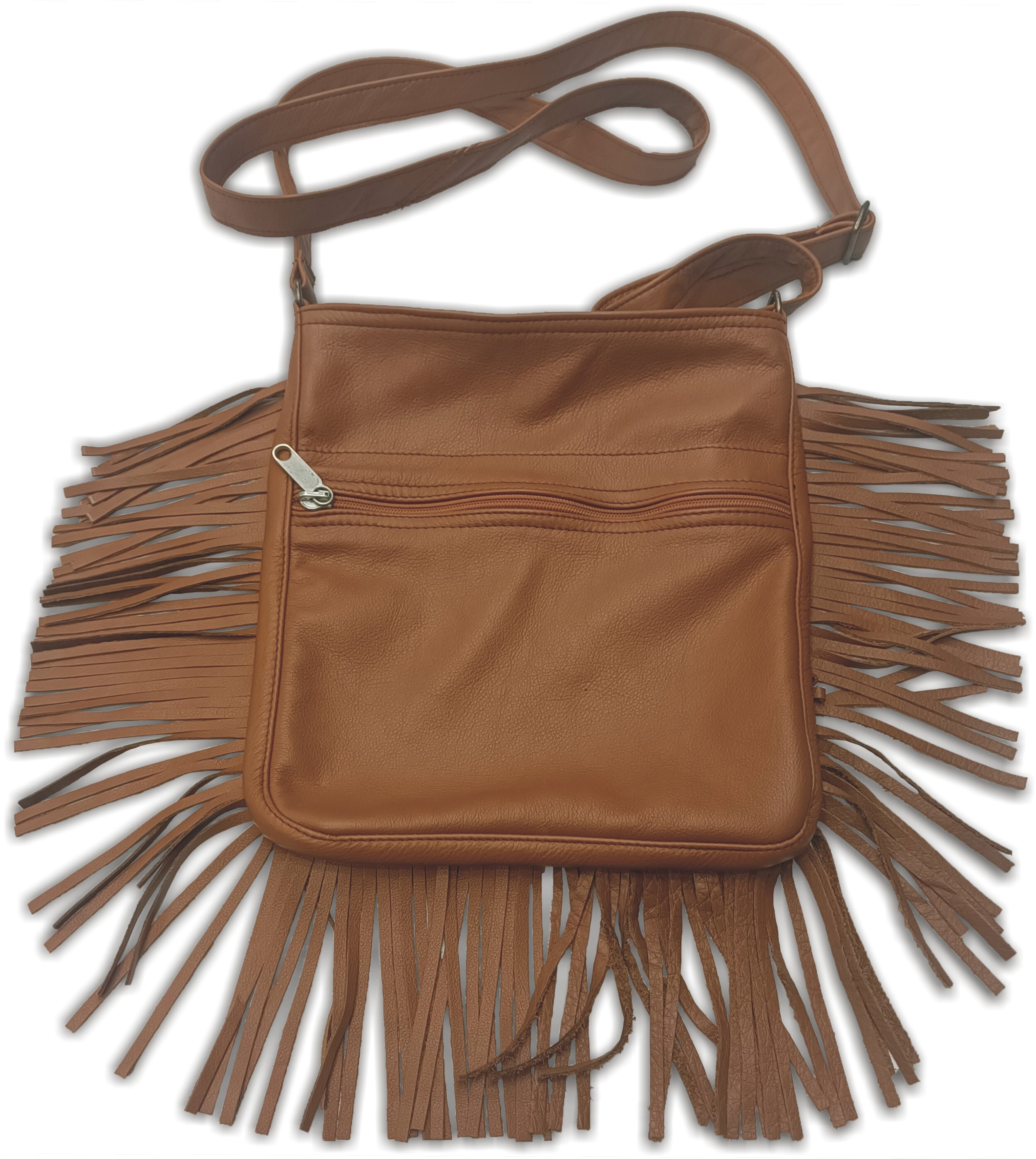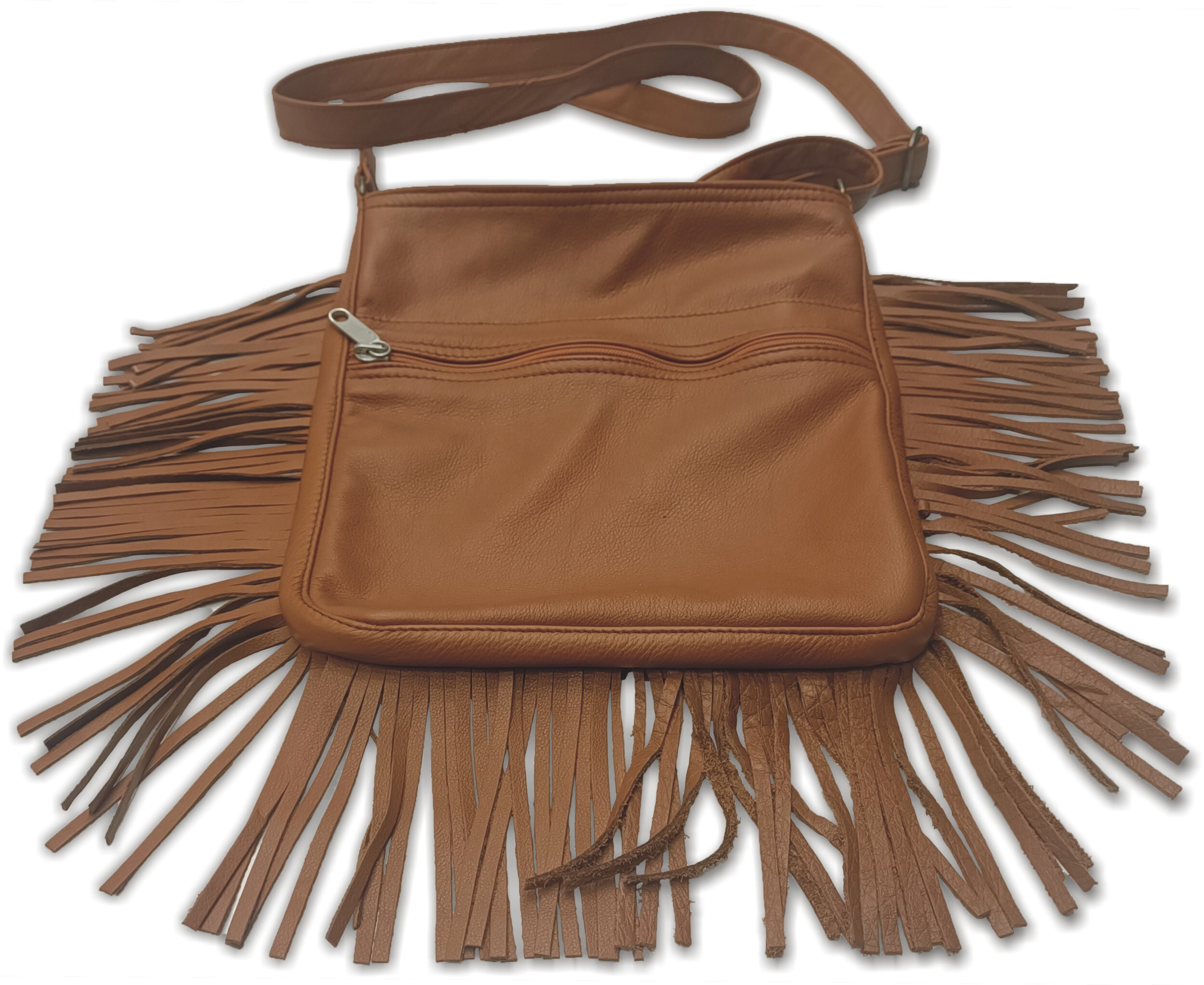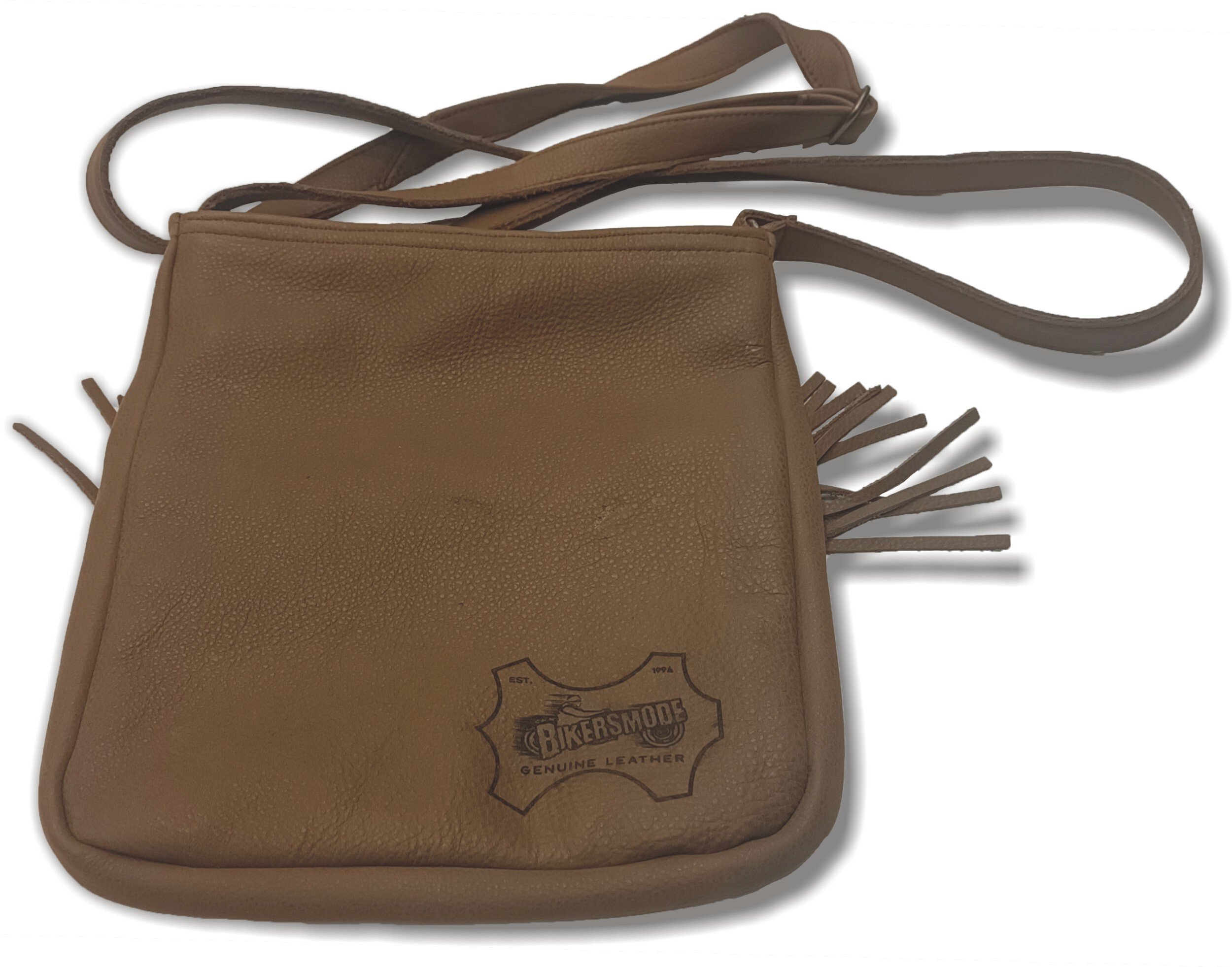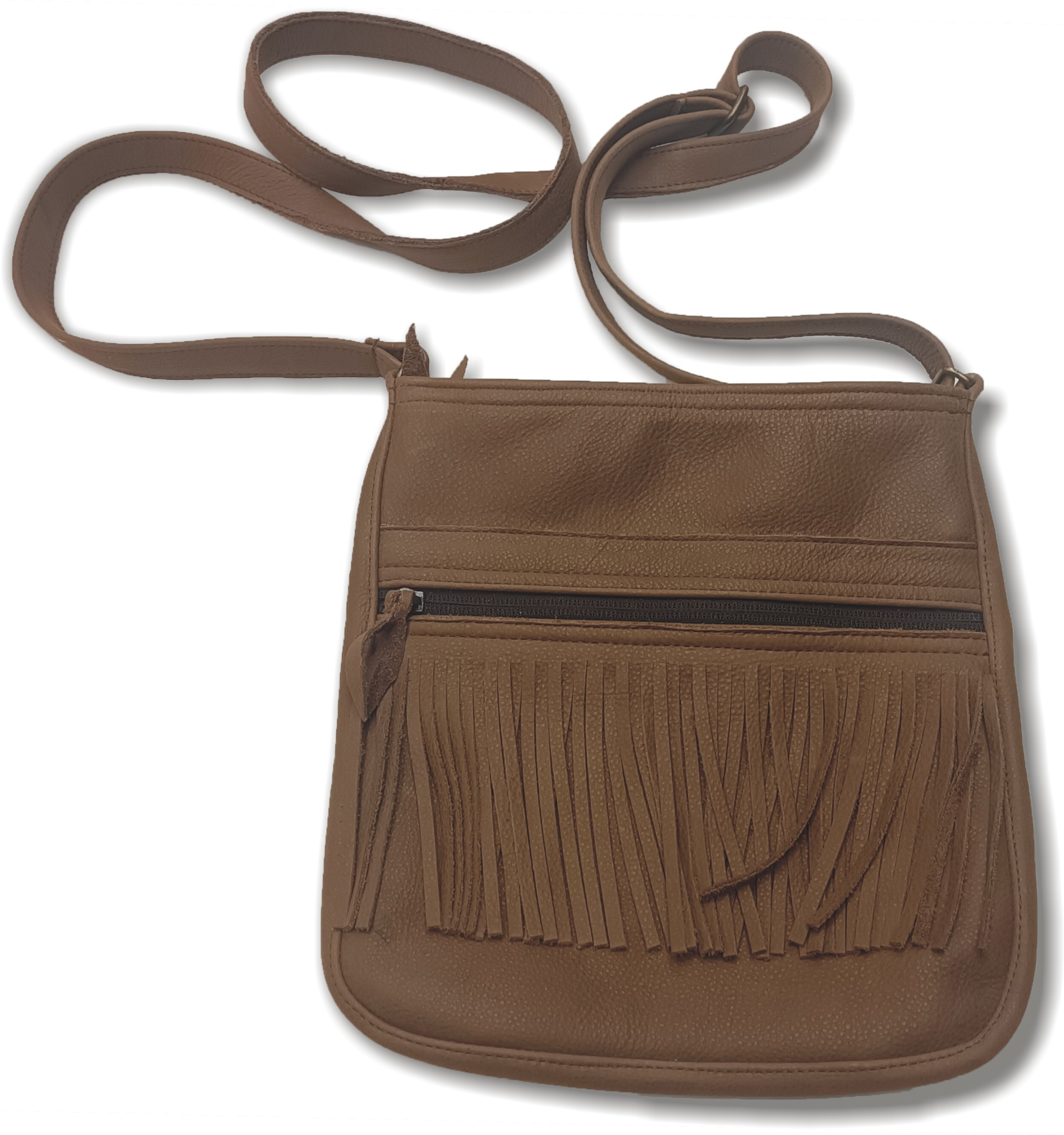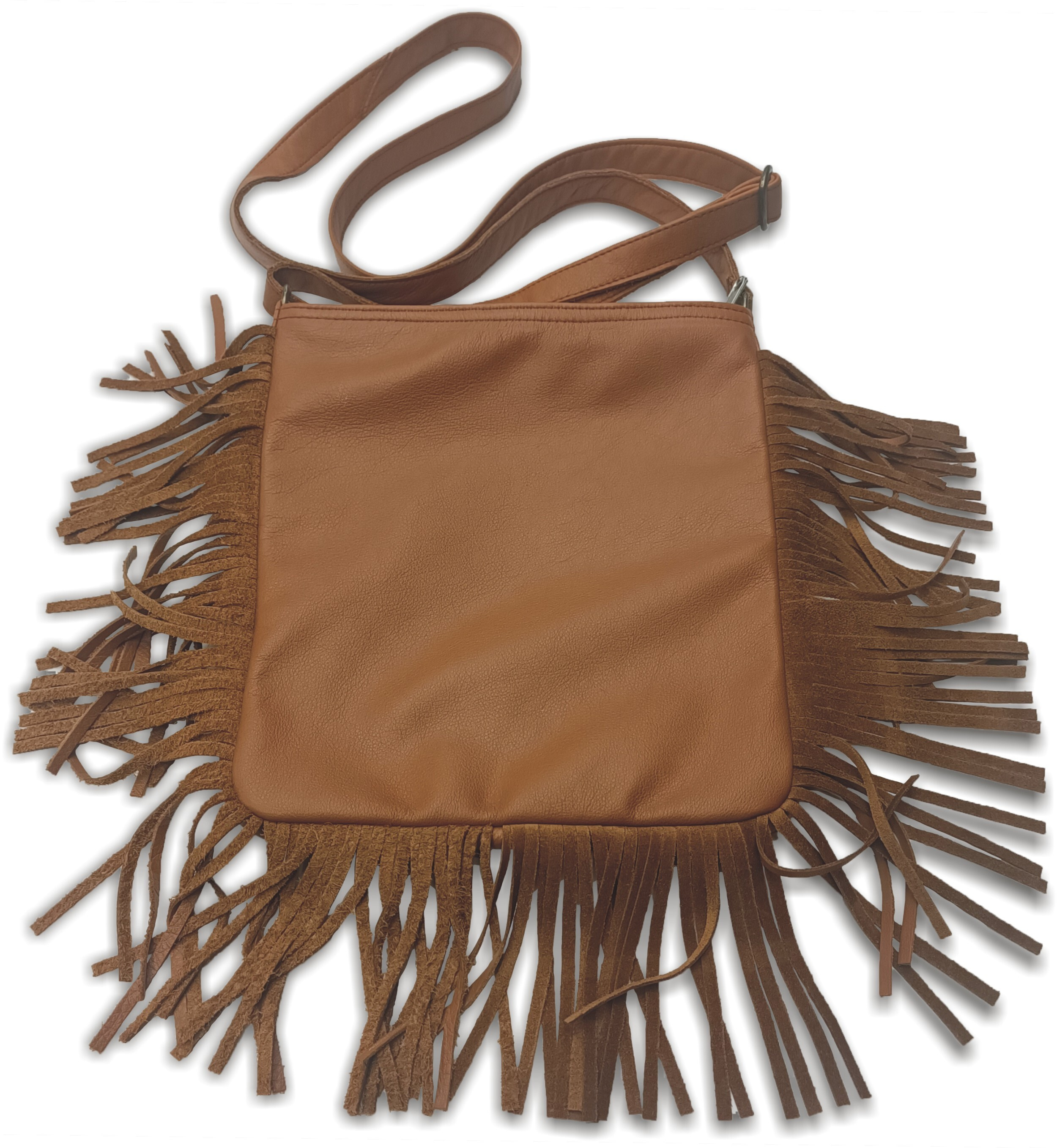 Stylová kabelka/taška z kvalitní kůže s třásněmi, vygravírovaným motivem nebo jiným zdobením, žádné umělohmotné náhražky, lisované kůže a suché zipy. Kožený popruh na rameno.