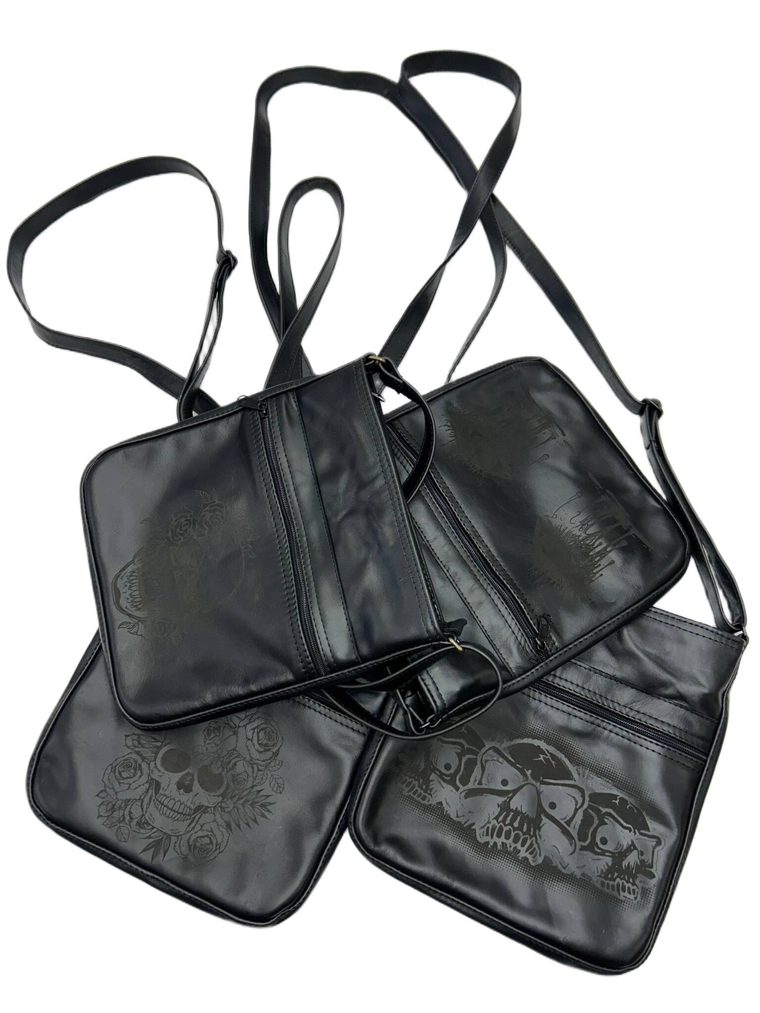 Motiv: lebka s křídly, lebka s růžemi, logo plus řetízek