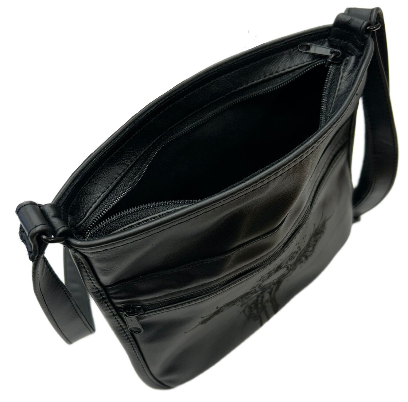 Stylová kabelka/taška z kvalitní kůže s vygravírovaným motivem, žádné umělohmotné náhražky, lisované kůže a suché zipy. Kožený popruh na rameno.