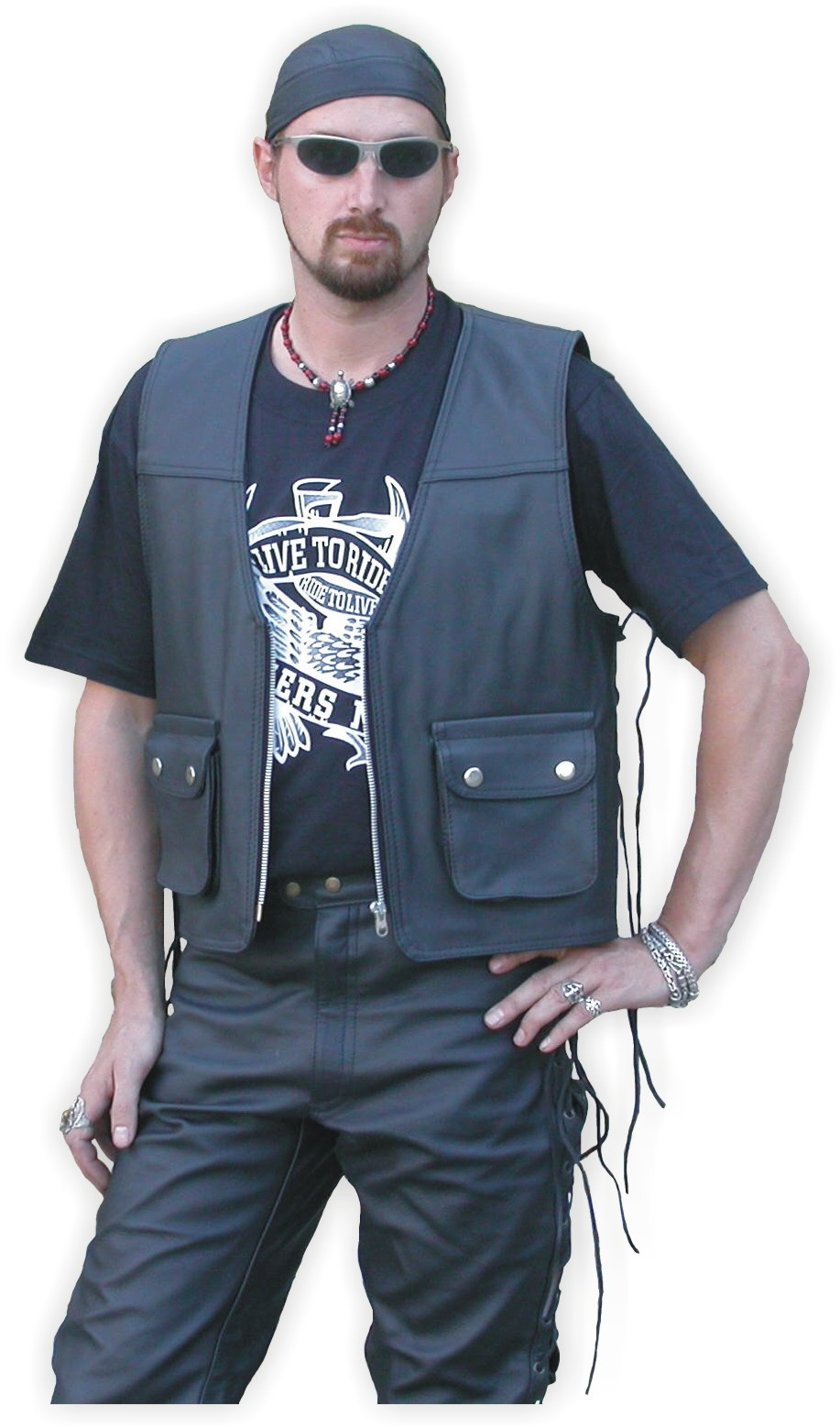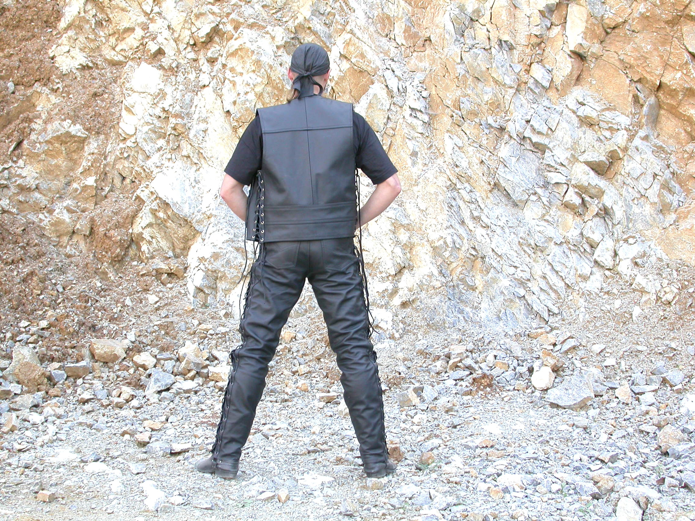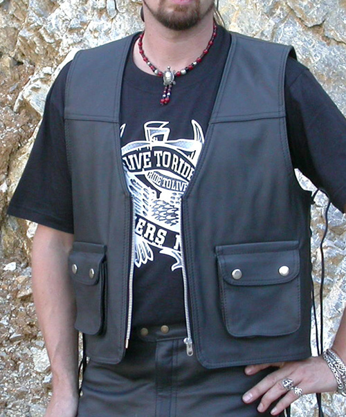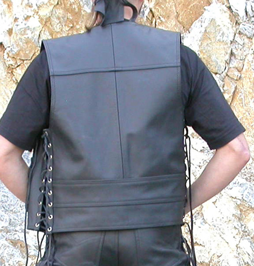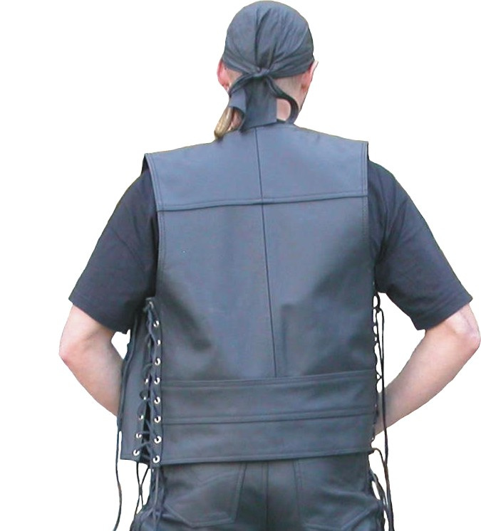 Motorkářská vesta klasického střihu se šněrováním na bocích z nejkvalitnější hovězí kůže BIKERSMODE VP-3.
