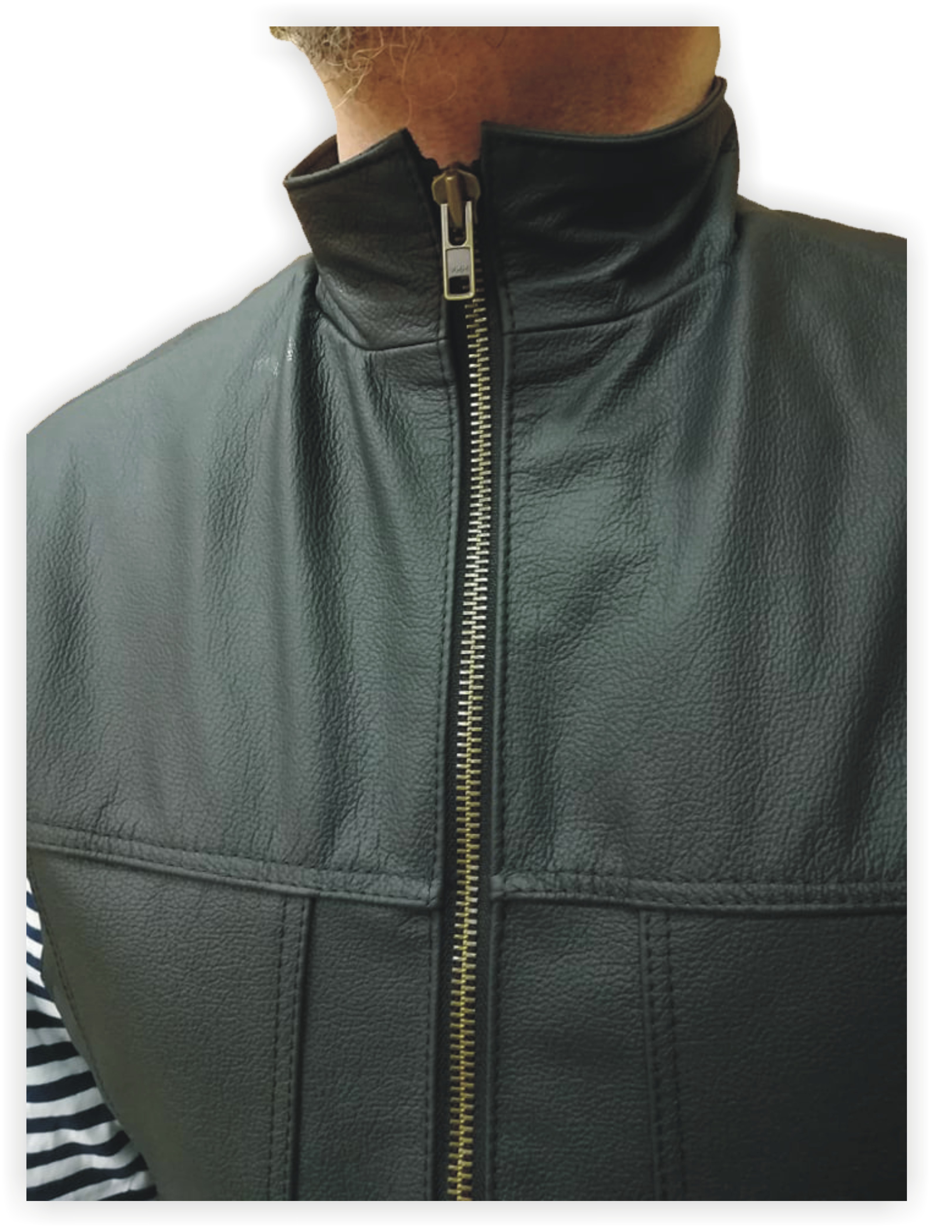 Motorkářská vesta riflového střihu se stahovacími páskami na bocích z nejkvalitnější hovězí kůže BIKERSMODE VP-7.