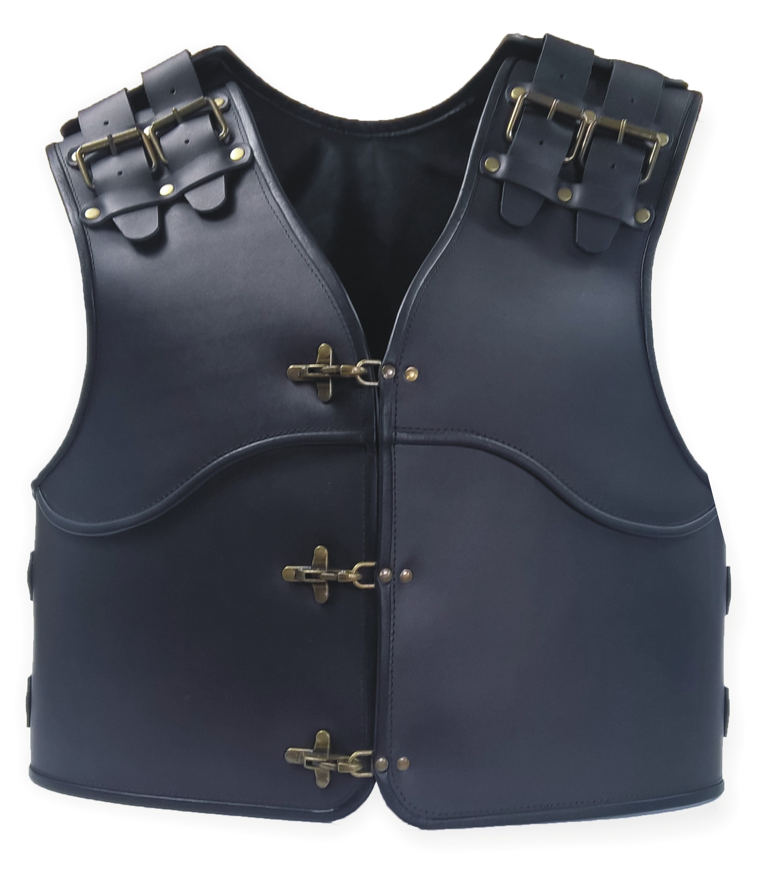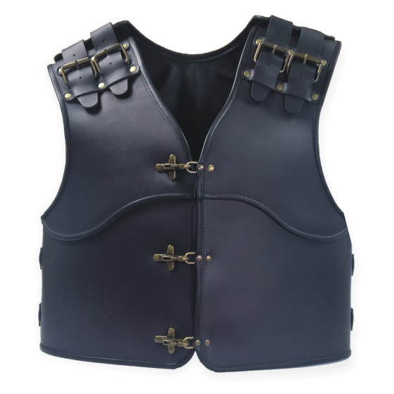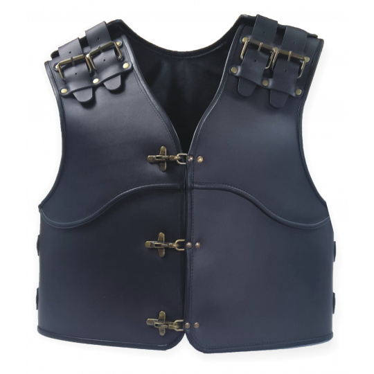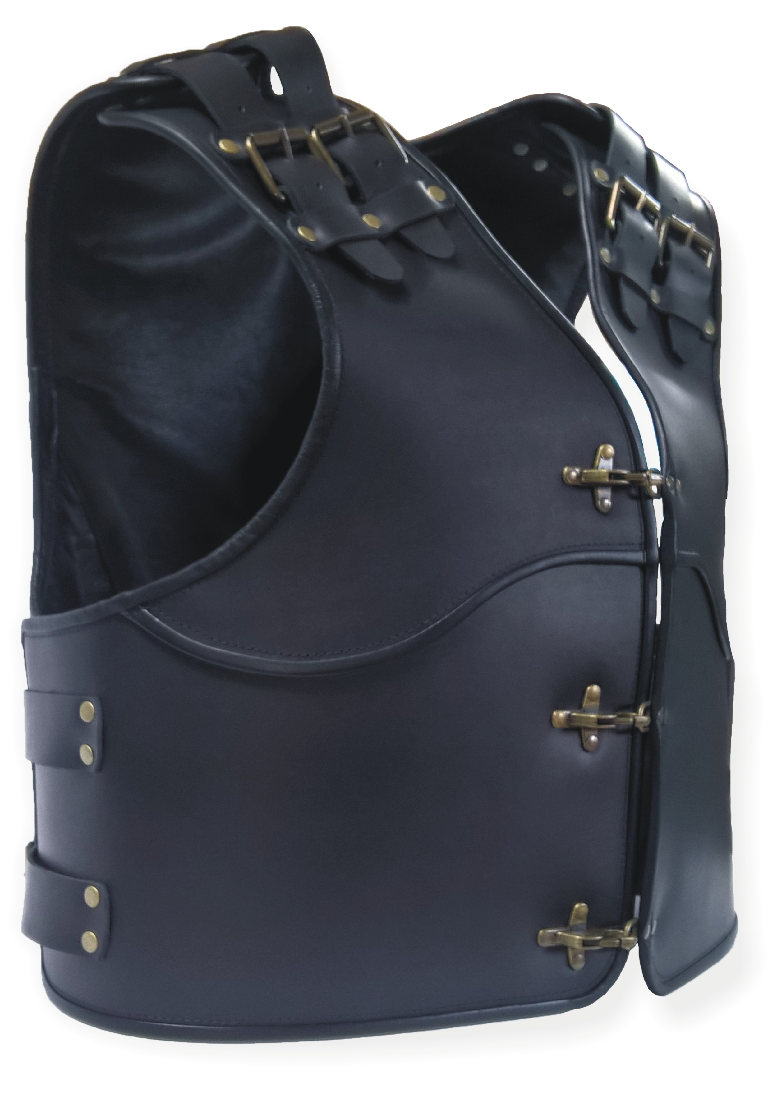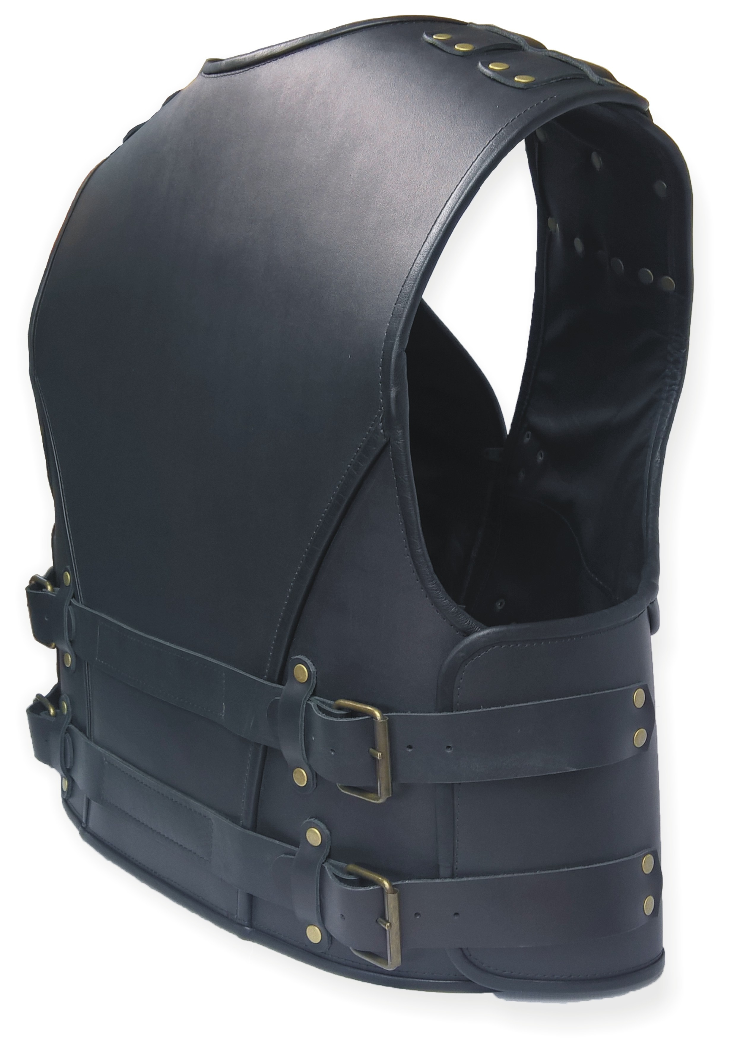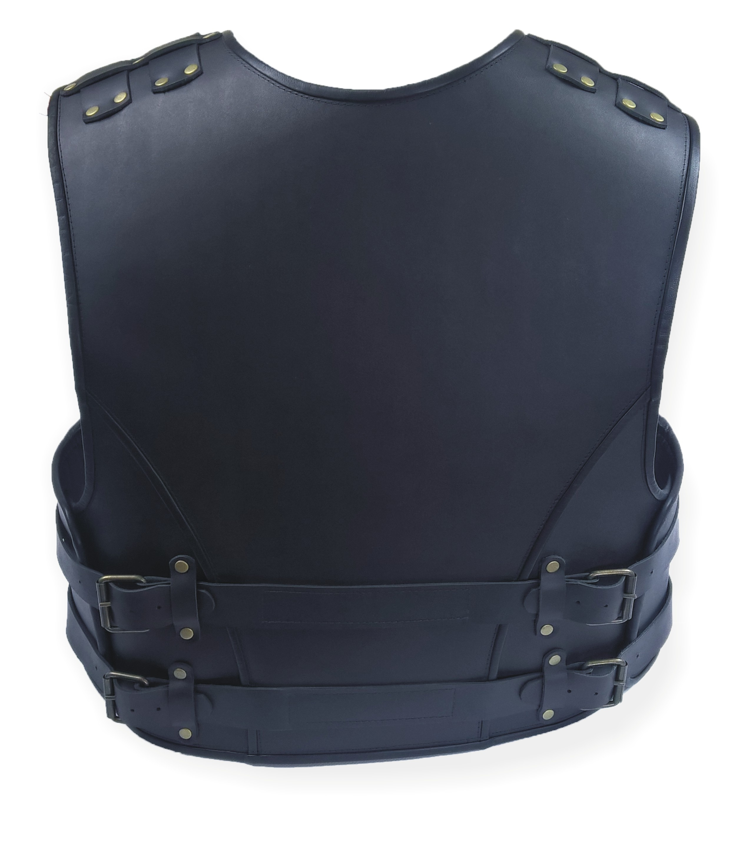 Díky páskům na bocích a ramenou lze jednoduše upravit velikost, např. při použití na triko - bundu. Vesta je vyrobená z kvalitní pevné kůže tloušťky 1,8 - 2 mm, takže vytváří na těle "krunýř", podšívka z luxusní jemné teletiny celou vestu "změkčí" pro příjemný pocit a pohodlné nošení.
