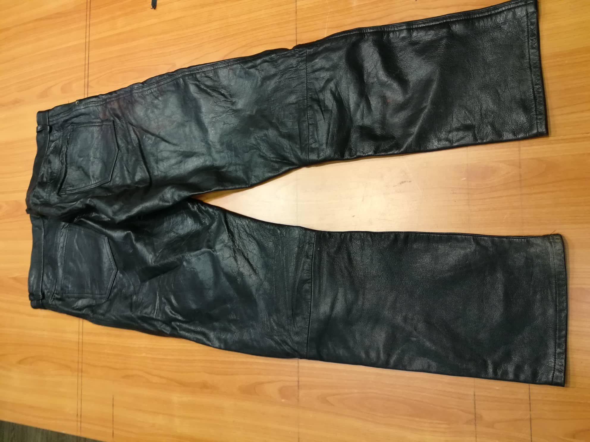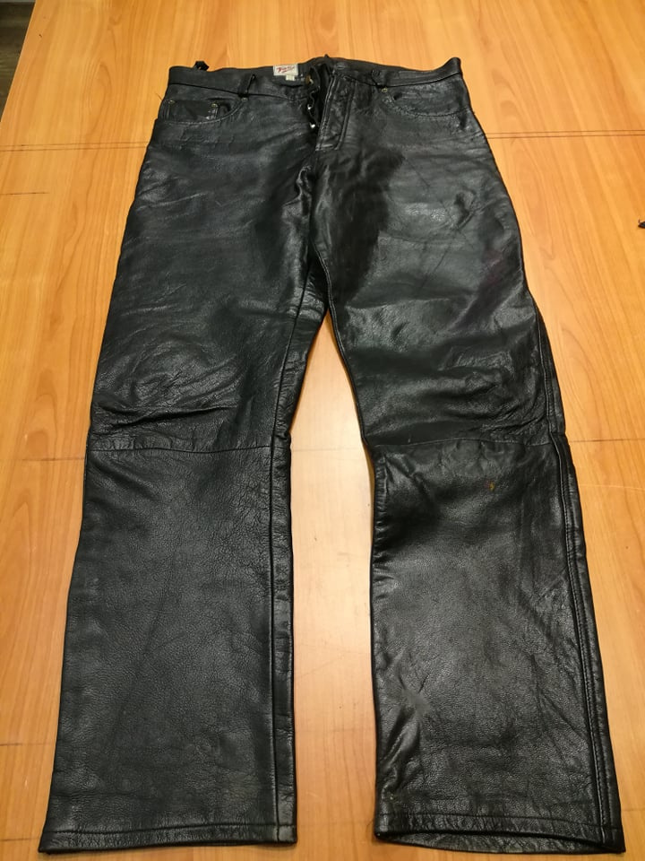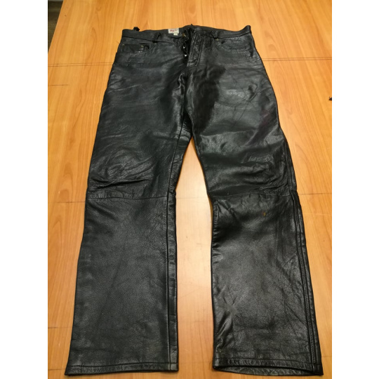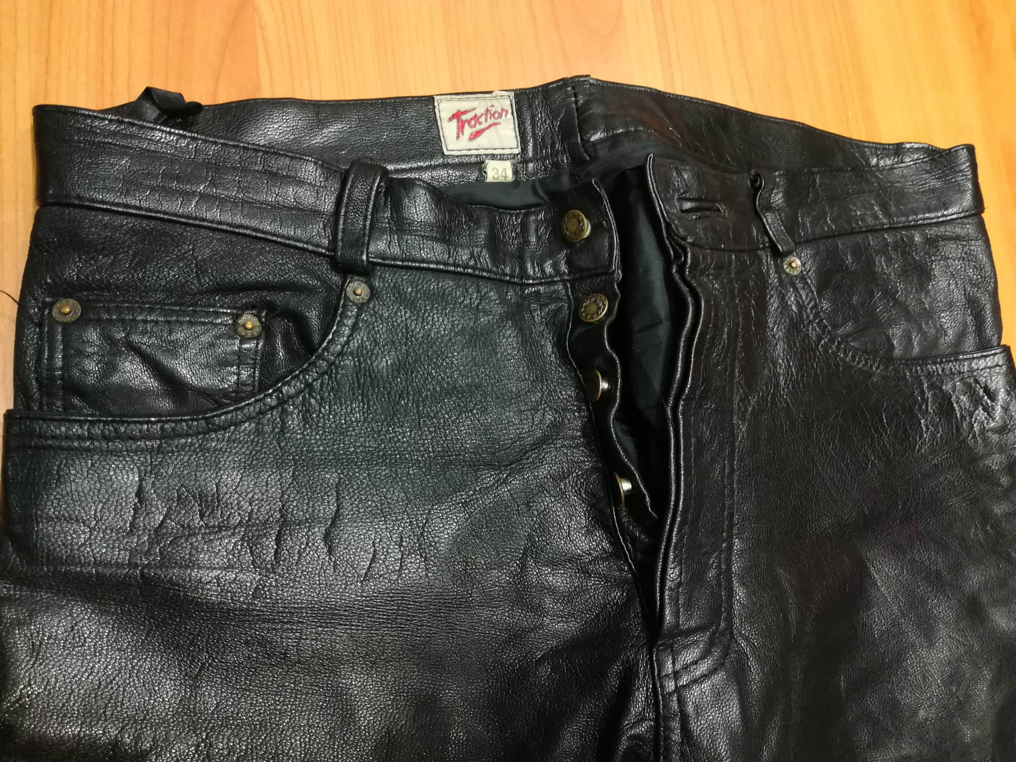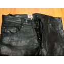 Kožené kalhoty jeansového střihu Traction, zapínání na knoflíky.