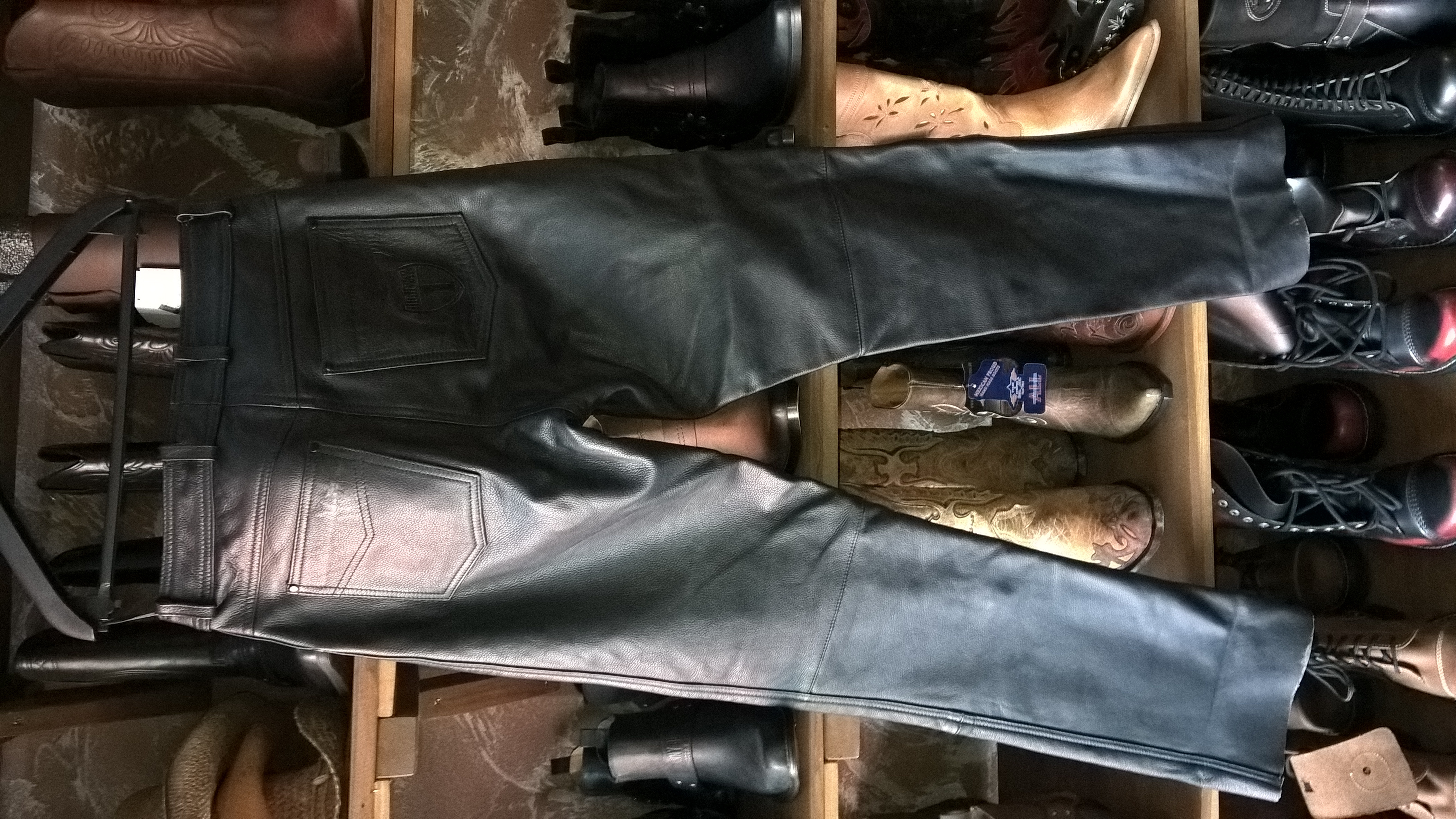 Kožené kalhoty Highway, jeansový střih, pevná kůže.