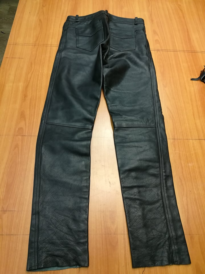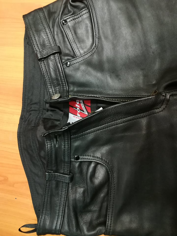 Dámské kožené kalhoty jeansového střihu Roleff.   Velikost: 40 (pas cca 80 cm) Barva: černá MateVíce