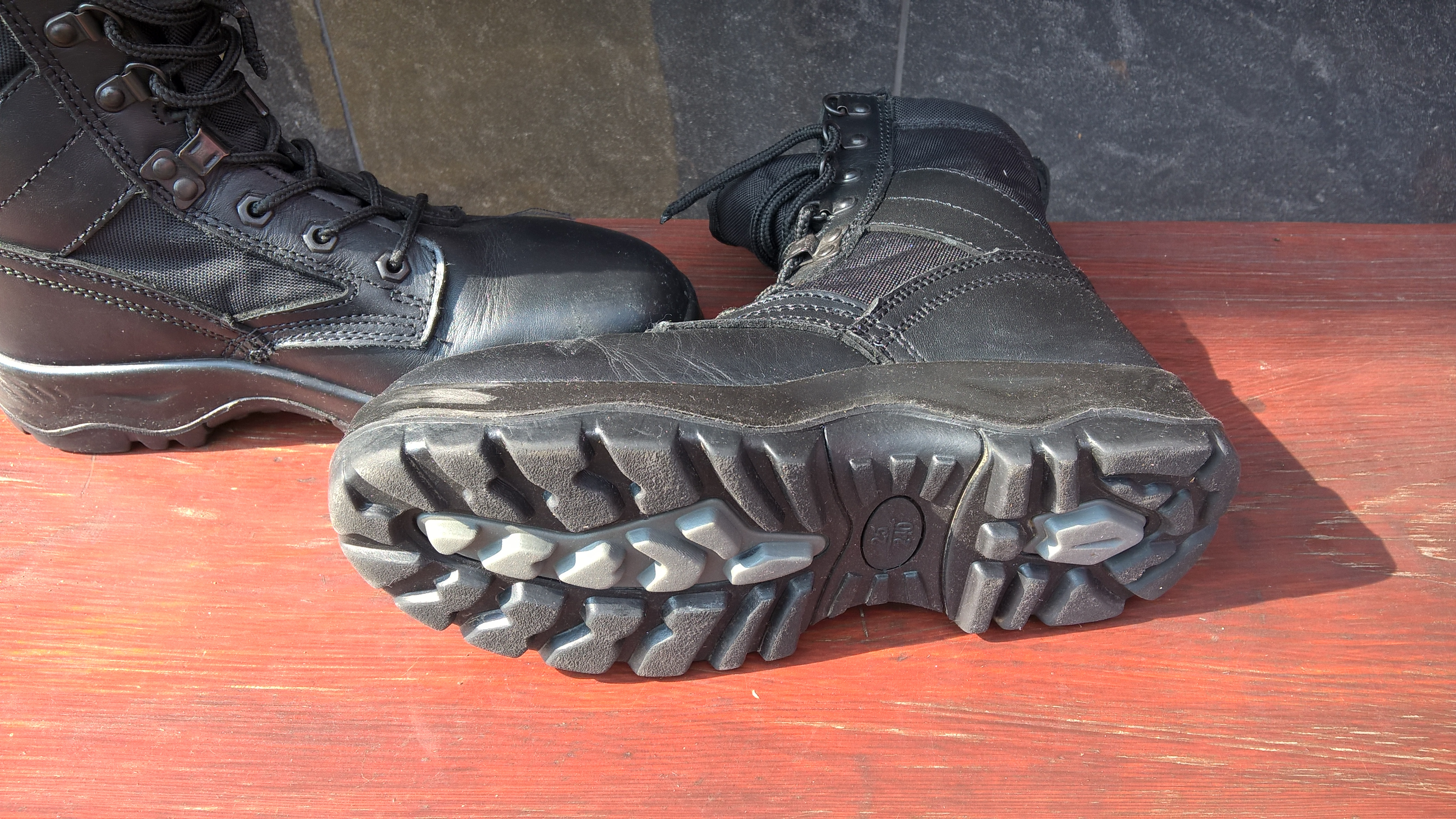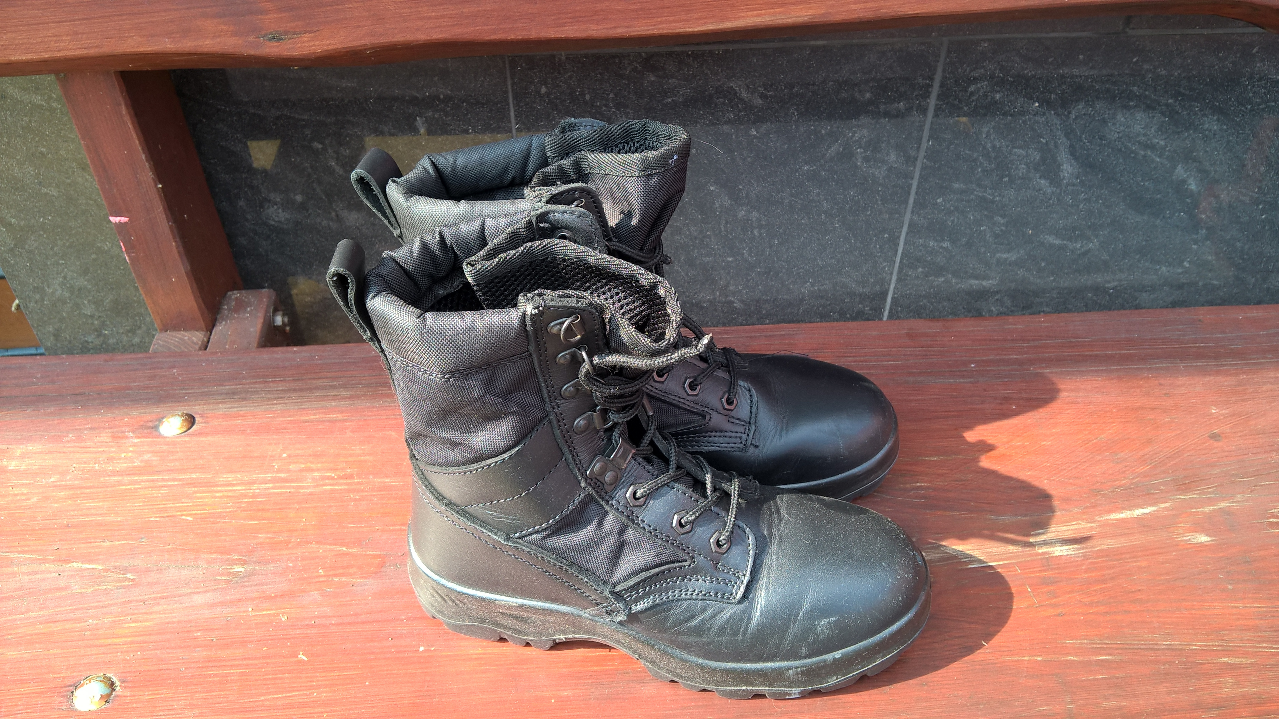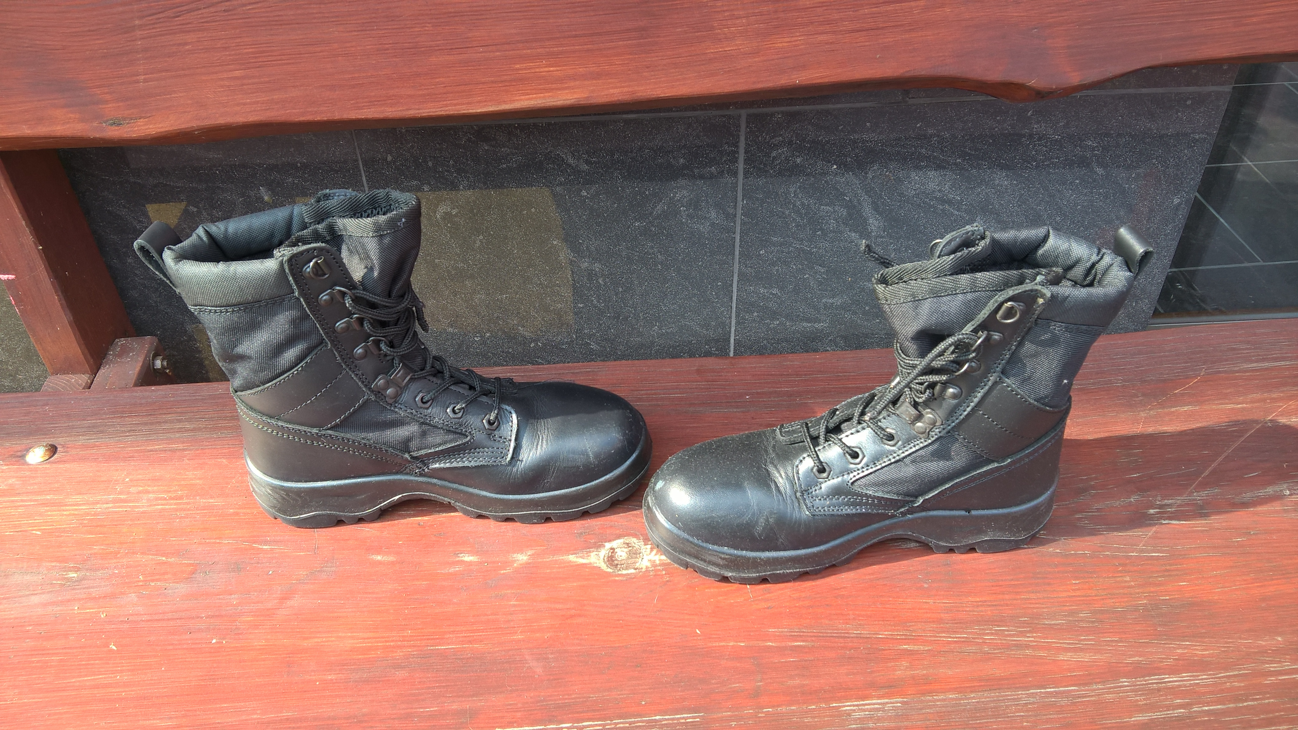 Kožené-textilní policejní nepromokavé boty.   Velikost: 25/240 Barva: černá Materiál: kůže, cordVíce