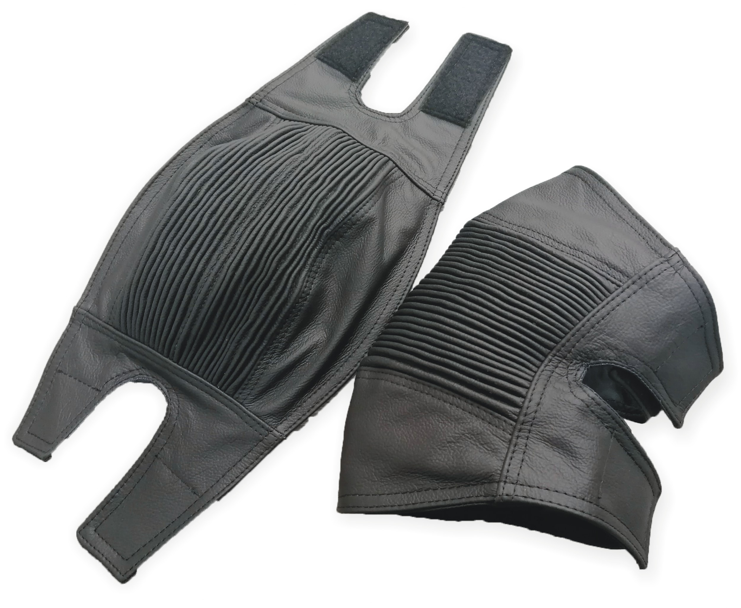 Luxusní kožené zateplené nákoleníky se zapínáním na suchý zip.