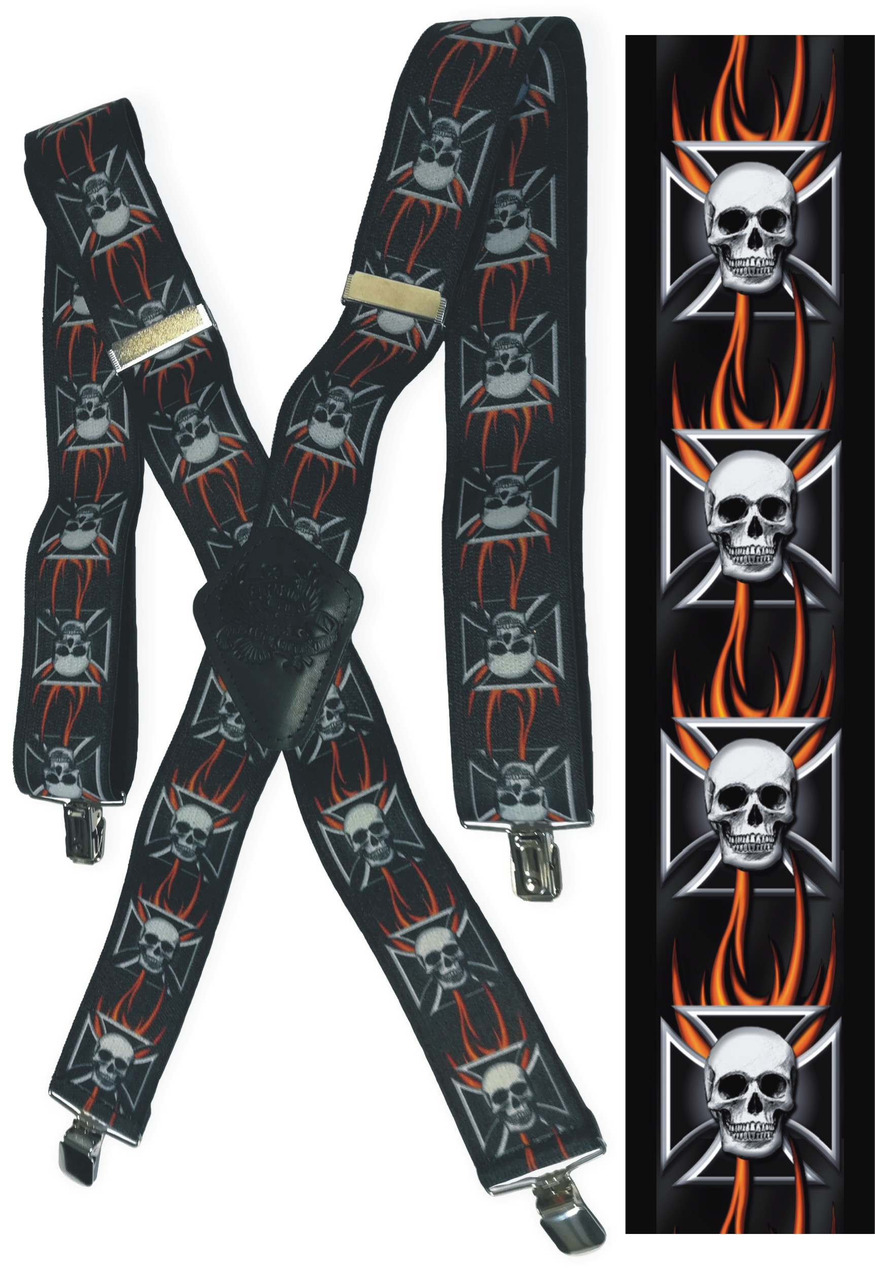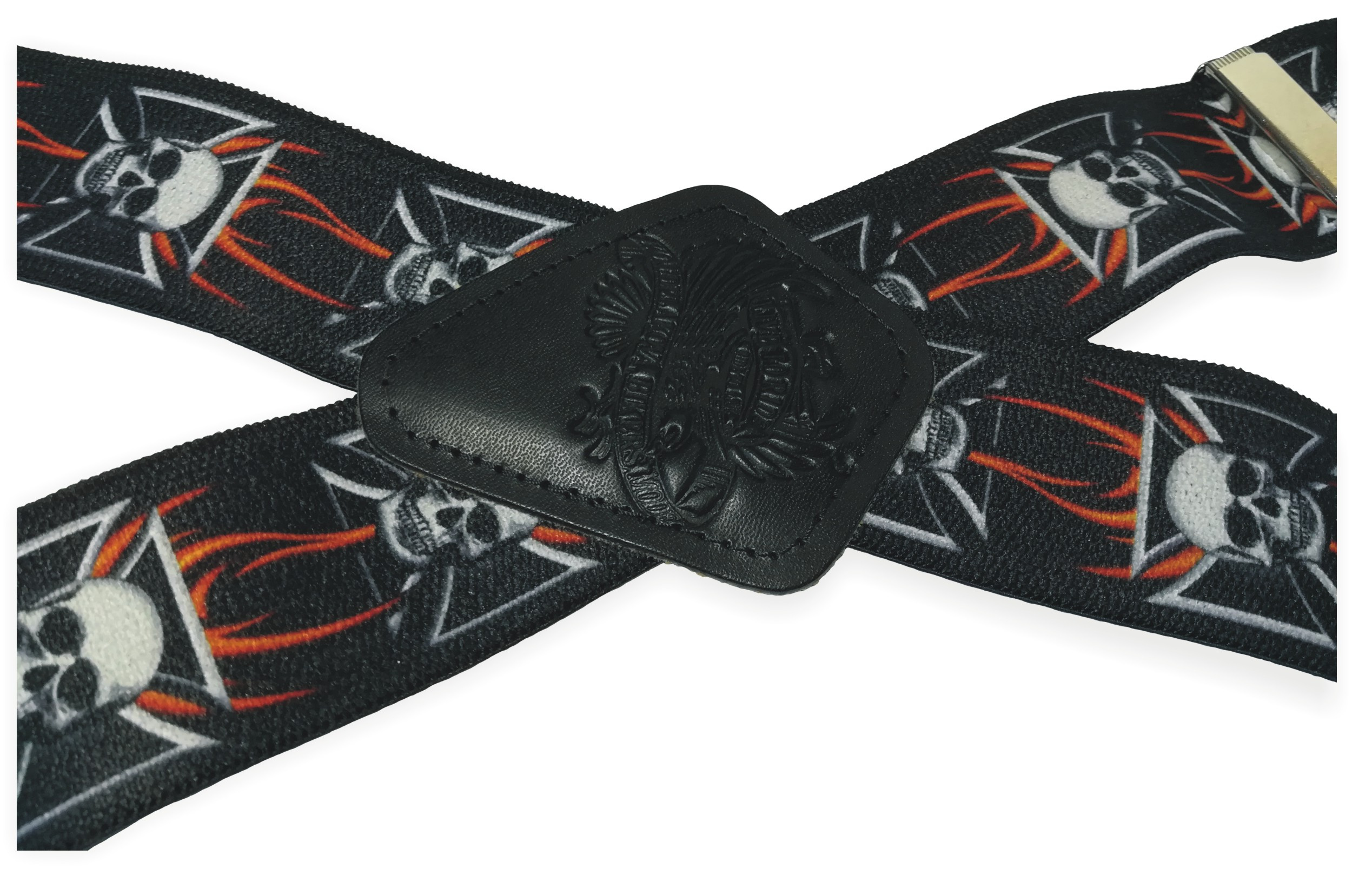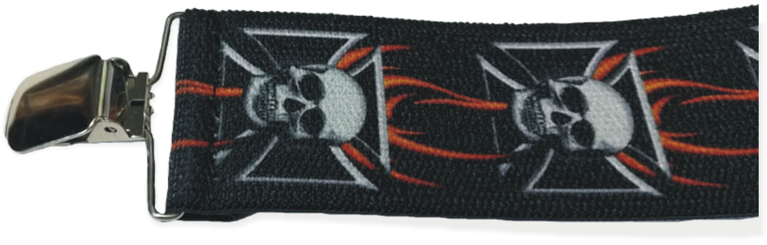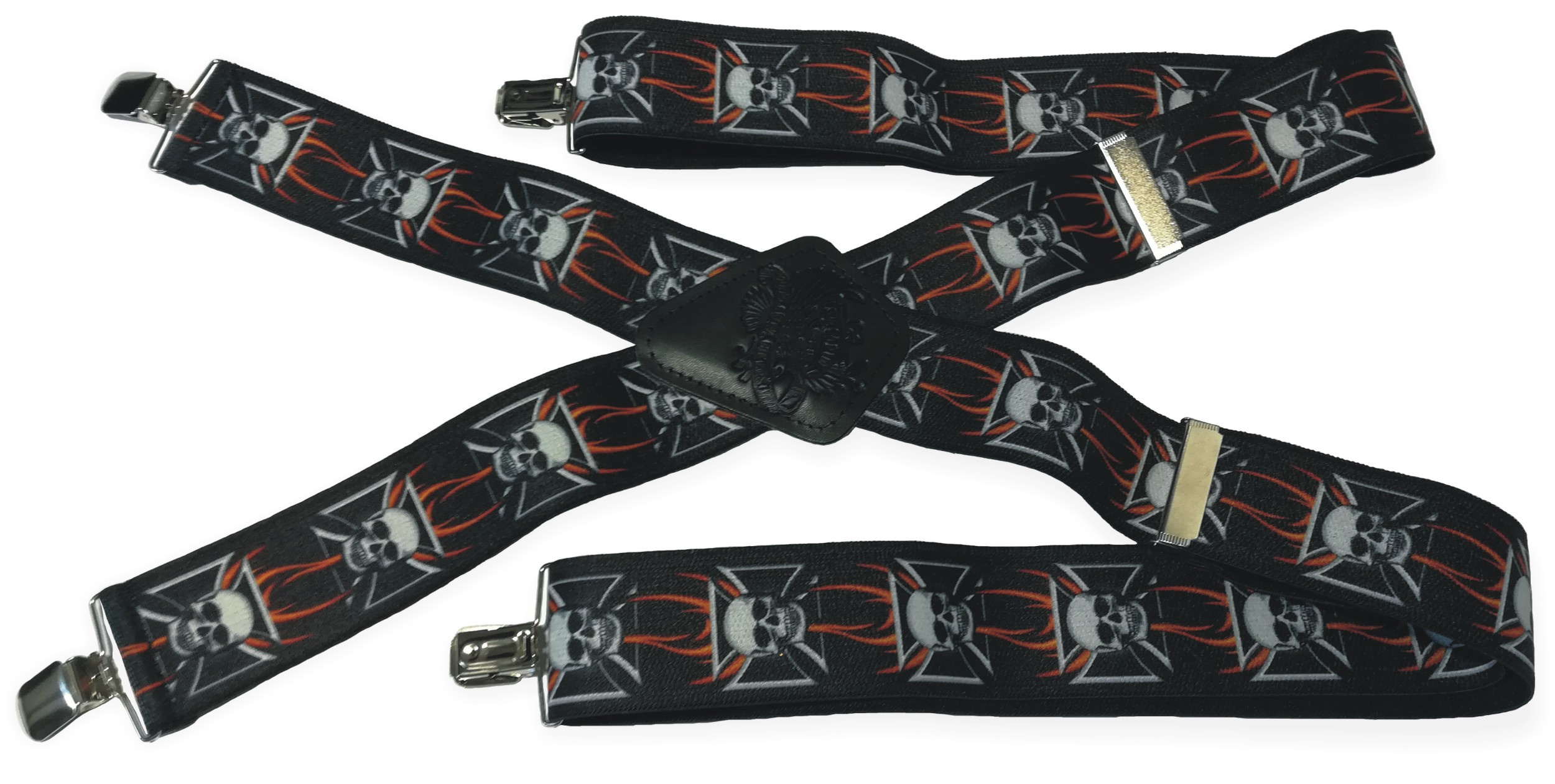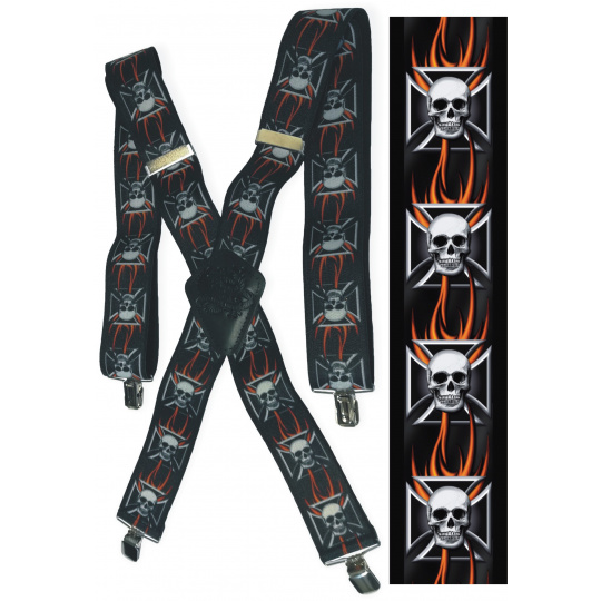 Pružné kšandy s potiskem. Libovolně nastavitelné. Připnutí ke kalhotám je tvořeno kovovými sponkami, které jsou ozubené a tudíž výborně drží a nepovolí.