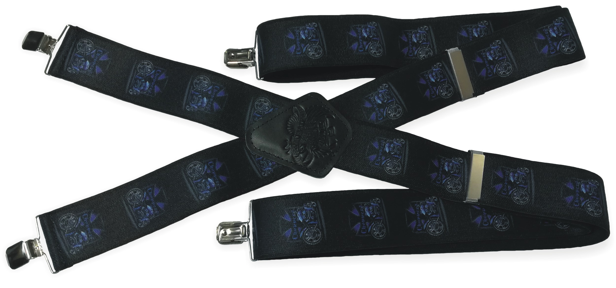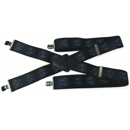 Pružné kšandy s potiskem. Libovolně nastavitelné. Připnutí ke kalhotám je tvořeno kovovými sponkami, které jsou ozubené a tudíž výborně drží a nepovolí.