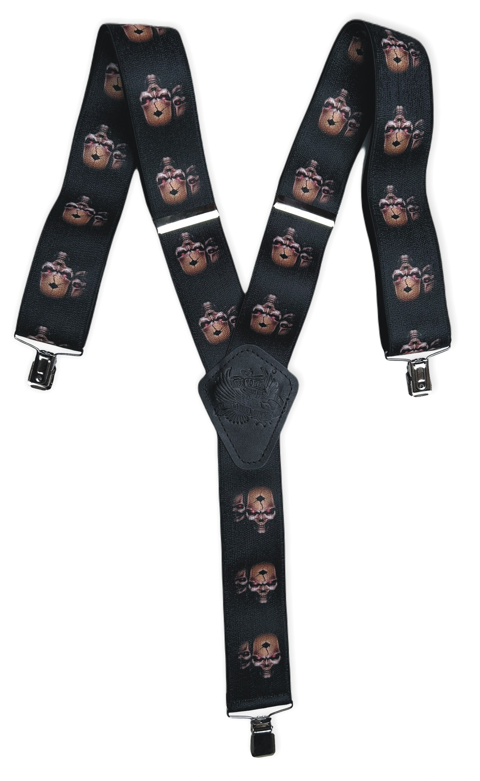 Pružné kšandy s potiskem. Libovolně nastavitelné. Připnutí ke kalhotám je tvořeno kovovými sponkami, které jsou ozubené a tudíž výborně drží a nepovolí.