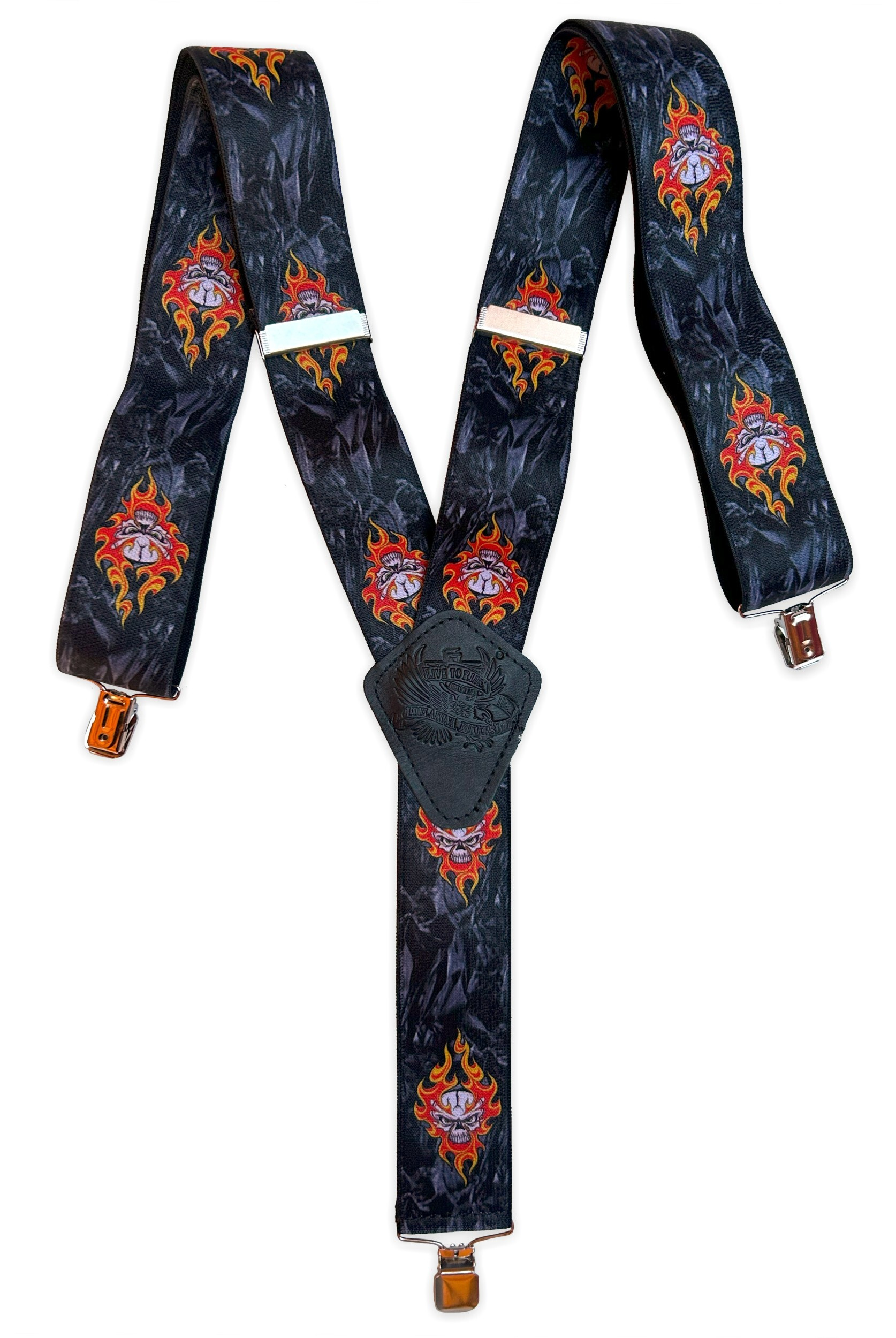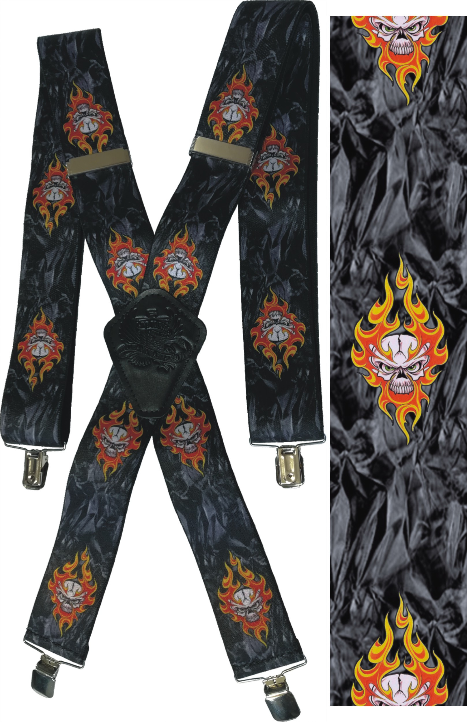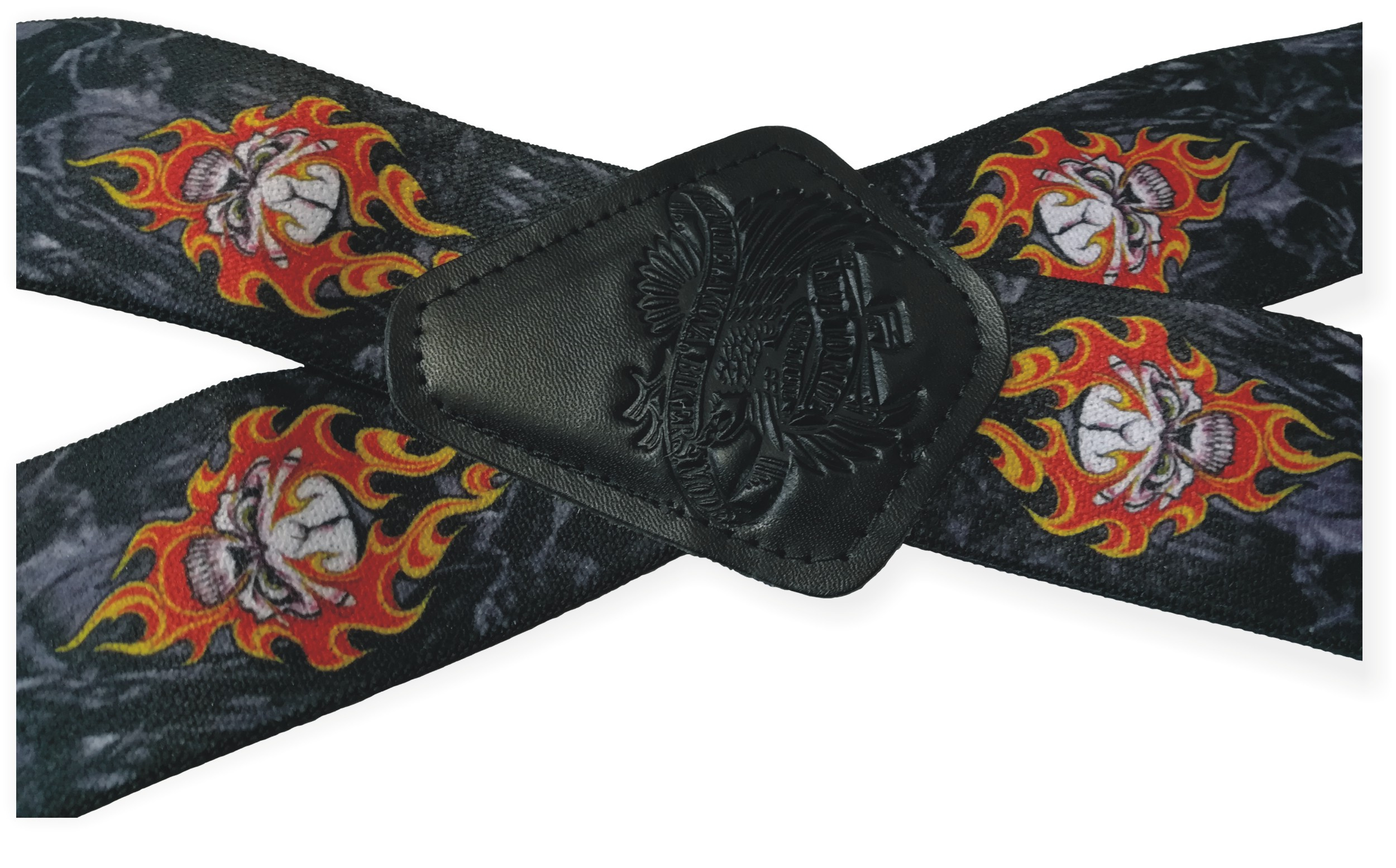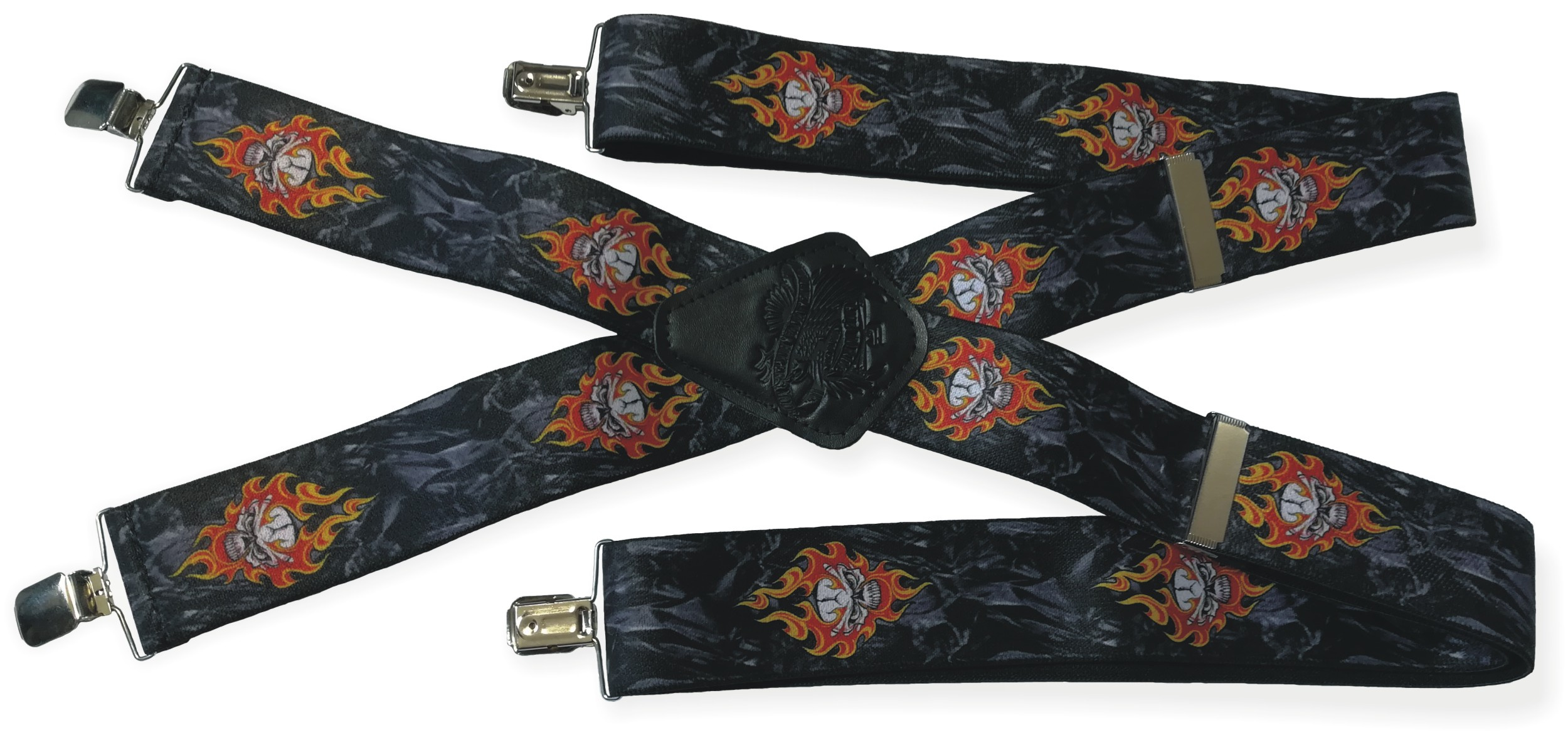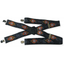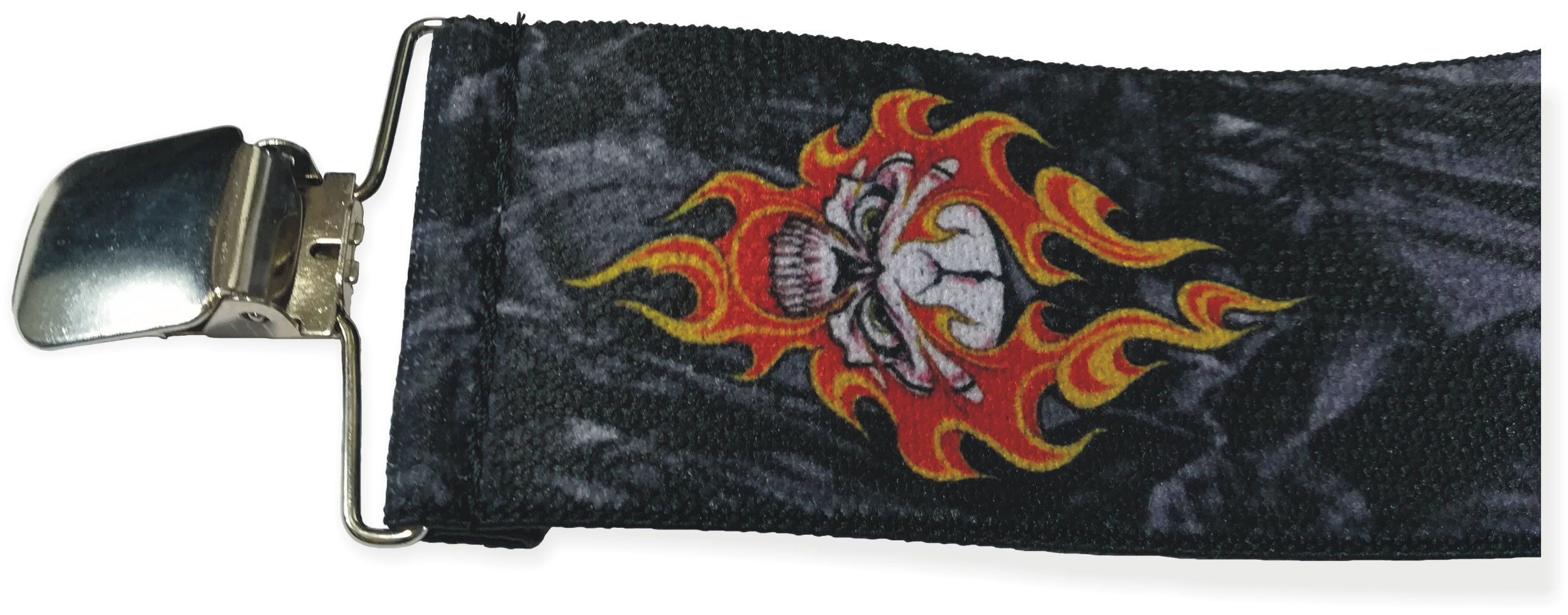 Pružné kšandy s potiskem. Libovolně nastavitelné. Připnutí ke kalhotám je tvořeno kovovými sponkami, které jsou ozubené a tudíž výborně drží a nepovolí.